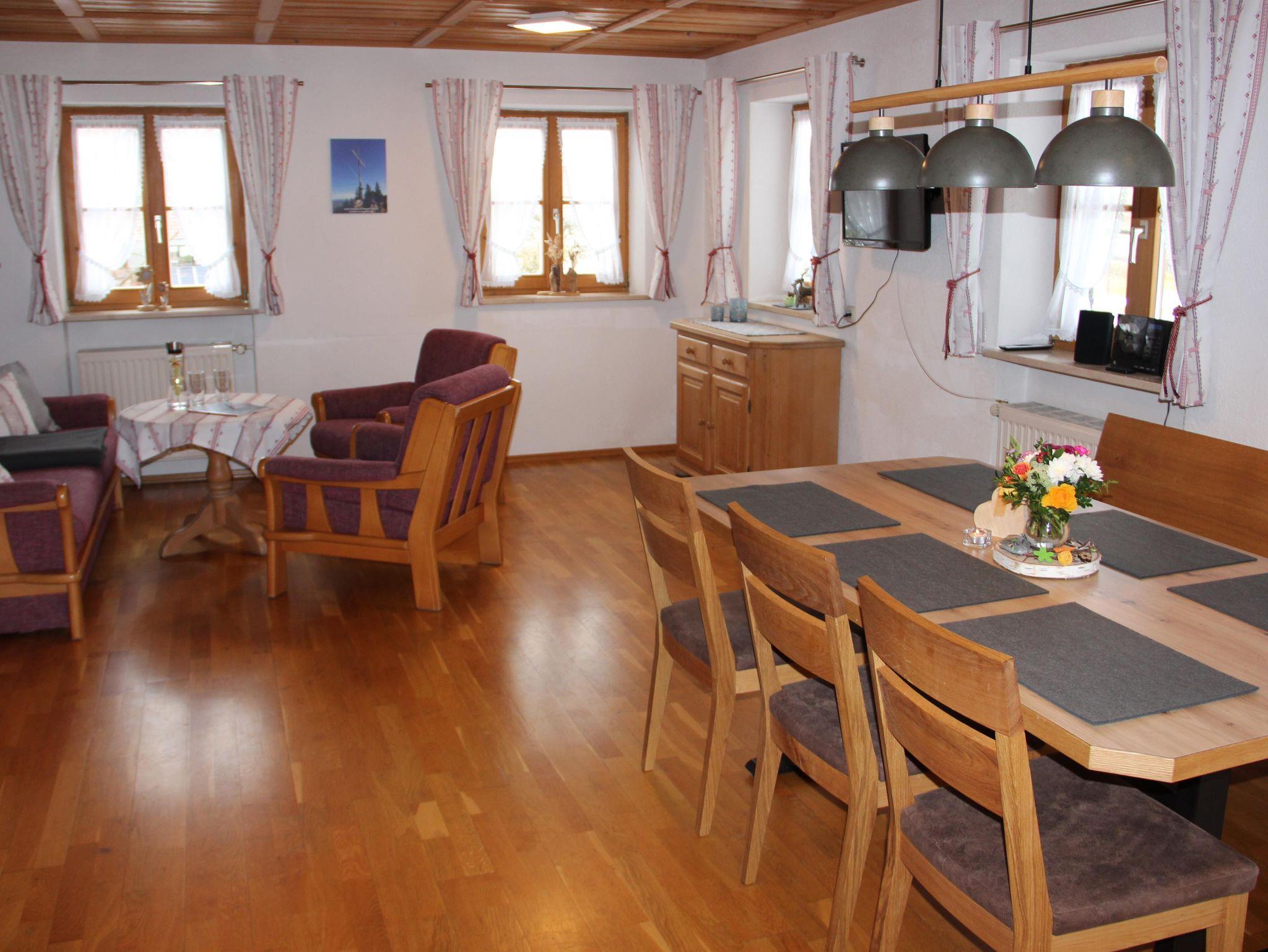 Gemütliche 3-Zimmerferienwohnung Edelsberg (84 qm) mit Balkon inklusive traumhaftem Bergblick, 2 separaten Schlafzimmern, einer großräumigen Wohnküche, einem schönen Badezimmer sowie einem separaten WC. Die im ländlichen Stil eigerichtete Wohnung ist mit Radio und TV sowie kostenlosem Wlan ausgestattet. Brötchenservice. Komplette Baby und Kleinkindausstattung.
