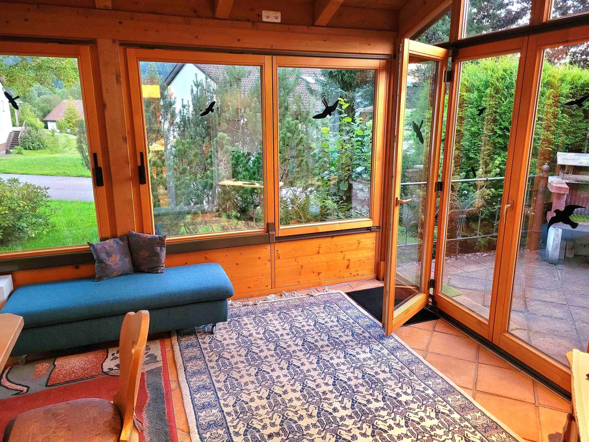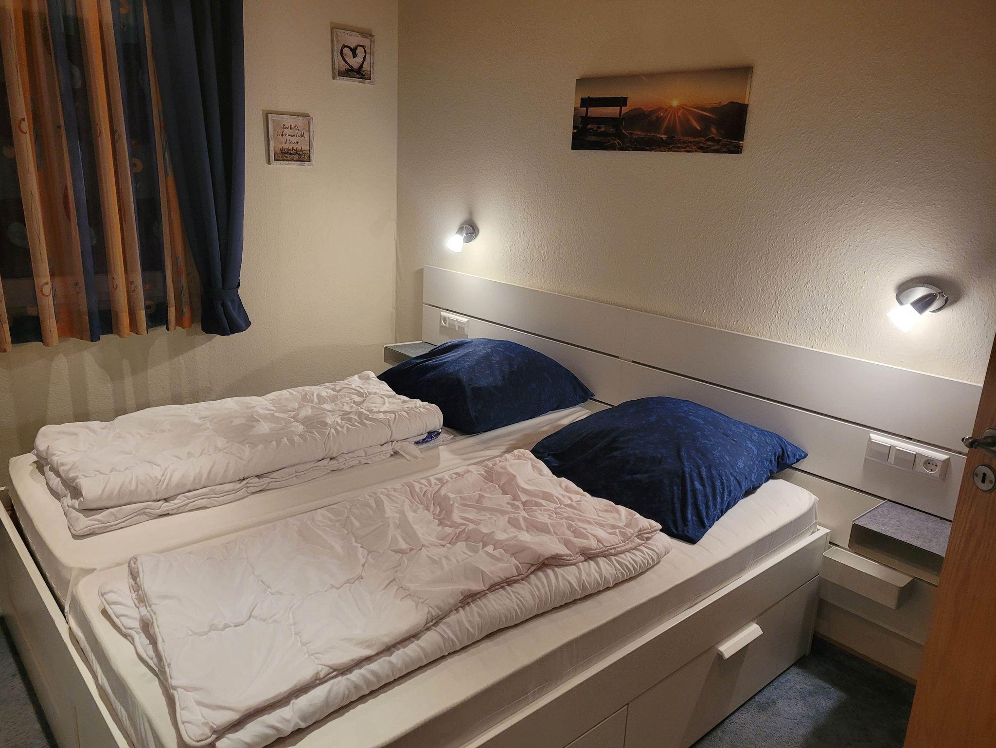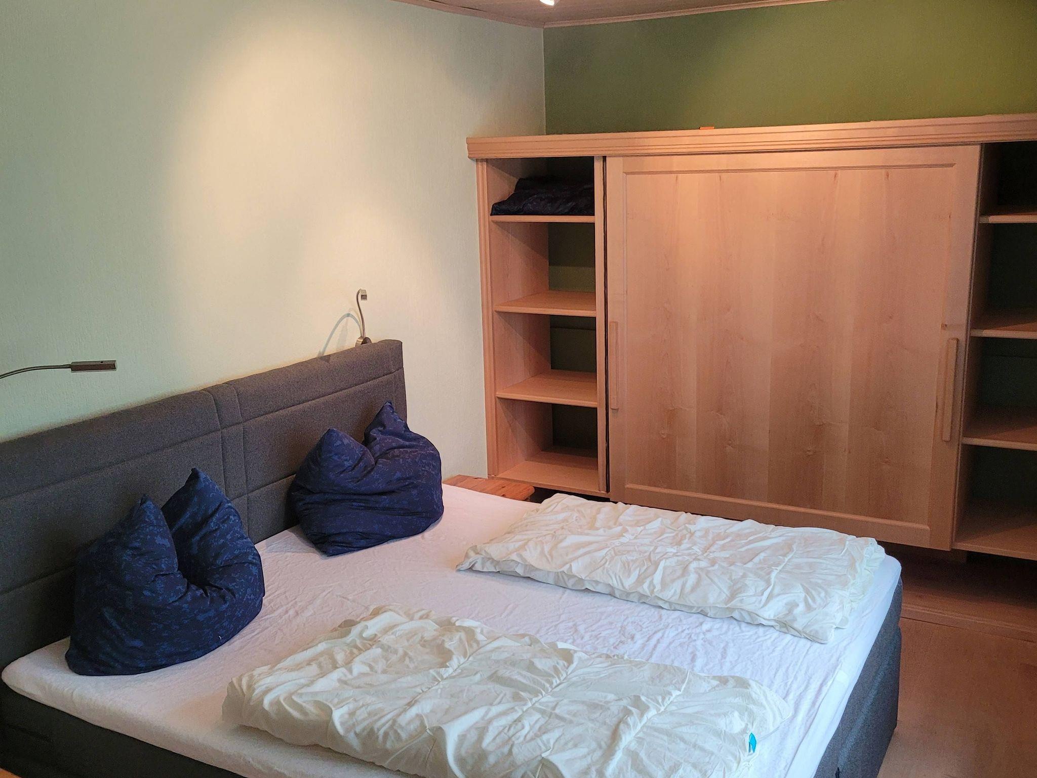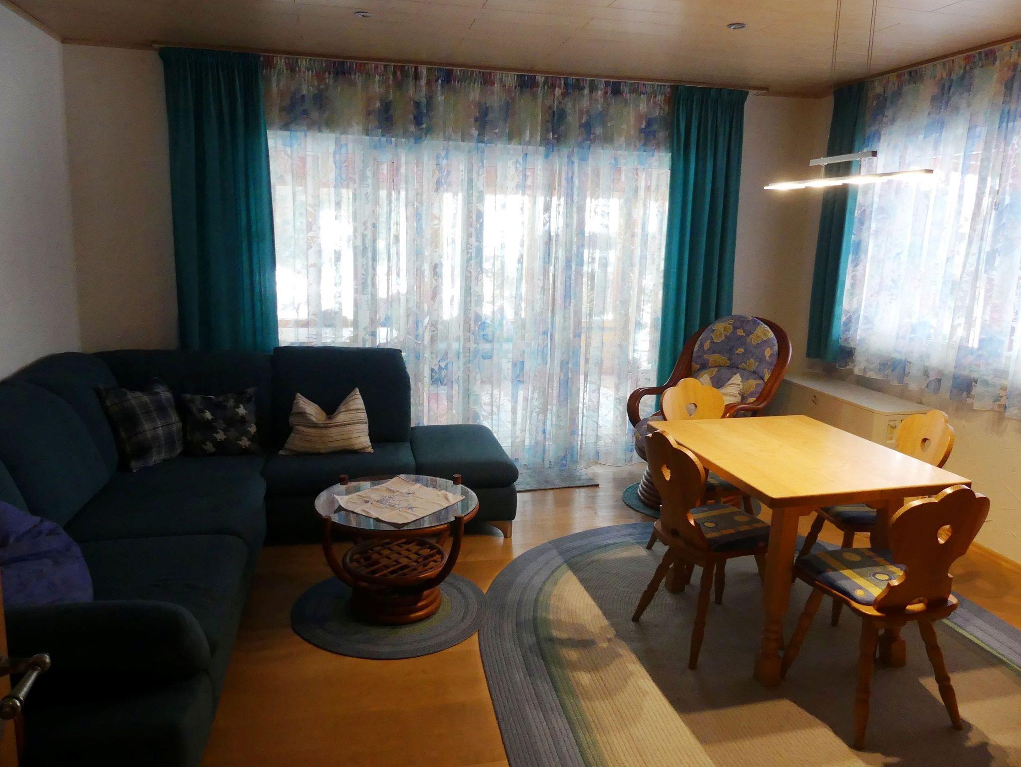 Die Zimmer sind mit hellen Möbeln eingerichtet, wobei das Wohnzimmer im “Allgäuer-Voralpenstil” gehalten ist und eine gemütliche Atmosphäre schafft.