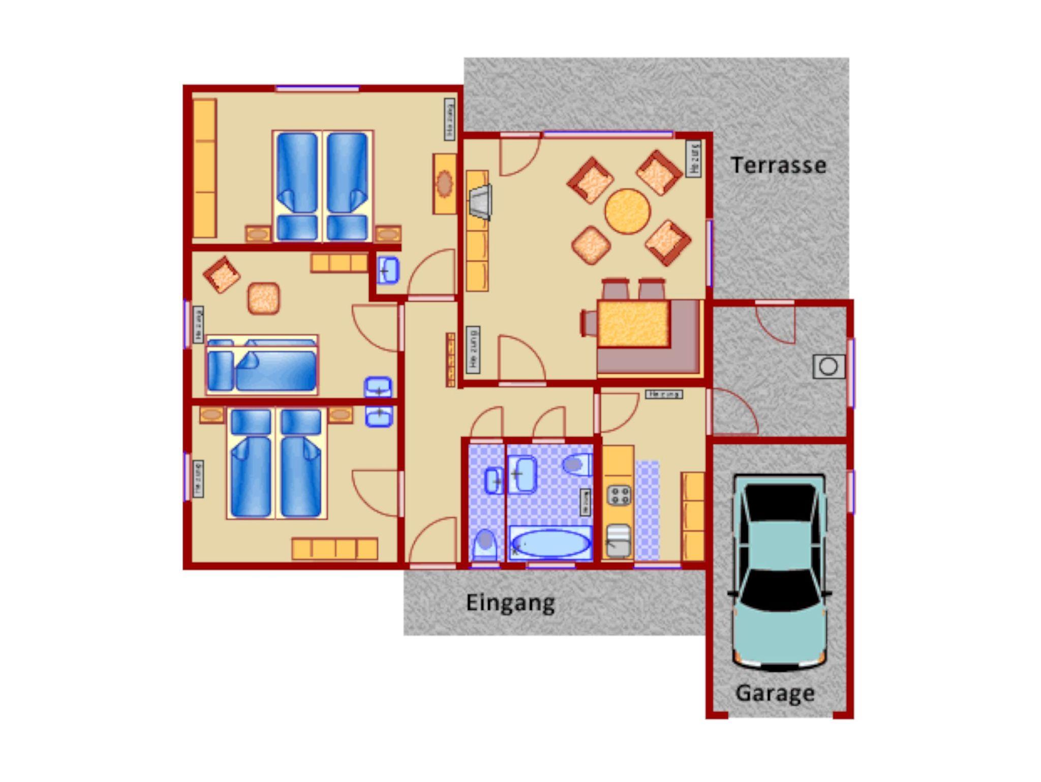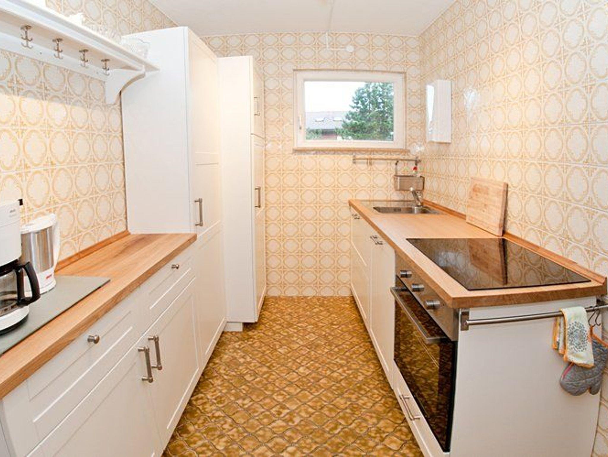 Die Küche ist voll ausgestattet mit Ceranherd, Backofen, Kaffeemaschine, Wasserkocher, Kühlschrank, Elektrogrill und weiteren Geräten. Das frisch renovierte Duschbad wird durch ein separates Gäste-WC ergänzt, in den Schlafzimmern befinden sich zusätzliche Waschbecken.