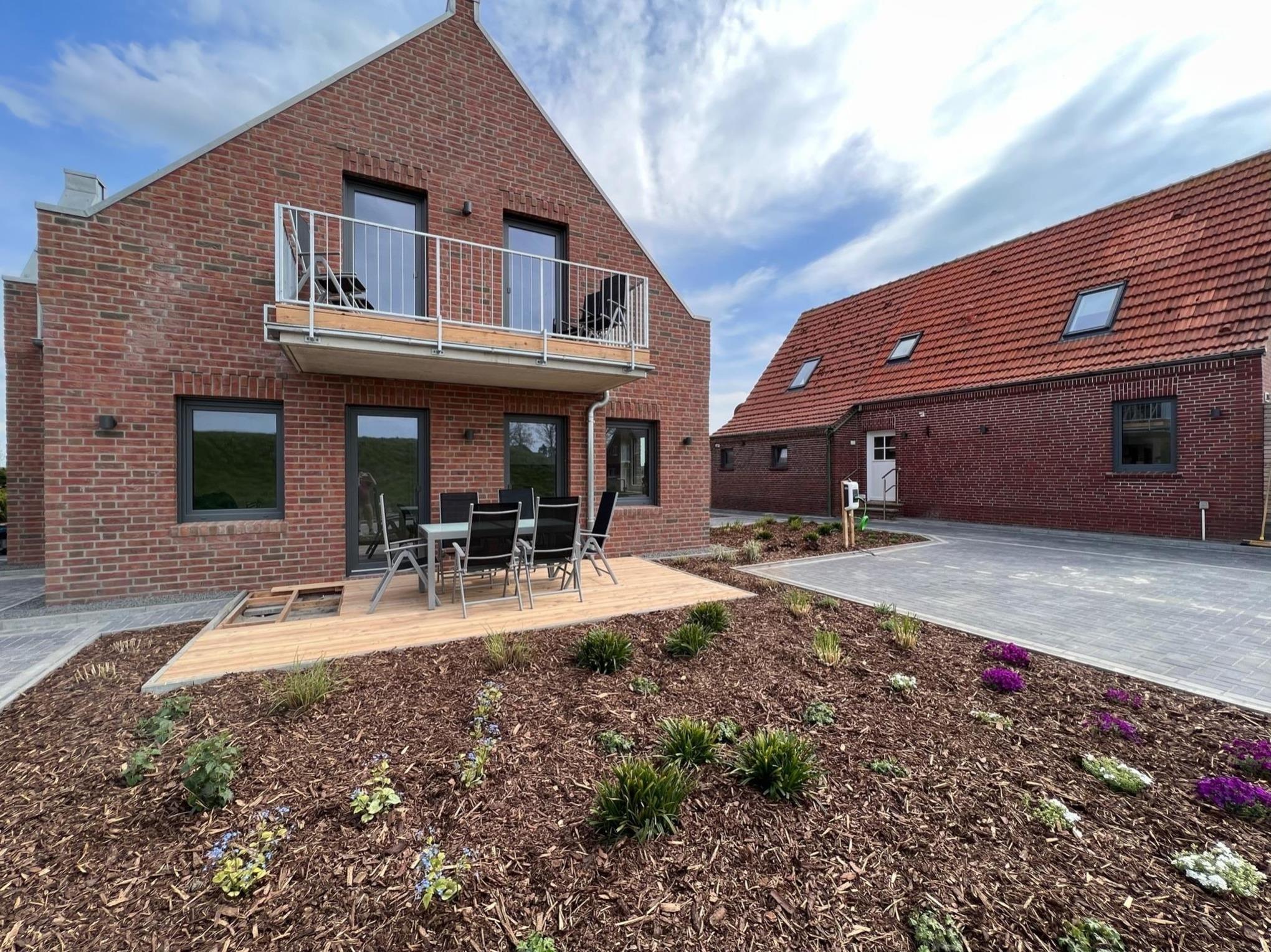 Frees Moi, friesisch schön ist das erst 2023 im typischen Stil der Region erbaute Haus, in dem sich diese ebenerdige Ferienwohnung befindet.