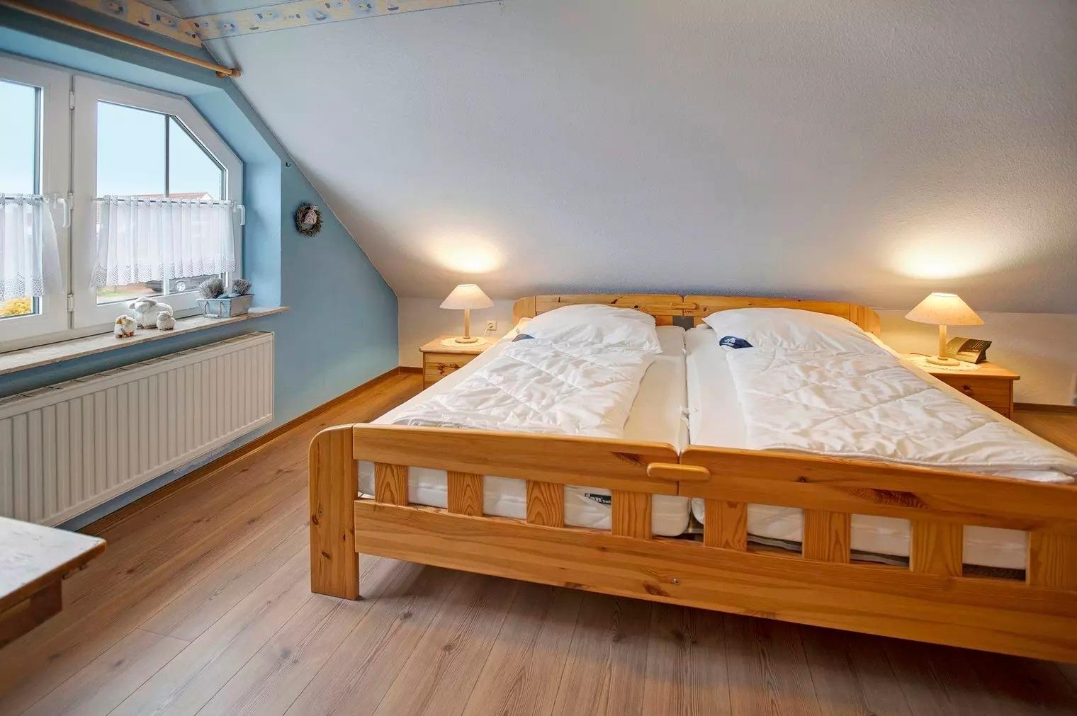 Schlafzimmer 2 hat 2 Einzelbetten.