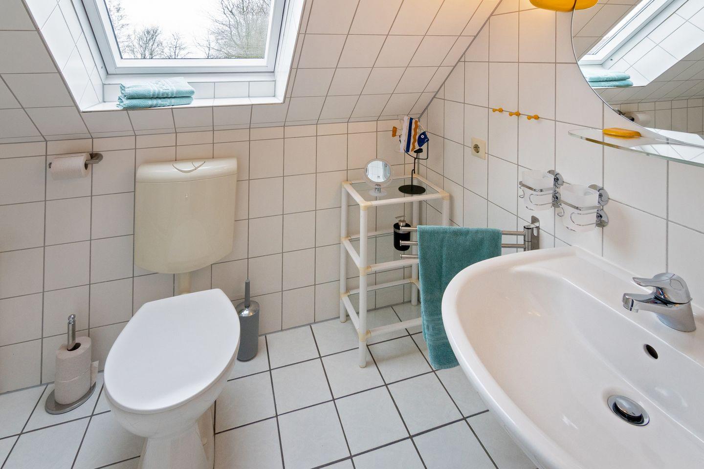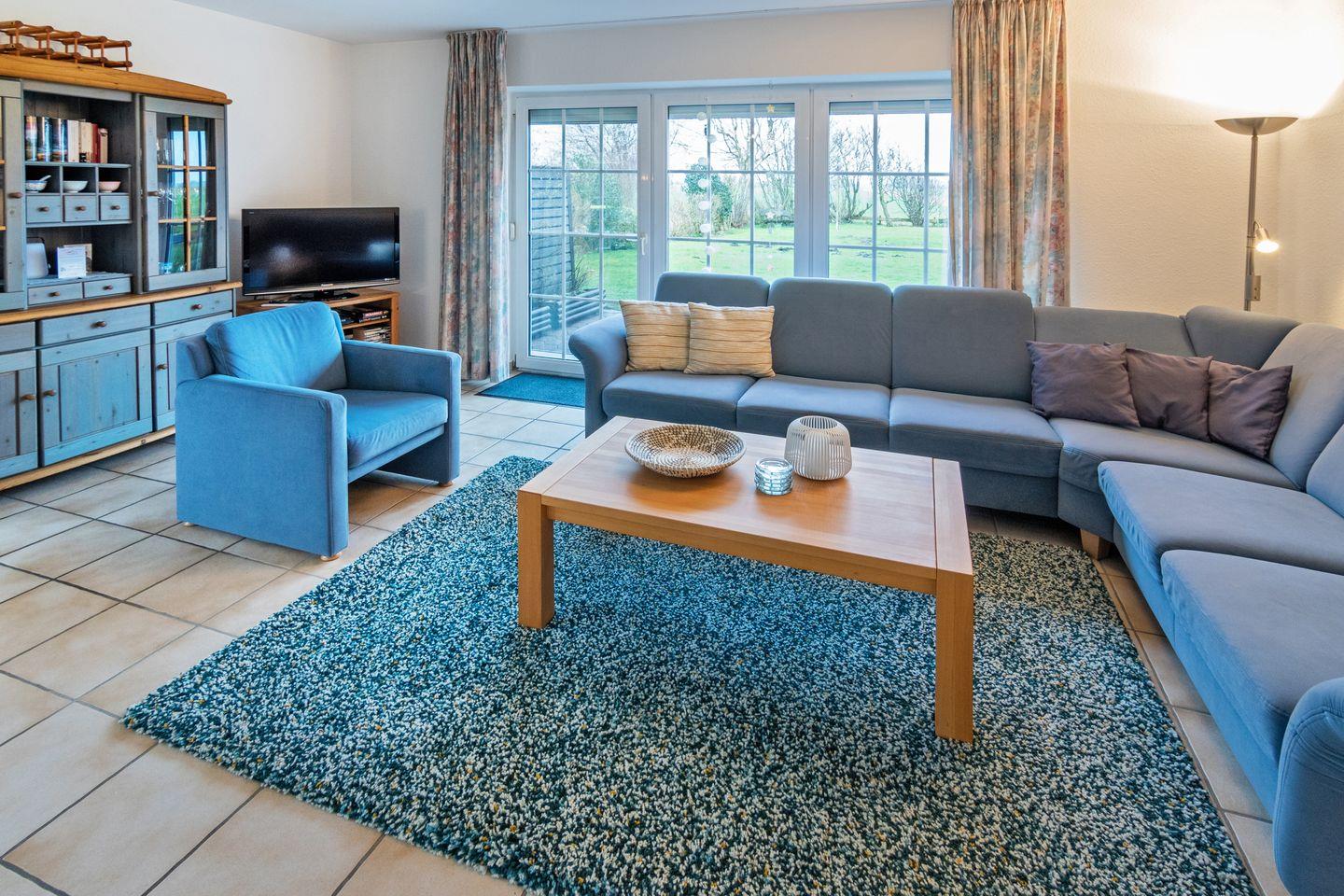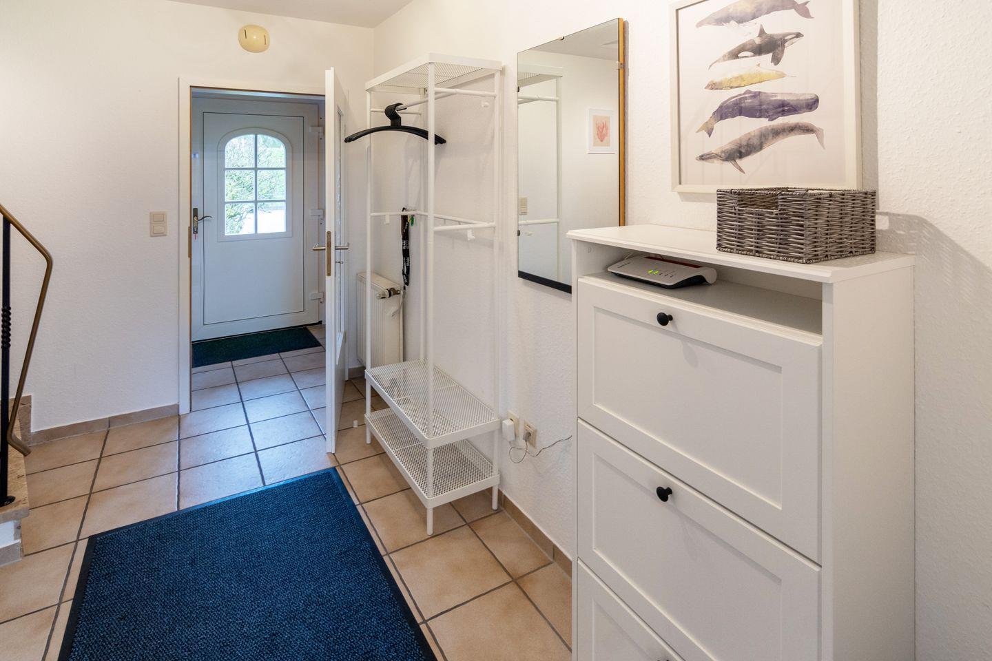 Die Doppelhaushälfte Wiesenblick direkt hinterm Deich verfügt im Erdgeschoss über einen gemütlichen Wohn- und Essbereich mit angrenzender voll ausgestatteter Küche und ein Gäste-WC. Im Obergeschoss befinden sich die zwei Schlafzimmer und ein Duschbad mit WC. Ein weiteres Schlafzimmer finden Sie im Dachgeschoß (ohne Tür). Zum Haus gehört eine Terrasse mit großem Garten. Vor dem Haus befindet sich Ihr PKW-Stellplatz. Das WLAN steht Ihnen kostenfrei zur Verfügung.