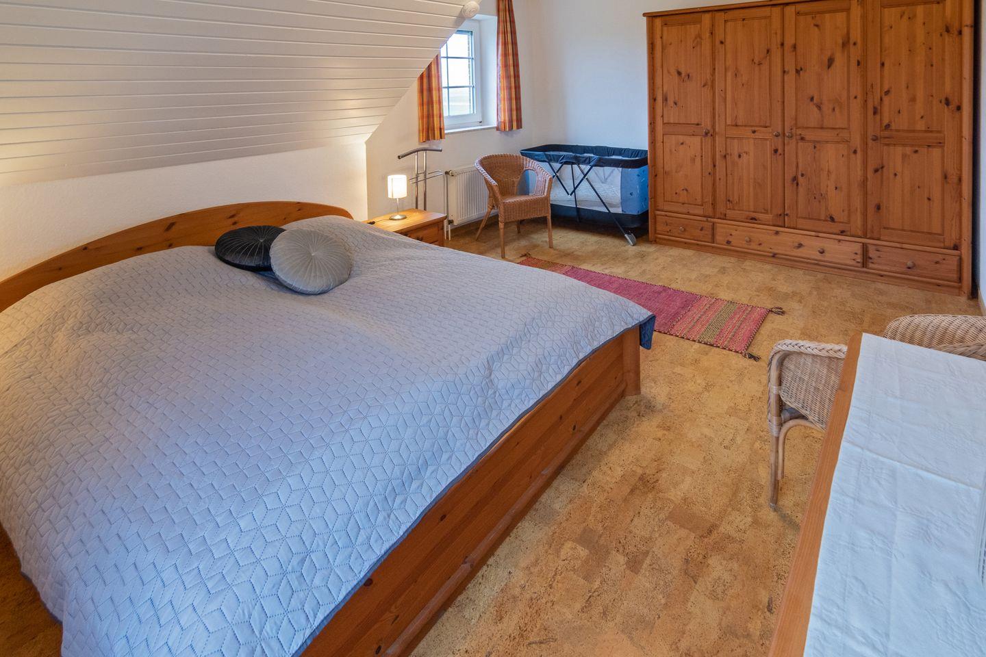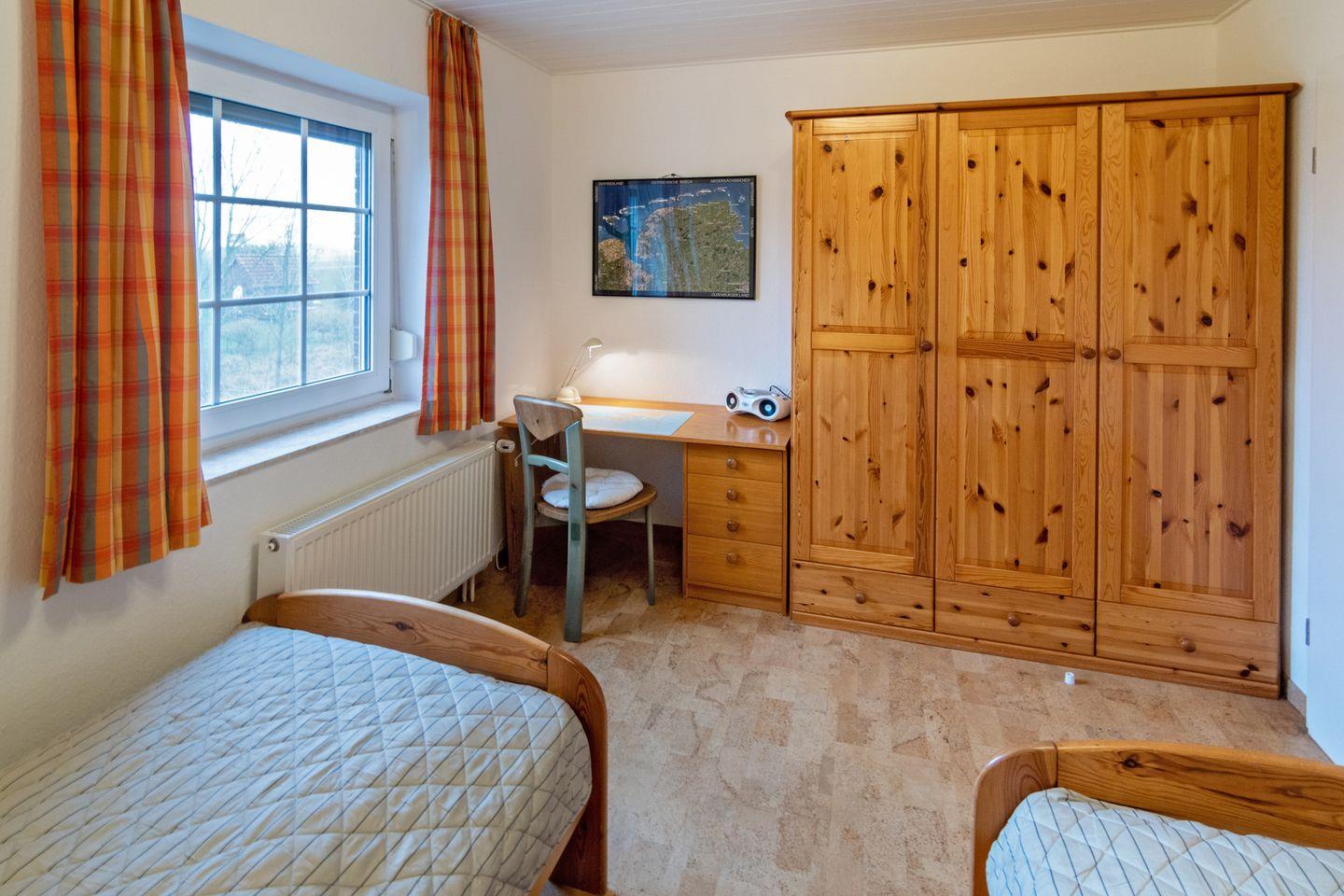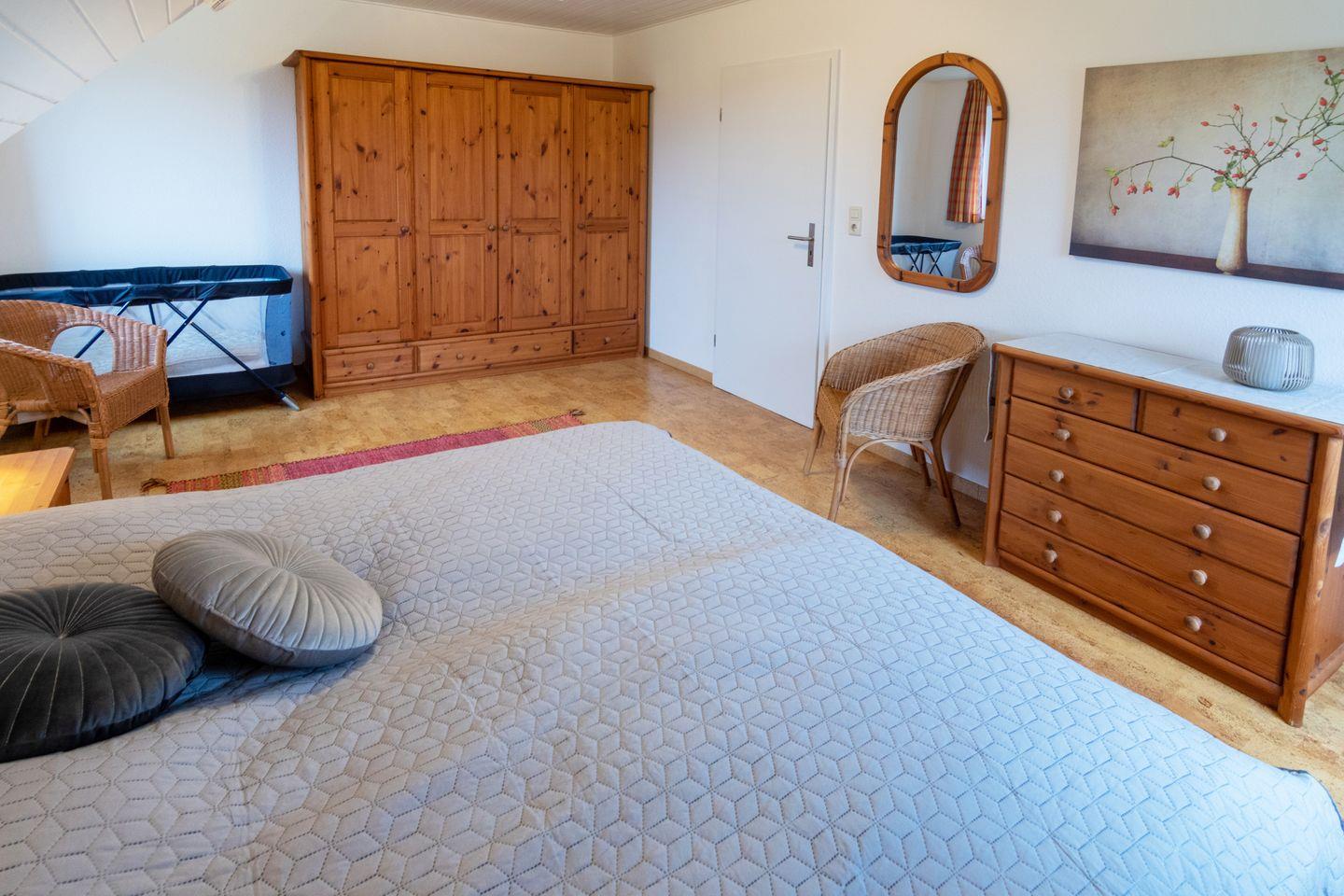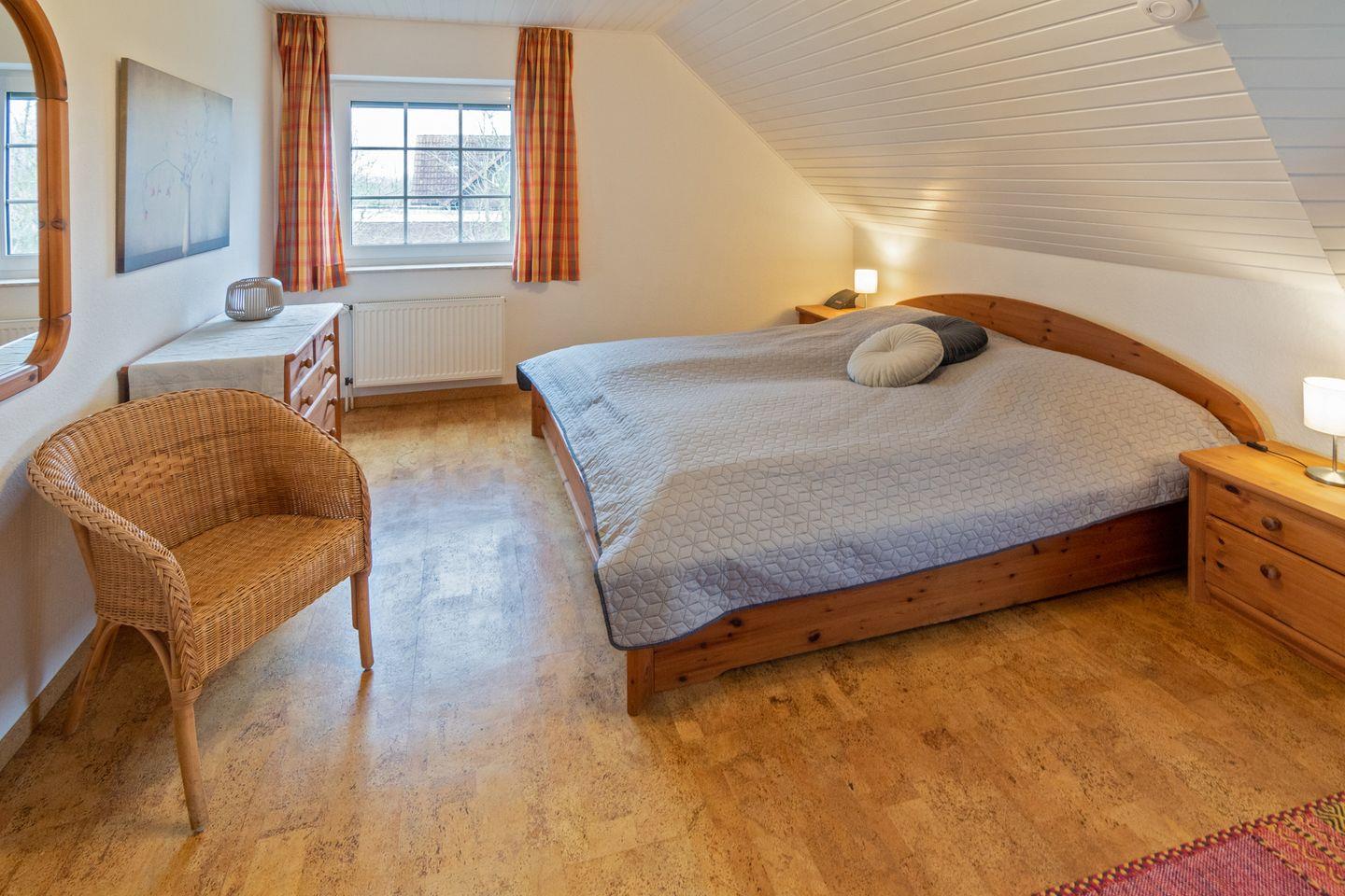 Die Doppelhaushälfte Wiesenblick direkt hinterm Deich verfügt im Erdgeschoss über einen gemütlichen Wohn- und Essbereich mit angrenzender voll ausgestatteter Küche und ein Gäste-WC. Im Obergeschoss befinden sich die zwei Schlafzimmer und ein Duschbad mit WC. Ein weiteres Schlafzimmer finden Sie im Dachgeschoß (ohne Tür). Zum Haus gehört eine Terrasse mit großem Garten. Vor dem Haus befindet sich Ihr PKW-Stellplatz. Das WLAN steht Ihnen kostenfrei zur Verfügung.