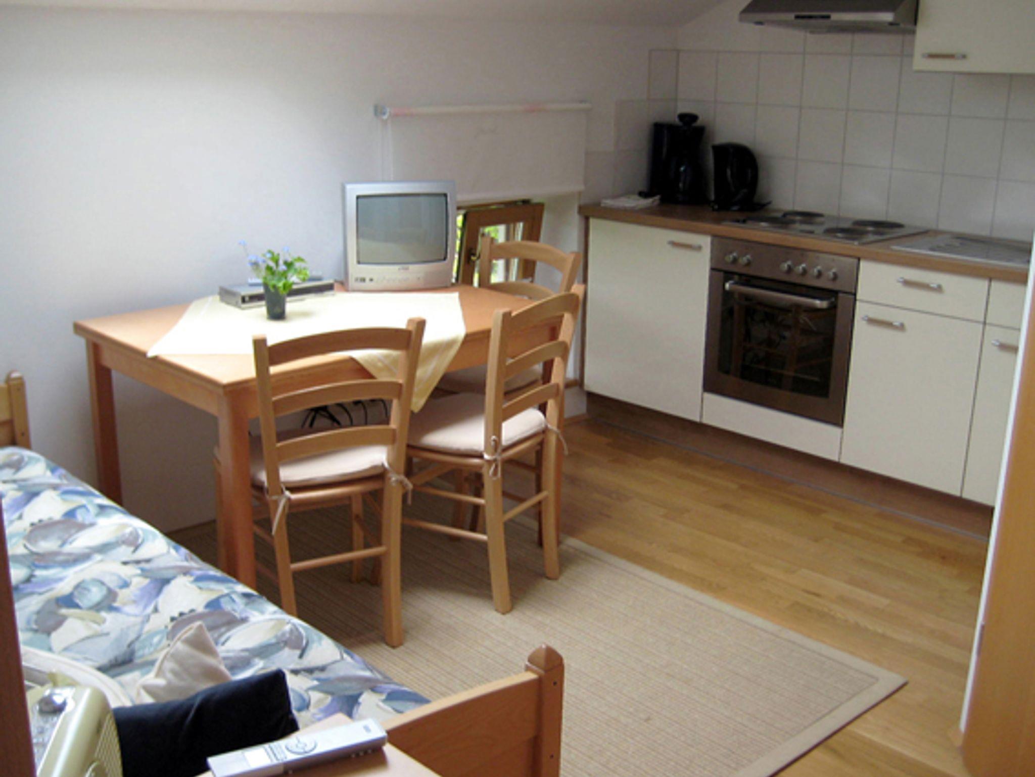 Nette Ferienwohnung für 2 - 3 Personen im Obergeschoss. 1 Doppelzimmer, Wohnküche mit Schlafsofa und Dusche /WC.