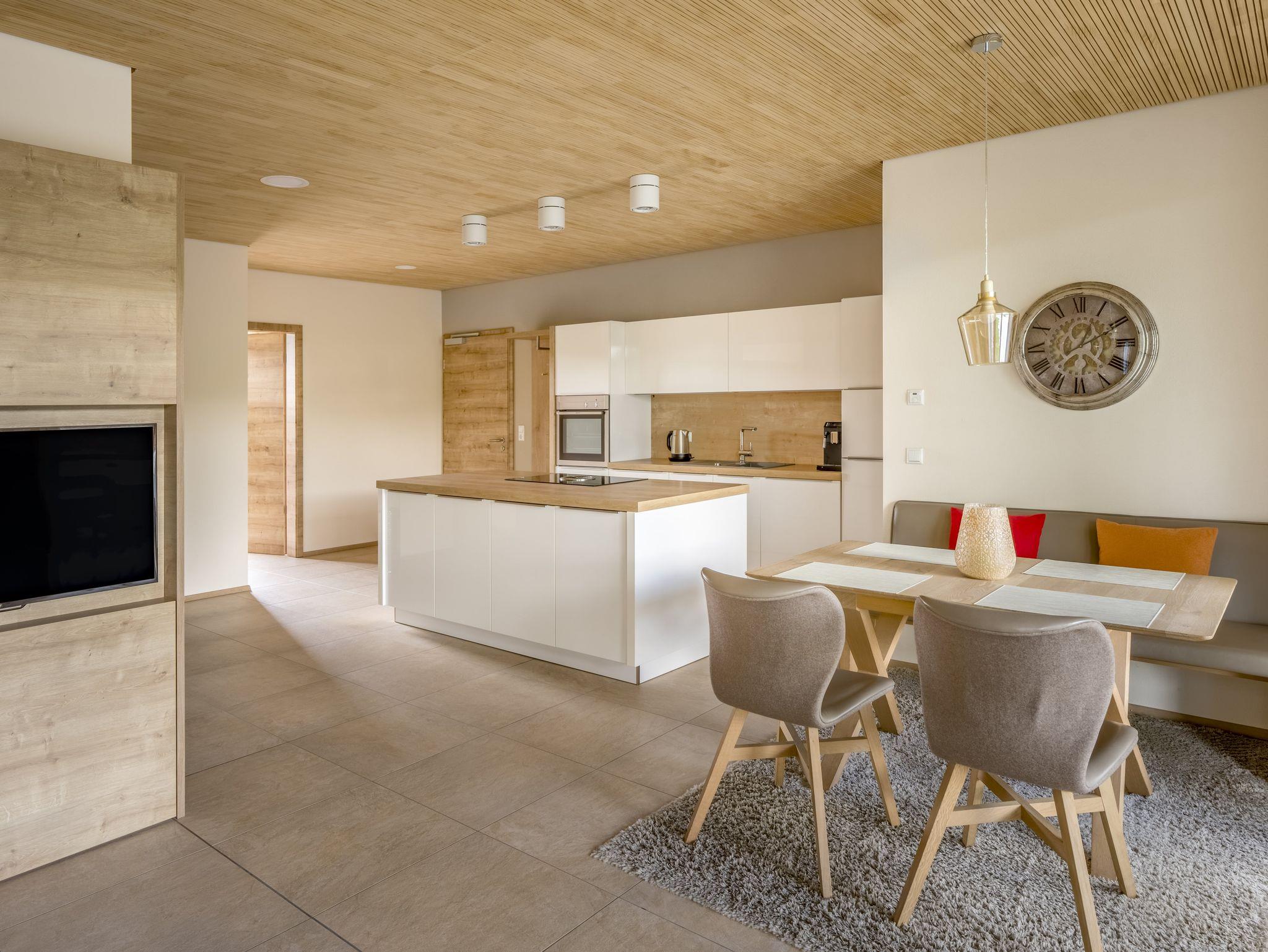 Neues Appartement mit exklusiver Einrichtung wie Kochinsel, Essecke, Wohnraum mit Kuschelcouch, Schlafzimmer mit maßangefertigten Betten und begehbarem Kleiderschrank, zweites Schlafzimmer mit getrennten Betten, Wohlfühlbad mit freistehender Badewanne, Doppelwaschtisch und ebenerdiger Dusche, Flachbildfernseher in Wohnzimmer, Schlafzimmer und zweitem Schlafzimmer, überdachter großzügiger Balkon mit Edelstahl-Gartenmöbeln und einem traumhaften Blick in die Natur.