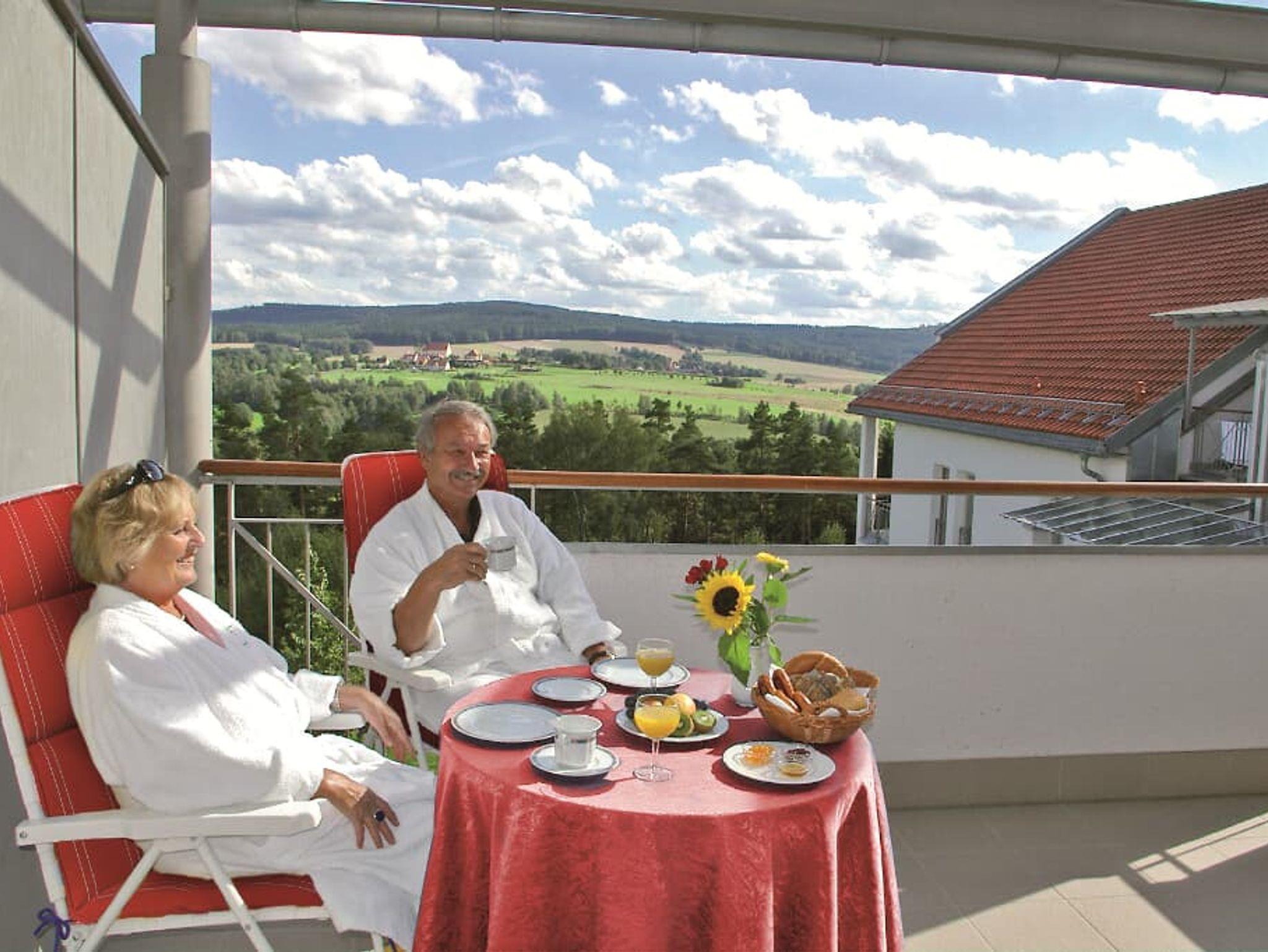 Die traumhaft schöne Südhanglage mit Ausblick über die Berge des Oberpfälzer Waldes garantiert Ihnen einen hohen Erholungswert und damit verbunden einen lang anhaltenden Kurerfolg. Sie wohnen direkt neben dem Kurmittelhaus Sibyllenbad und können durch den Bademantelgang in die einzigartige Wohlfühloase im Herzen Europas eintauchen. Genießen Sie unser bestes Rezept für Ihre Gesundheit - unsere wunderbare Landschaft und viel frische Luft im Oberpfälzer Wald.