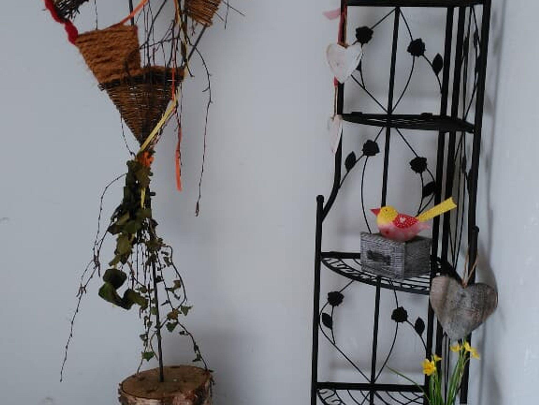 Liebevoll eingerichtetes Romantik-Doppelzimmer klassifiziert mit 3 Sternen und gemütlicher Sitzgruppe. Kühlschrank und Wasserkocher sind ebenfalls vorhanden.