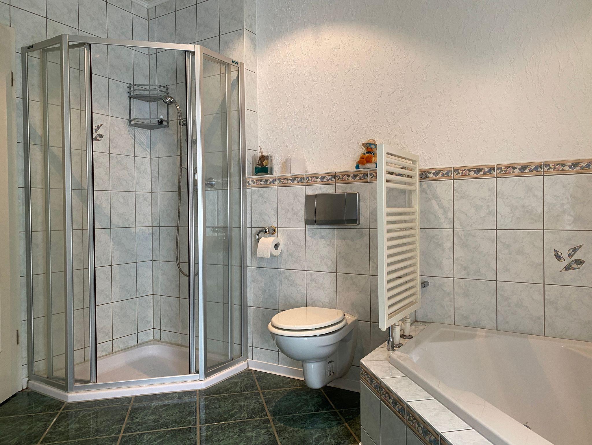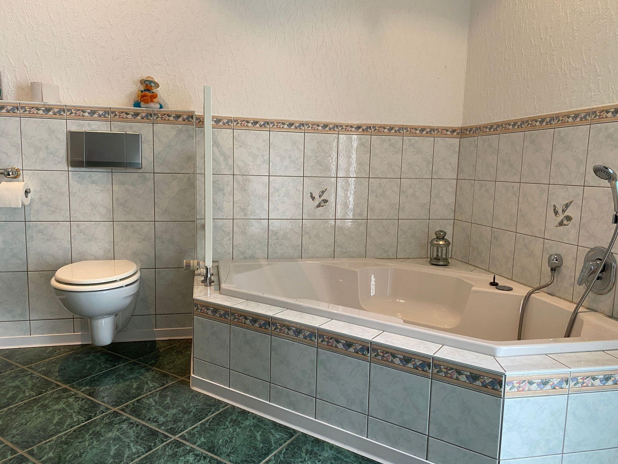 4-Raum-Ferienwohnung im Obergeschoss des Einfamilienhauses mit 3 Schlafzimmern, offener Küche, Wohnbereich mit Couch, TV, Esstisch, Kaminofen. Bad mit Badewanne, Dusche und WC, Balkon. Eine Sitzecke und ein Grill stehen im Garten zur Nutzung bereit. Ihr Gastgeber wohnt im Erdgeschoss des Hauses.
