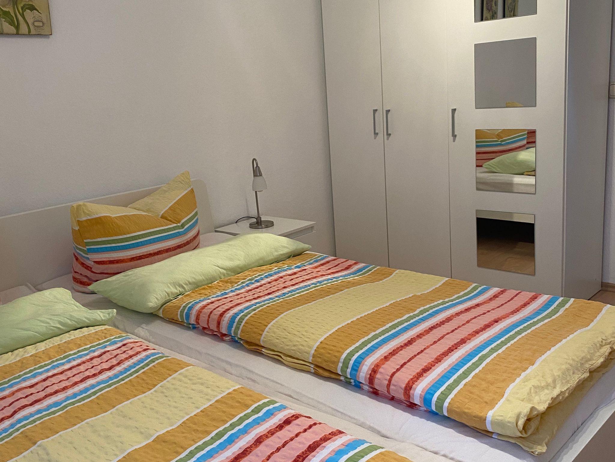 • Schlafzimmer: 1 Schlafraum mit Doppelbett (1,80m x 2m), 1 Babybett möglich
