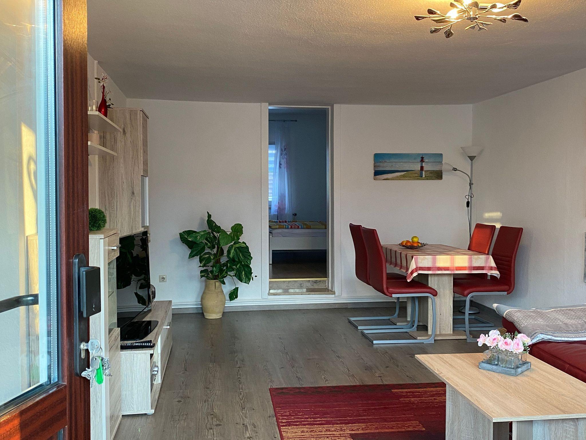 • Wohn-/Eingangsbereich: Wohnschlafraum (Schlafcouch) mit Küchenzeile, Esstisch, TV, Radio, WLAN