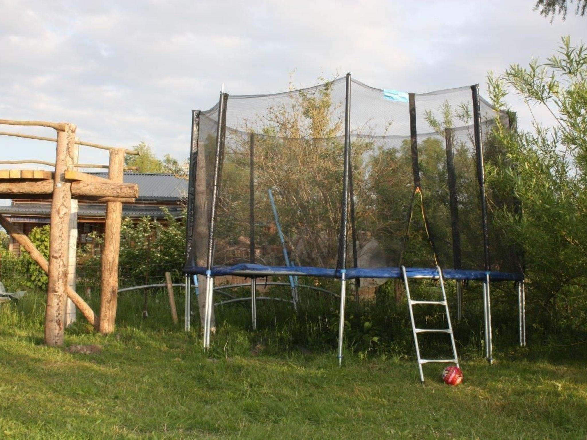 The large terrace is accessible via the living room and is equipped with garden furniture and a barbecue. It is fenced and approx. 130 m² in size. The entire outdoor area is approx. 3890 m² in size and can be shared. There is a playground with swing, digging box & trampoline. Two free parking spaces belong to the holiday flat.