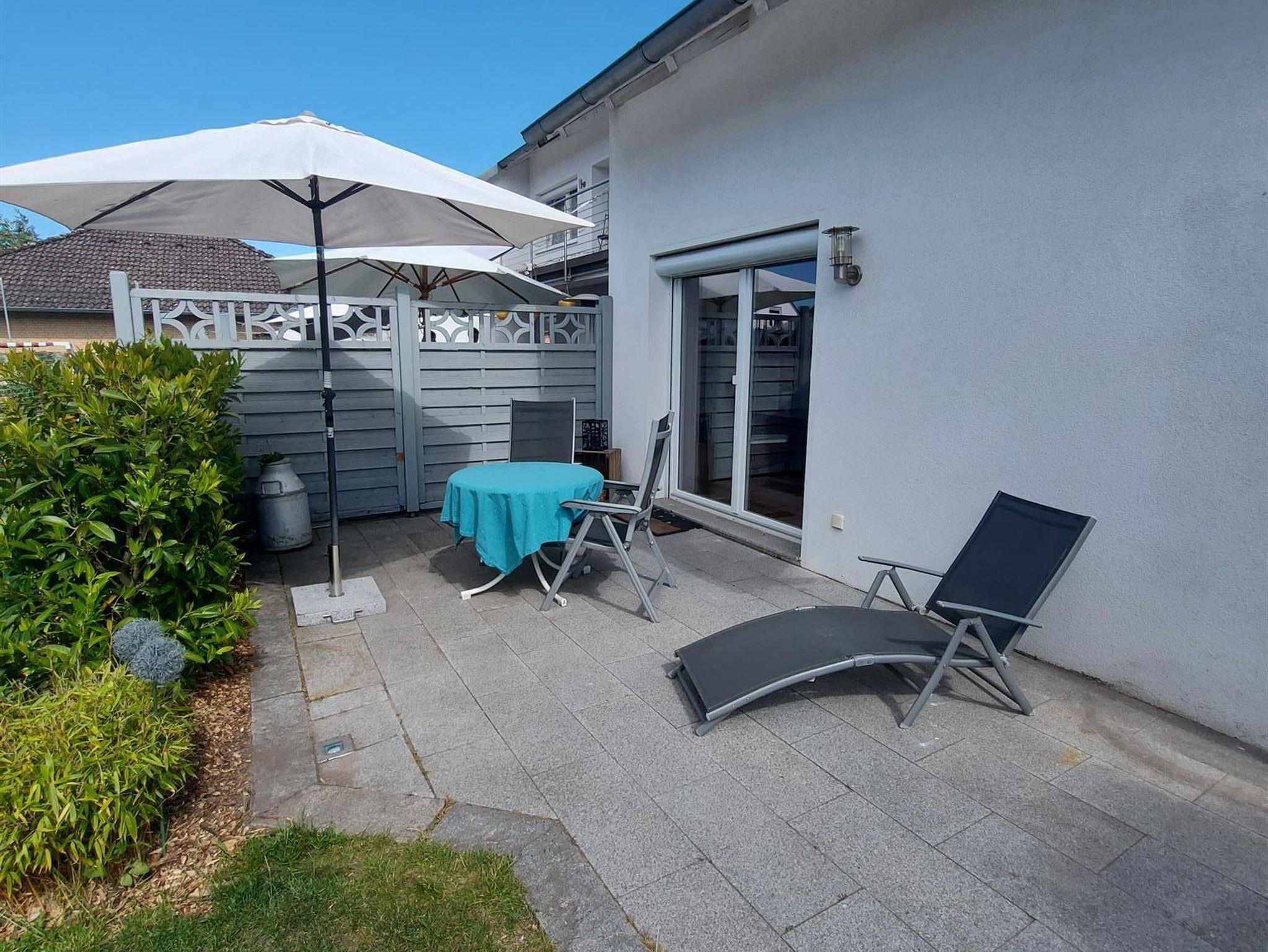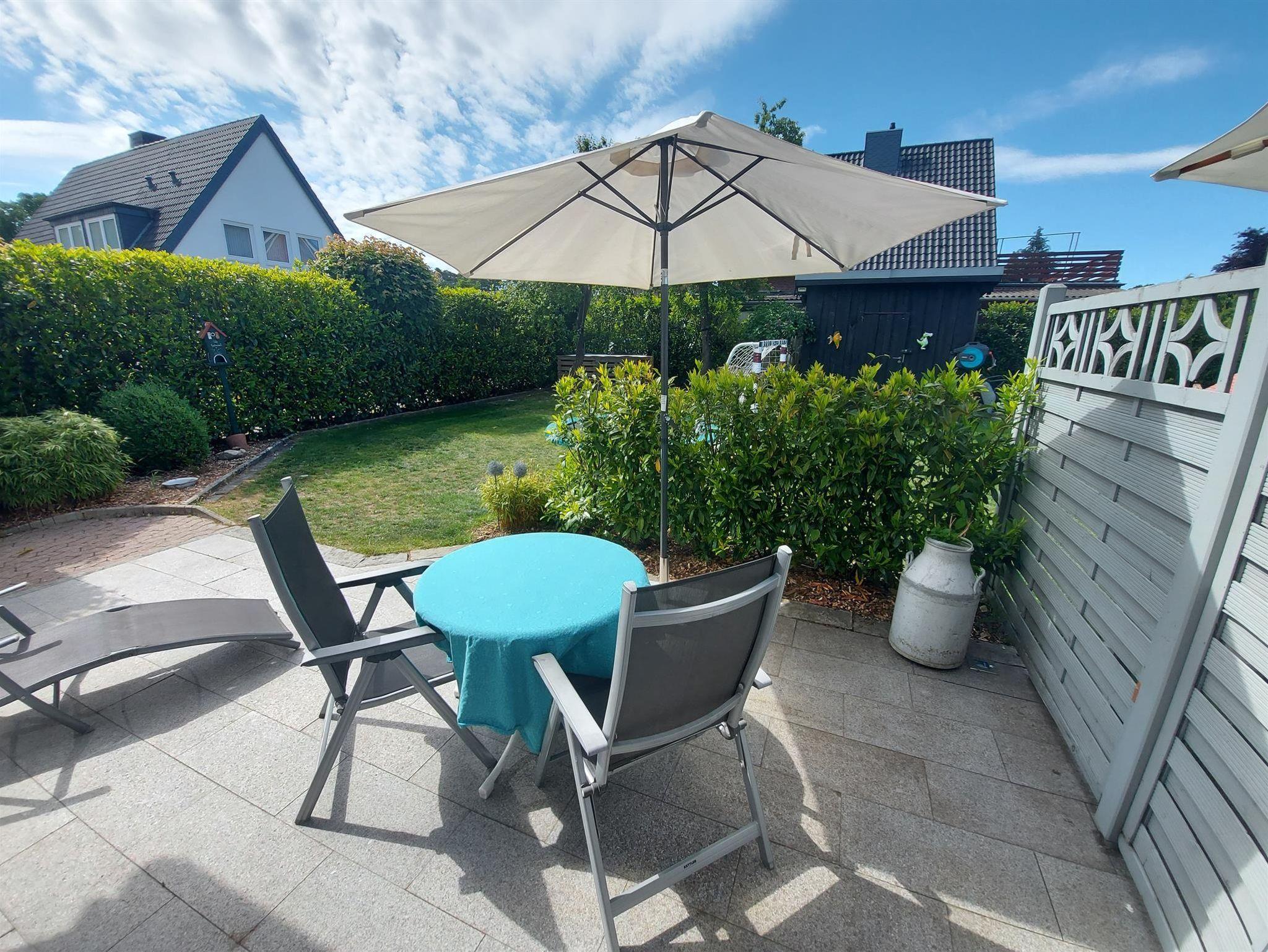 Ein eigener Eingang, sowie Parkplatz sind vorhanden. Die Terrasse ist mit einem Sichtschutz vom Rest des Gartens abgetrennt, damit man ungestört ist.