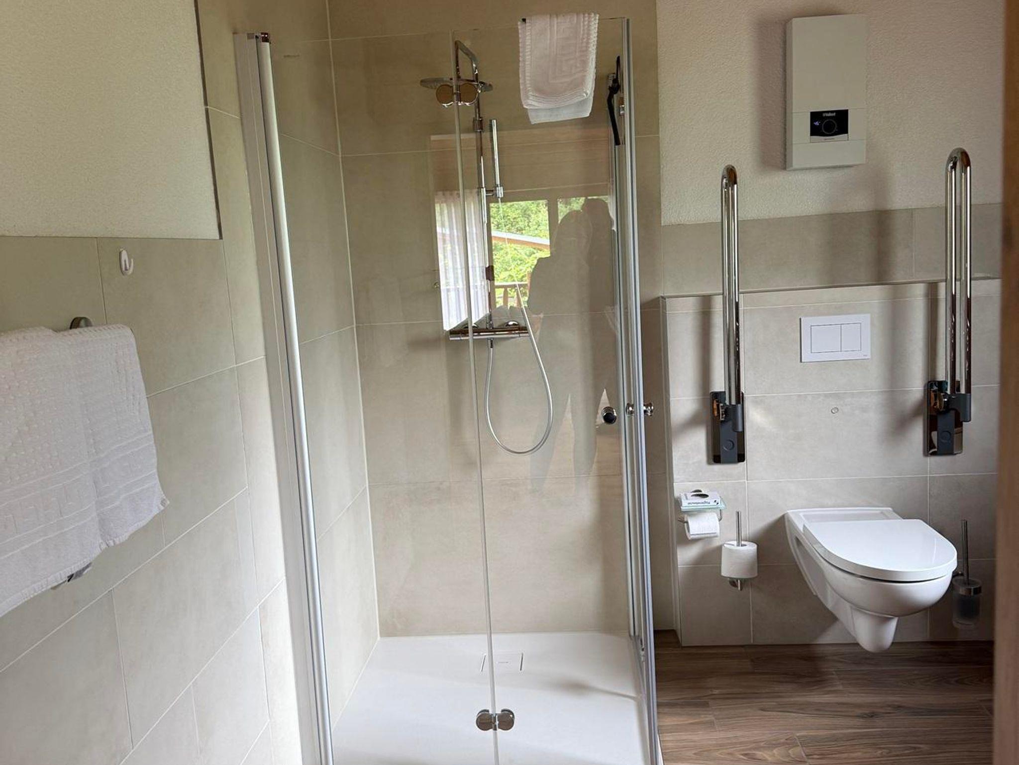 Fuchs Die barrierefreie Ferienwohnung „Fuchs“ im Erdgeschoss bietet Platz für bis zu 3 Personen und verfügt über einen offenen Wohnbereich mit Balkon und Waldblick.
