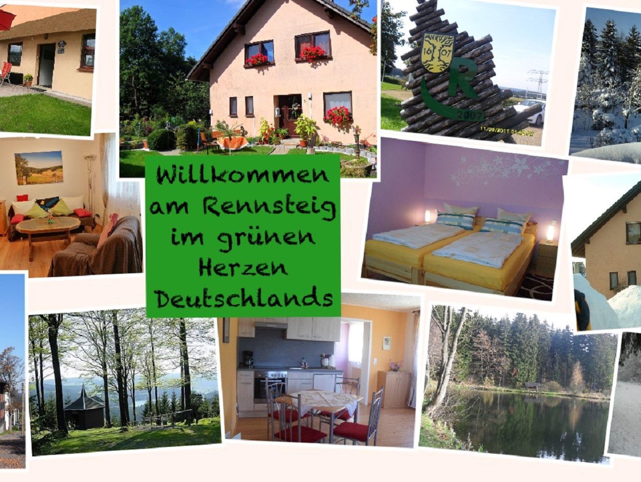 Nur 50 m vom legendären Rennsteig entfernt liegt unsere moderne und gemütliche Ferienwohnung (42 m²) für 2 Personen. Zentrumsnah und doch mitten im Grünen beginnen die Wanderwege in unmittelbarer Nähe. Im Winter sind Skiwege und Lift gleich um die Ecke.Im Garten stehen Gartenmöbel, Liegen und Grill zur Nutzung bereit. Unser Grundstück ist eingezäunt und idealer Auslaufplatz für Ihre Vierbeiner. Da abends in unserem Städtchen die Gehwege zeitiger hochgeklappt werden als anderswo, haben wir auch Bücher und Gesellschaftsspiele im Schrank.Hier finden Sie Ruhe und Entspannung nach langen Spaziergängen oder ausgedehnten Skitouren.