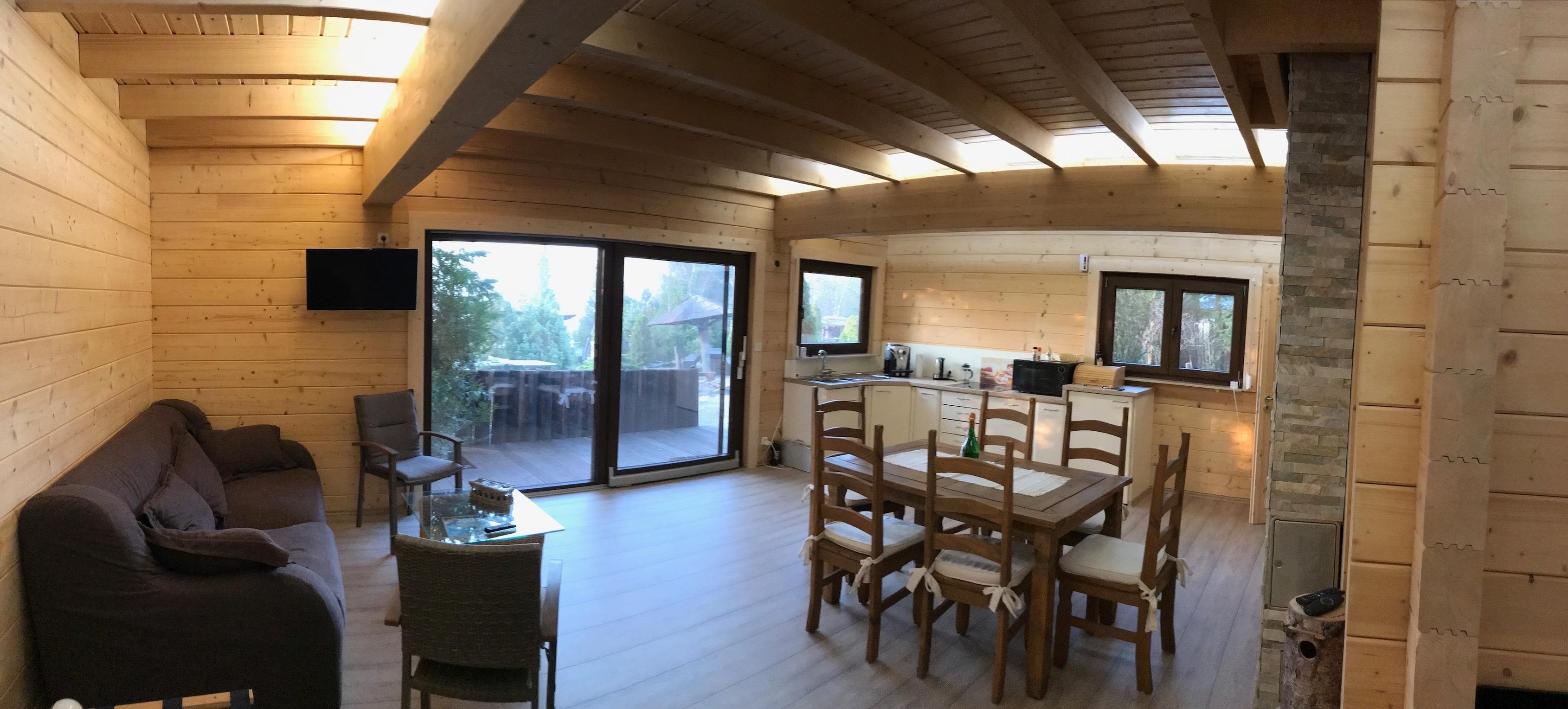 Tolle Details wie Holzbalken, Steinverkleidung, Panoramafenster mit Fliegengitter & Jalousien