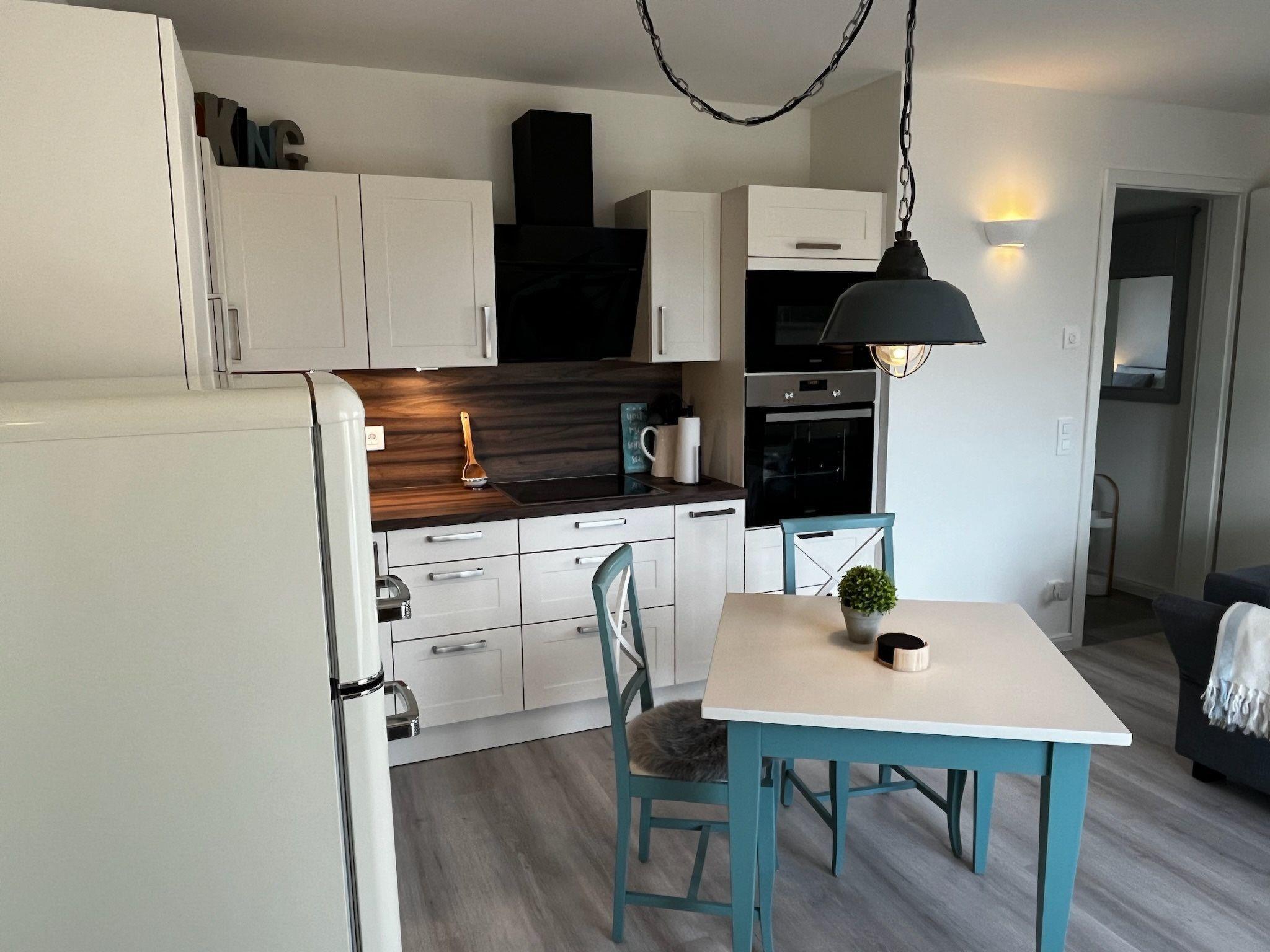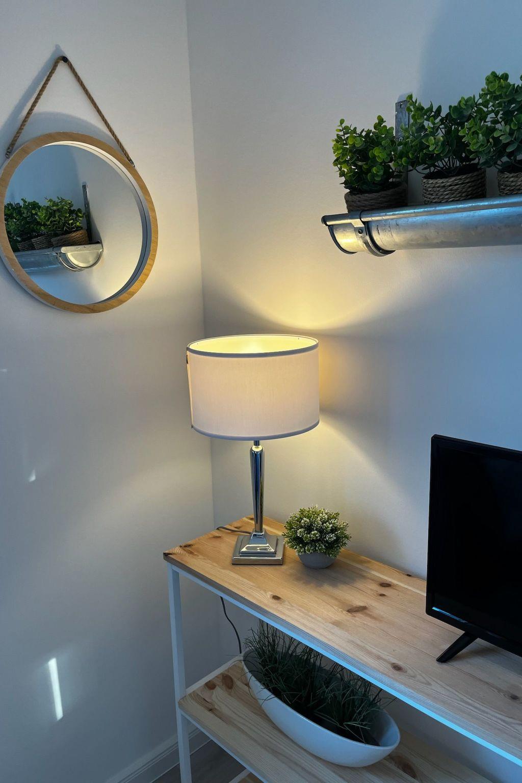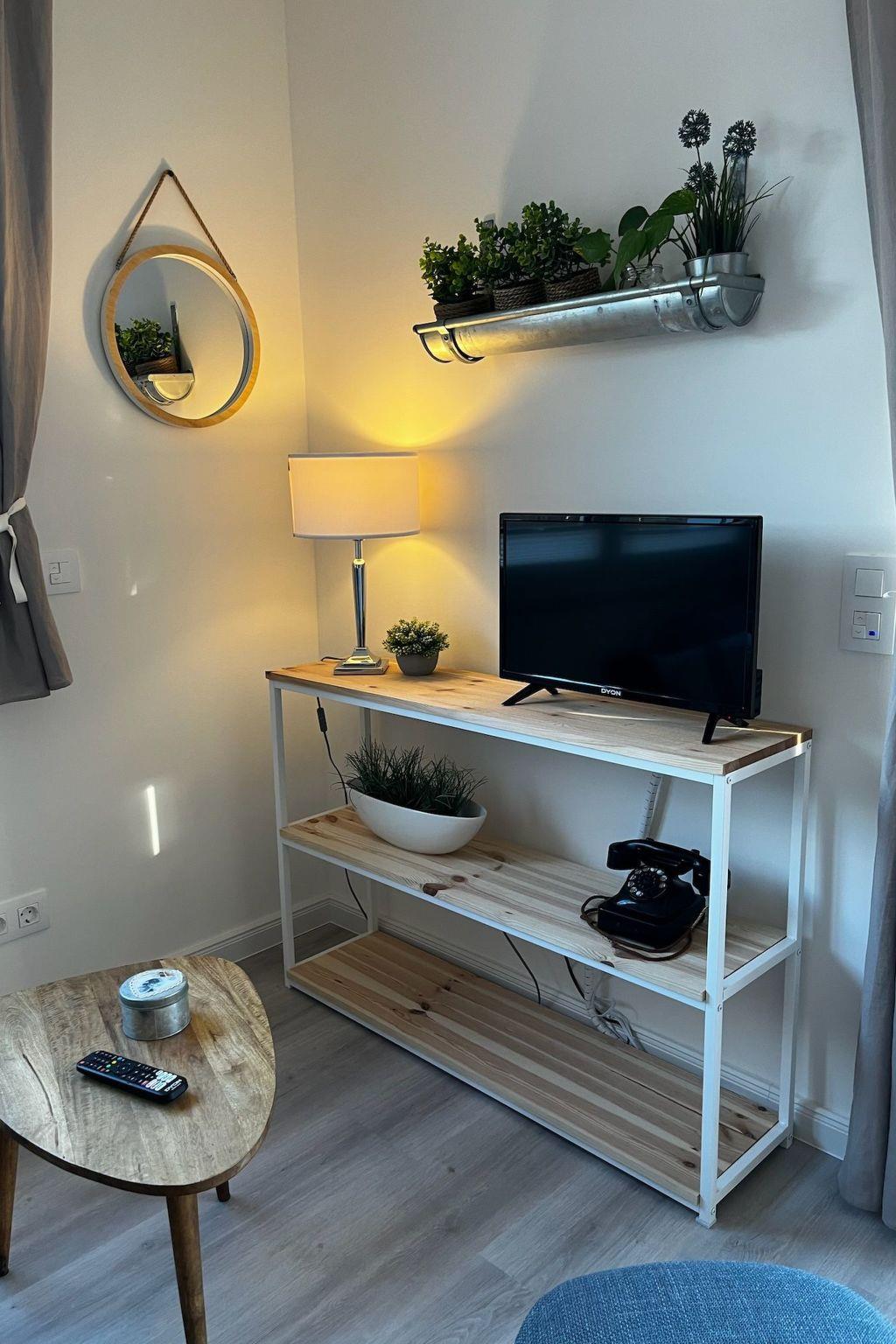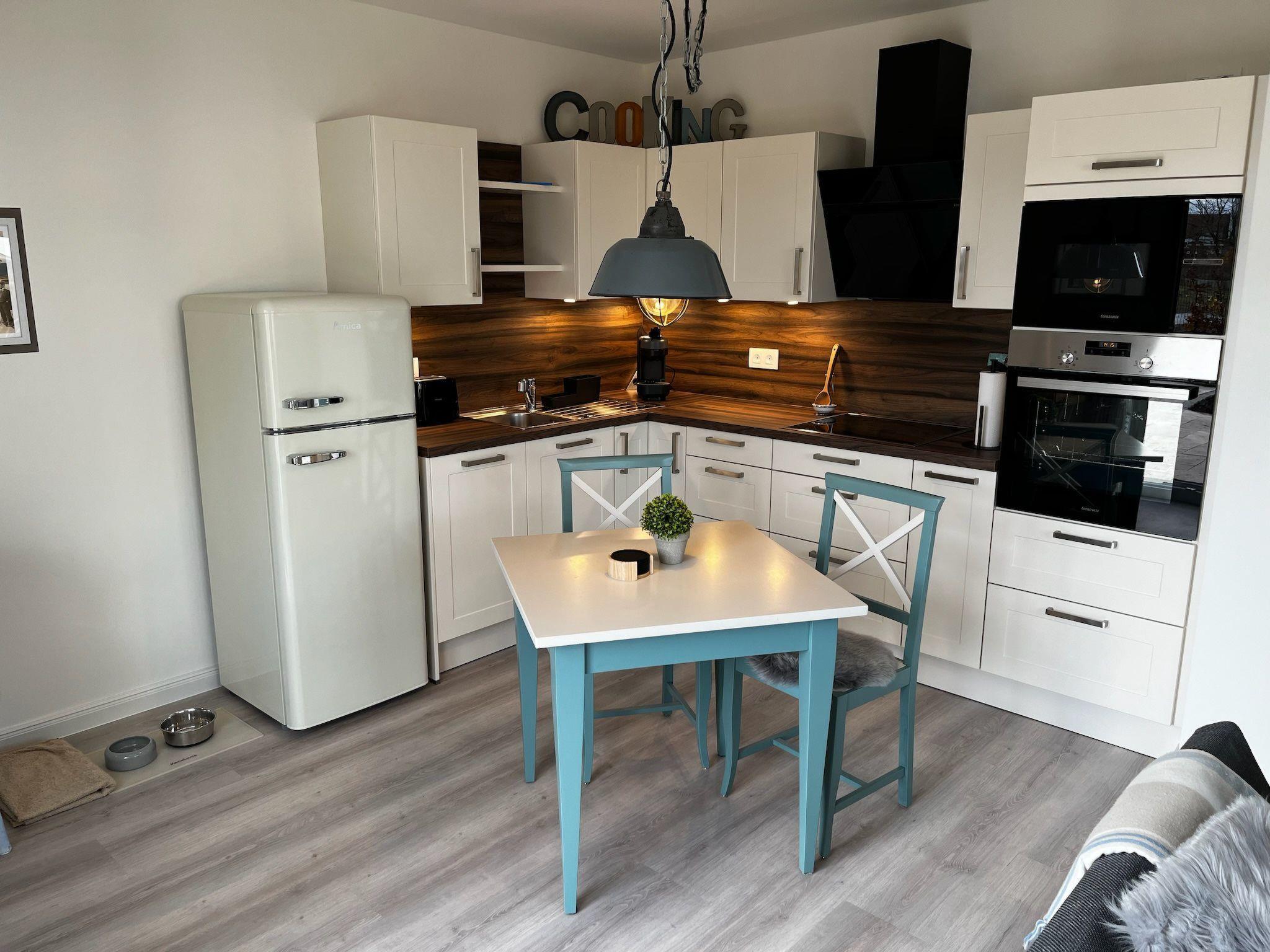 Inside, the flat boasts stylish furnishings that combine wooden elements with modern amenities. The living area invites you to relax with an internet TV and free WiFi. For certain TV apps (e.g. RTL, Pro7 etc.), a separate customer account may be required to access the content.