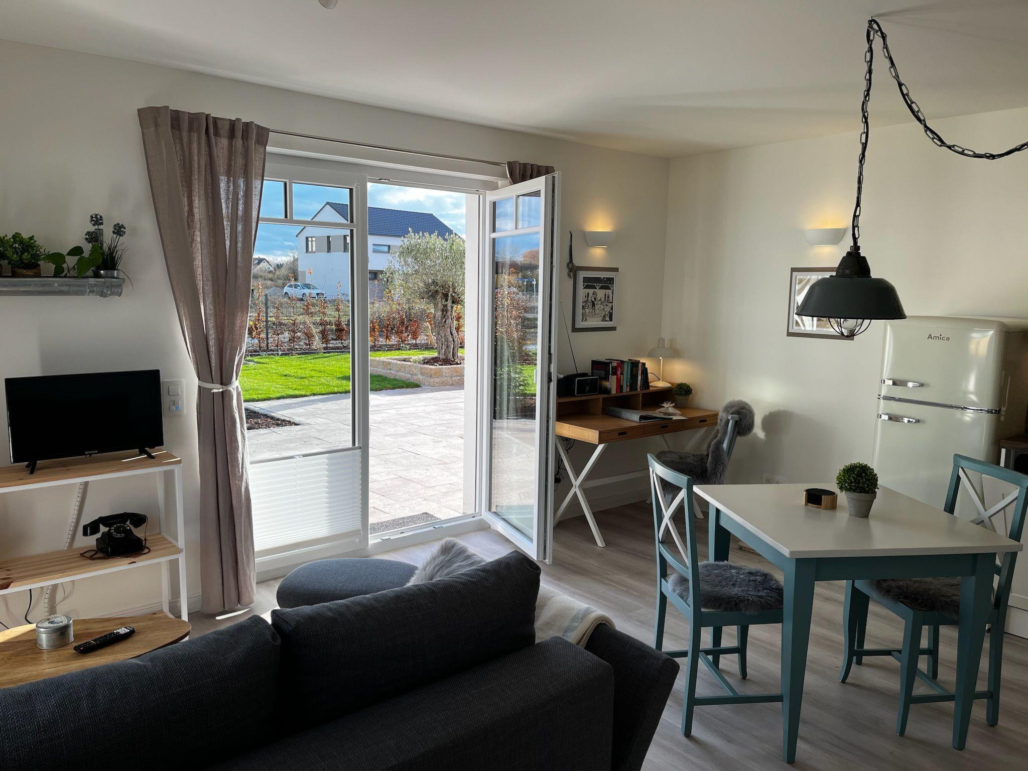 The outdoor area offers a sunny terrace where you can enjoy your meals in the tranquillity of the surroundings or simply spend relaxing hours. The modern new building in which the holiday flat is located promises openness and a pleasant atmosphere and invites you to explore the idyllic surroundings.