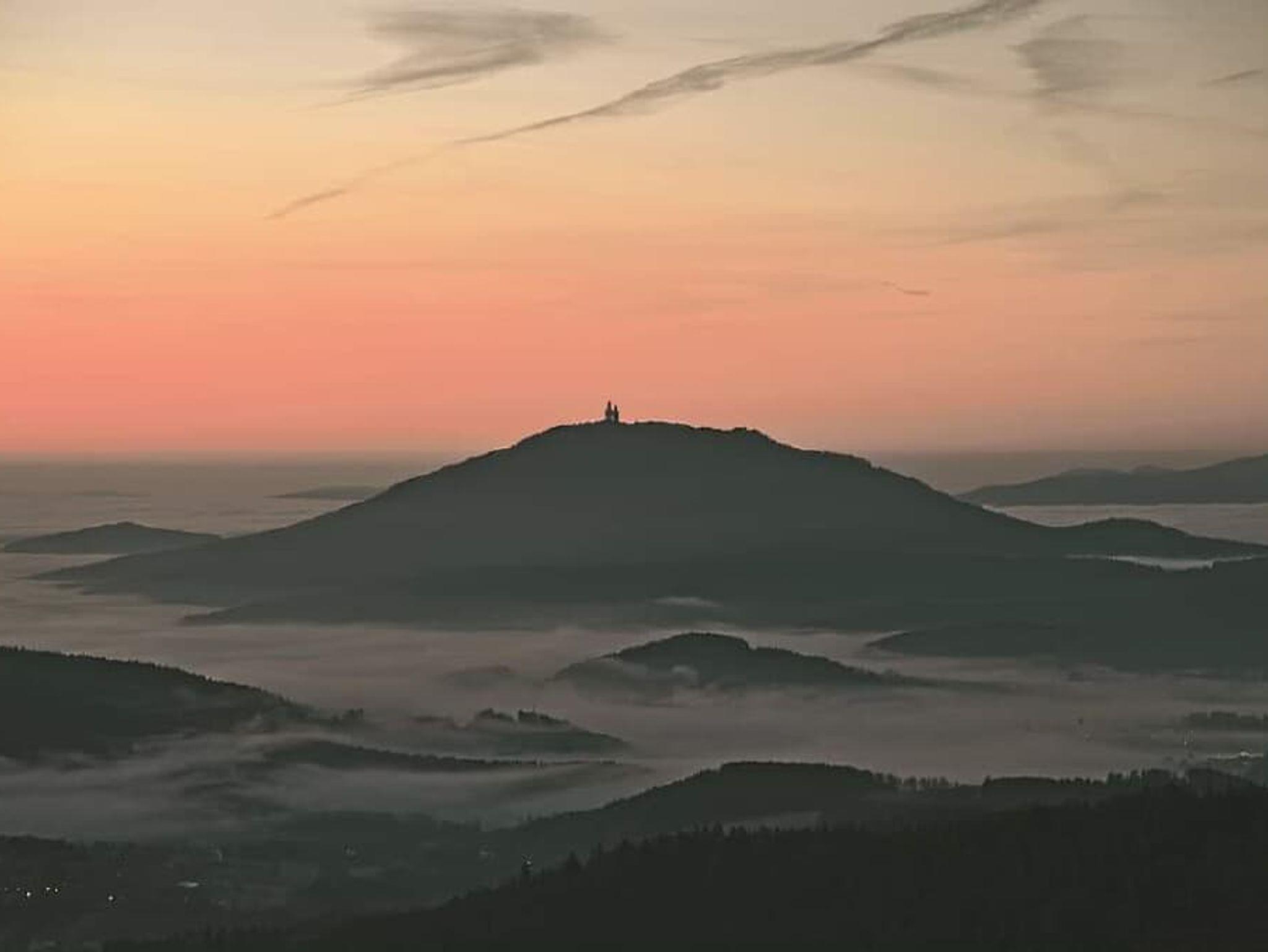 Neu Renovierte Ferienwohnung für 4 Personen mit Balkon, seitlicher Balkon mit Blick nach Neukirchen und zum Hohenbogen, mit Küche, gemütliche L-Couch, 1 Schlafzimmer mit Doppelbett, 1 Schlafzimmer mit zwei Einzelbetten, Bad und seperaten WC