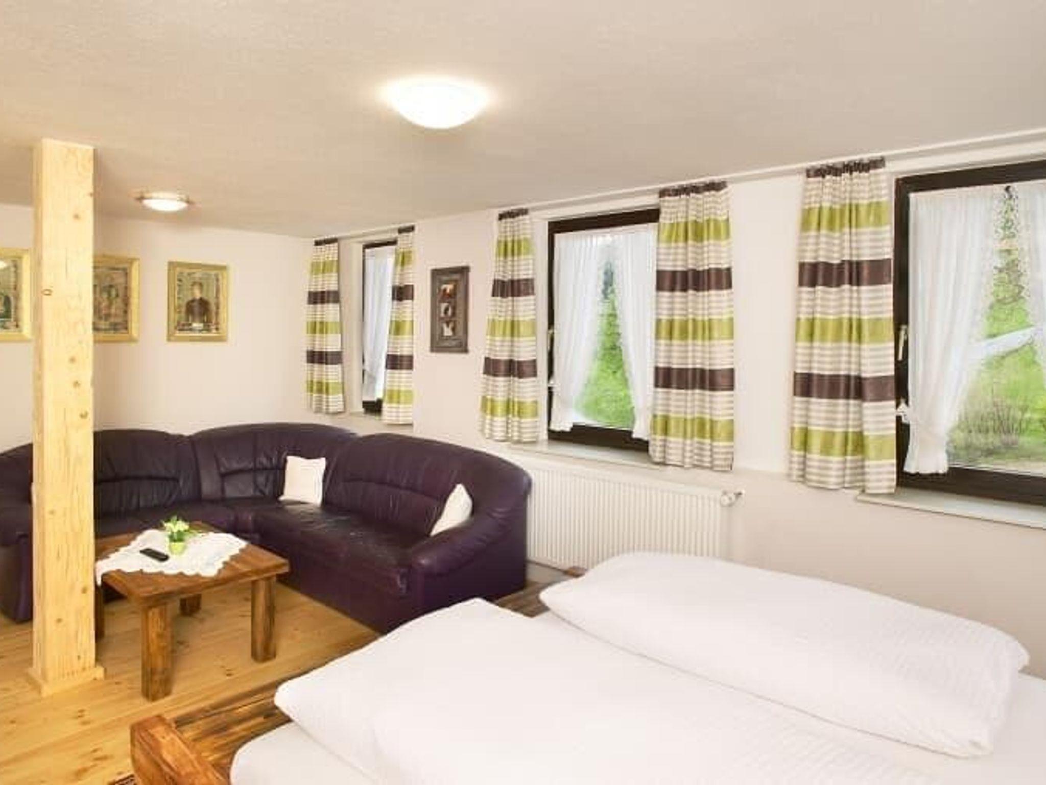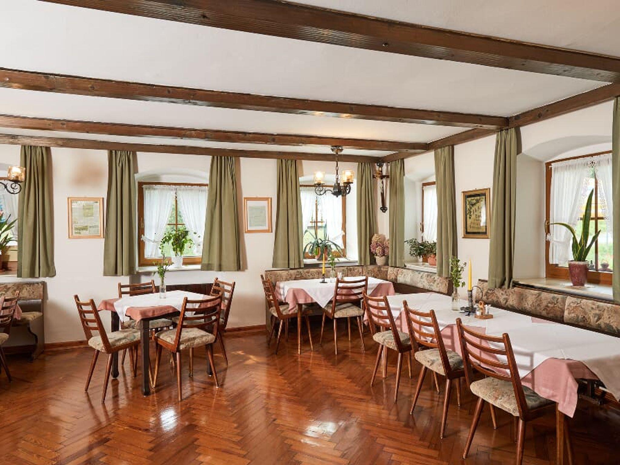 Panorama Suite 2 ohne Balkon Sehr geräumiges, helles Doppelzimmer mit großem Couchbereich, Sat-TV und separater Dusche mit WC. Schöner Ausblick auf die Vorderseite des Anwesens. Möglich ist Übernachtung mit Frühstück oder zusätzlich mit 3-Gänge-Menü zum Abendessen. Kinderermäßigung bis 14 Jahren Das Frühstück wird Ihnen an Ihrem reservierten Tisch Frühstück im gemütlichen Gastzimmer beim Eingangsbereich des Hauses vorbereitet. Zusätzlich können Sie Frühstücks-Spezialitäten a la Carte auswählen. Ausstattung der Panorama Suite: Doppelbett mit offenem Fußende, Hand- und Badetücher, Sat-TV, kostenloses WLAN, Föhn, Radio, großer Schrank, viel Platz für einen ruhigen und erholsamen Urlaub. Gerne können Sie auch die überdachte Hochterrasse auf der gleichen Etage als Raucherbereich nützen. Zusätzlich stehen Etagentoiletten zur Verfügung. Mindestaufenthalt für diesen Preis: 3 Nächte Belegung: 2 Person
