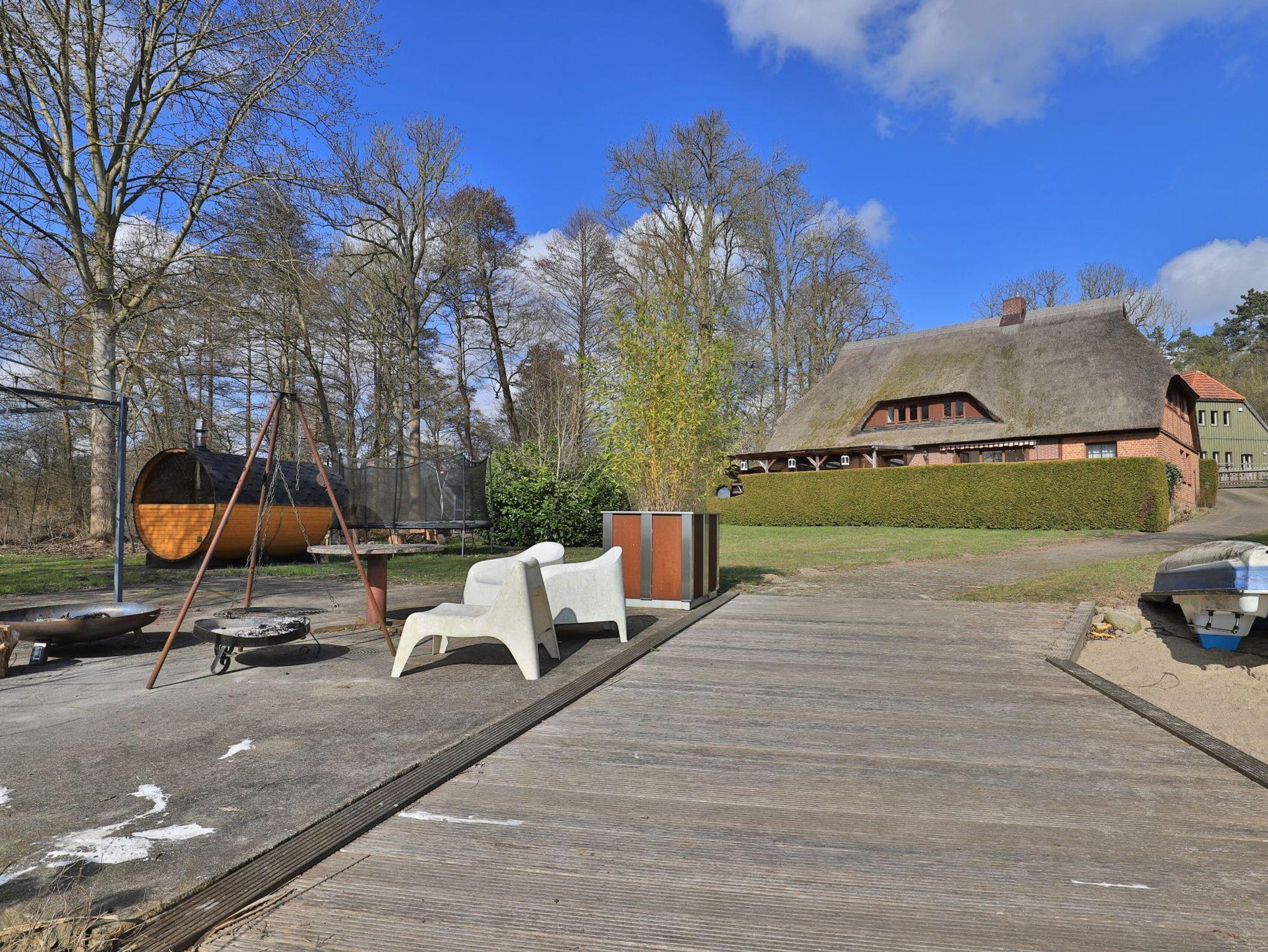 Ferien im Reetdachhaus mit Seeblick verspricht die behagliche 2- Zimmerwohnung Abendrot, welche Ihnen eine Wohnfläche von 43qm bietet und zudem über eine große, überdachte Terrasse verfügt. Für eine Belegung mit bis zu 3 Personen ist die Wohnung gut geeignet. Es empfängt Sie ein geräumiger Wohn-Essbereich mit einer Sofalandschaft, welche auch als Schlafmöglichkeit für eine 3. Person genutzt werden kann. Fernseher, DVD-Player sowie Musikanlage sind vorhanden. Direkt vom Wohnzimmer gelangen Sie auf die großzügige und saisonal möblierte Terrasse, von wo aus Sie auf den Neukloster See schauen können. In den Wohnbereich ist eine offene Küche integriert, die mit Herd, Backofen, Dunstabzugshaube sowie Kaffeemaschine, Toaster, Wasserkocher ausgestattet ist. Das separate Schlafzimmer ist mit einem Doppelbett und Kleiderschrank eingerichtet. Das Tageslicht Duschbad ist hell gefliest. Bei Anreise sind Ihre Betten bereits für Sie bezogen und Handtücher liegen bereit. Auch die Nutzung von Waschmaschine und Wäschetrockner ist möglich. Die Nichtraucher Ferienwohnung ist ideal für Gäste, die mit ihrem Hund anreisen möchten. Ihren PKW parken Sie kostenfrei auf einem PKW -Außenstellplatz.
