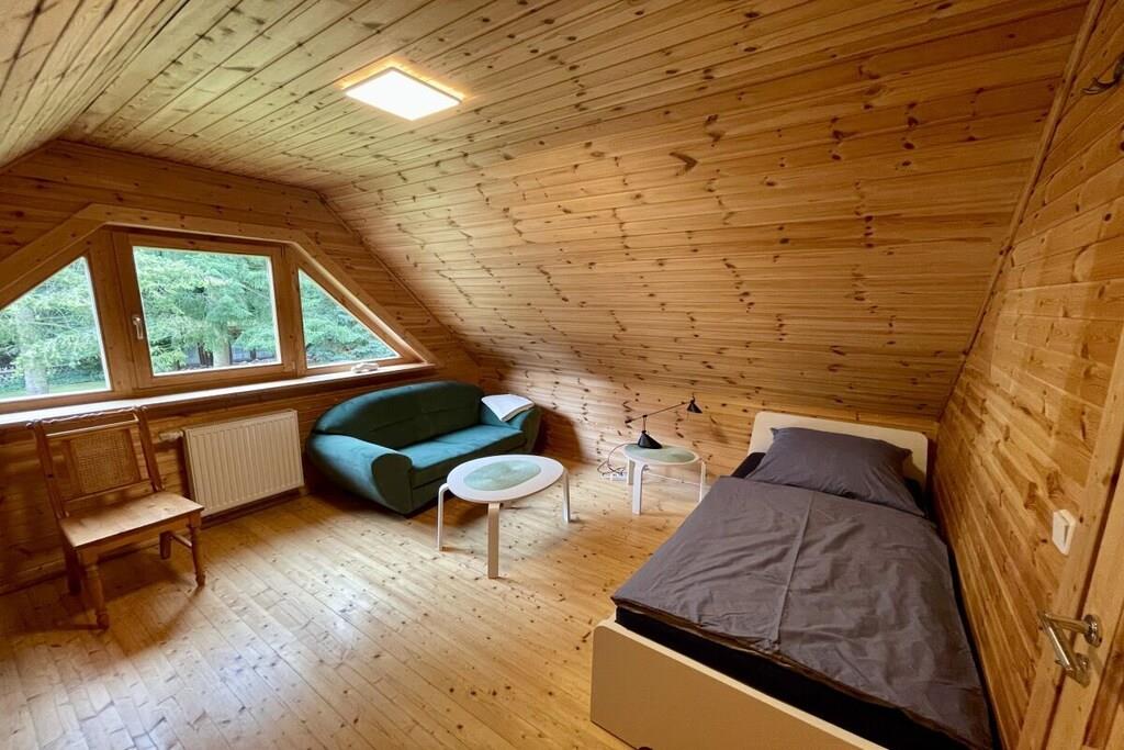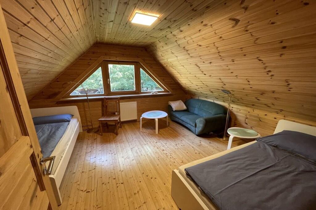 Stueetage: (entre(, ), Køkken(, , , , tekøkken, kakkelovn, kogeplade, elkedel, brødrister, komfur, kaffemaskine, ovn, mikrobølgeovn, opvaskemaskine , køleskab, fryser, fryser, insektnet, Foodprocessor), stue / spisestue(, , , Fjernsyn, Fjernsyn, spisebord, DVD-afspiller, DVD-afspiller, videoafspiller, Blu-ray afspiller, radio, CD-afspiller, stereoanlæg, baldakin, insektnet), badeværelse(, , toilet, bruser, bruser, håndvask, føntørrer), varme(, tørretumbler, tørreskab)) Loft: (soveværelse(, , dobbeltseng, radio, insektnet), soveværelse(, , enkeltseng, enkeltseng, insektnet)) , , , , Internetadgang, Førstehjælp, balkon(havemøbler), varme, terrasse(, Grill center, Bordtennis, Græsplæne, pejs, grill, grill, tremmeseng, havemøbler, solstole, dam, baldakin), have(Grill center, Bordtennis, pejs, stereoanlæg, grill, grill, havemøbler, solstole, dam), parkering, strygebræt, strygejern, tørreskab, Ladestation til el-biler, Vaskeripakke mod et gebyr