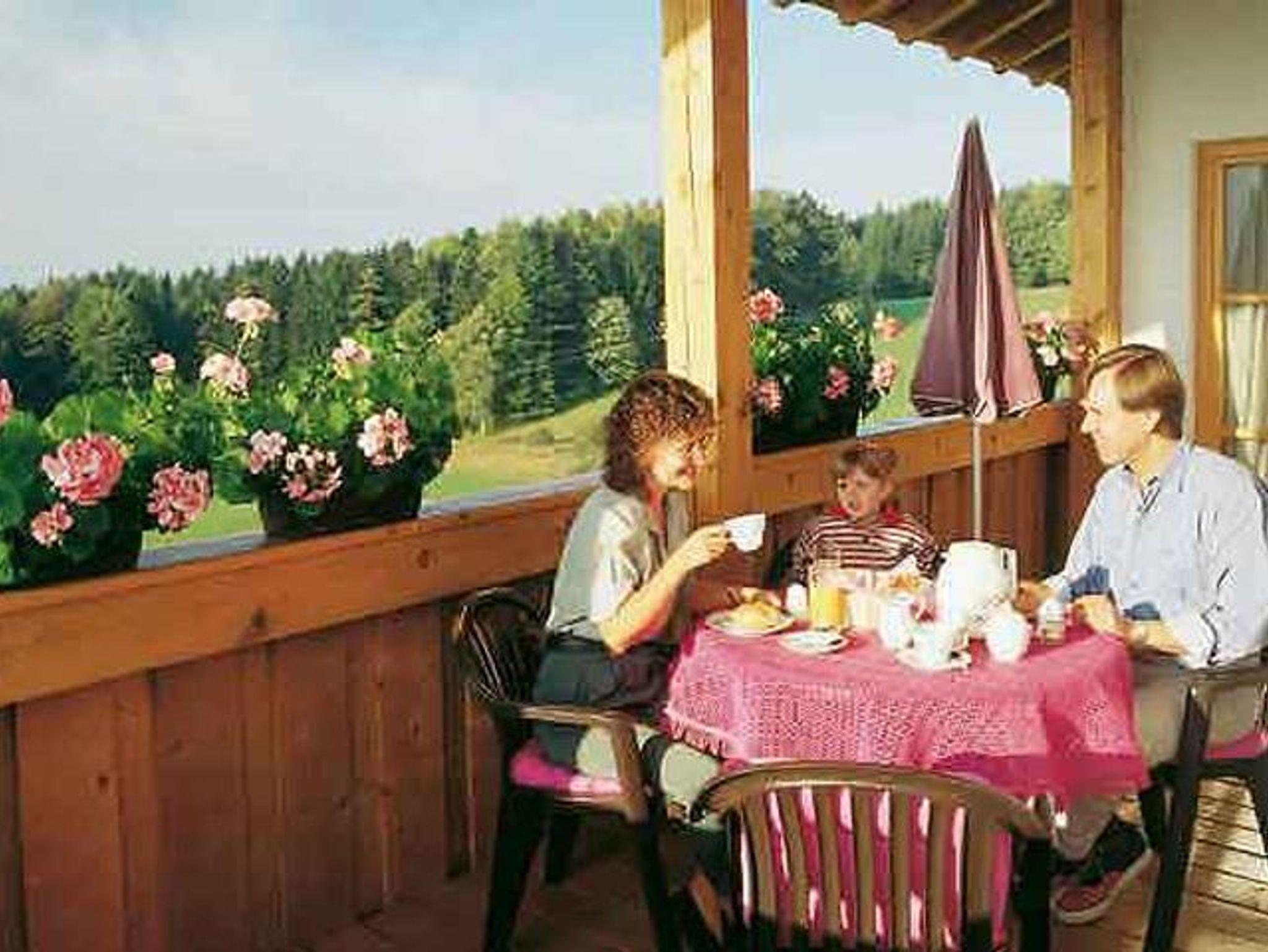 Unsere kinderfreundlichen Ferienwohnungen befinden sich in ruhiger Ortsrandlage an einem unverbauten Südhang. Eingebettet in ein parkartig angelegtes Hausgrundstück genießen Sie einen herrlichen Ausblick. Gemütliche Appartements und Ferienwohnungen mit gehobener Komfort-Ausstattung aus Naturholz. Große sonnige Terrassen bzw. Balkone. Erholungsbereich mit Solarium, Sauna und Ruheraum, Trimm-Dich-Raum und Aufenthaltsraum. Bettwäsche wird gestellt, Handtücher gegen Gebühr. 15.000 qm hauseigenes Freizeitgrundstück mit Gartenhaus, Liegewiese, Spielplatz, Grillplatz sowie Wiesenbächlein mit Naturkneippanlage. Naturbadesee, Nationalpark-Infozentrum, Tierfreigelände, Golfplatz (Green-Fee-Ermäßigung) sind in wenigen Minuten zu erreichen. Winterspaß gewährleistet der direkte Loipeneinstieg nahe am Haus und die Rodelbahn.