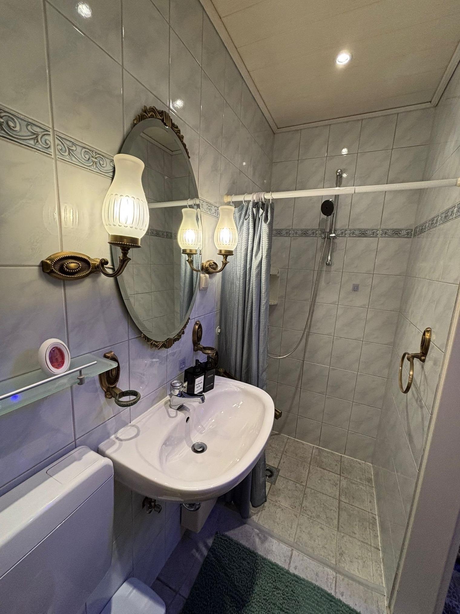 Die Küche ist voll ausgestattet – inklusive Kaffeebohnen, Öl, Zucker und Kaffeesahne. Handtücher, Bademäntel und kleine Annehmlichkeiten liegen bereit. Eigenes Badezimmer mit Dusche und WC ist ebenfalls mit im Apartment vorhanden.