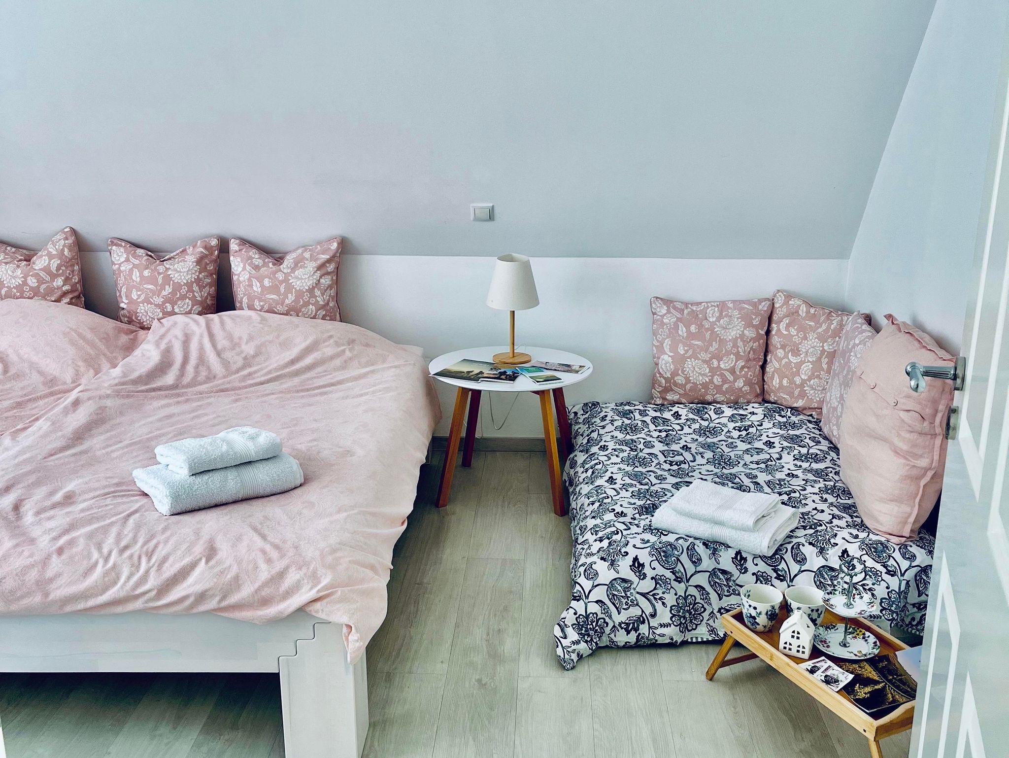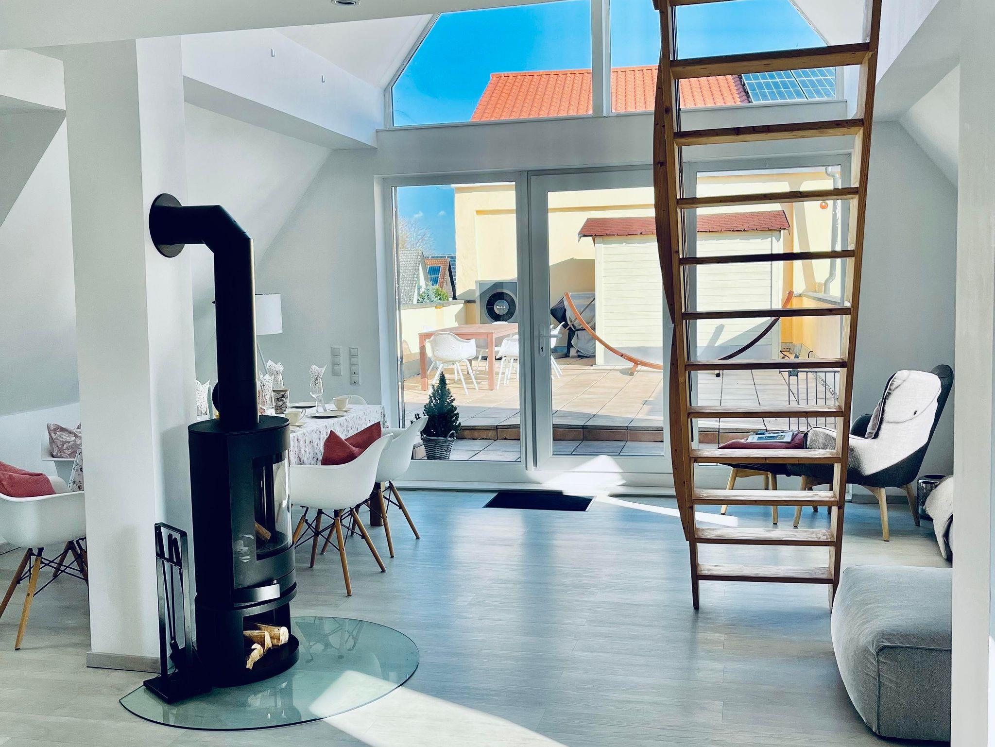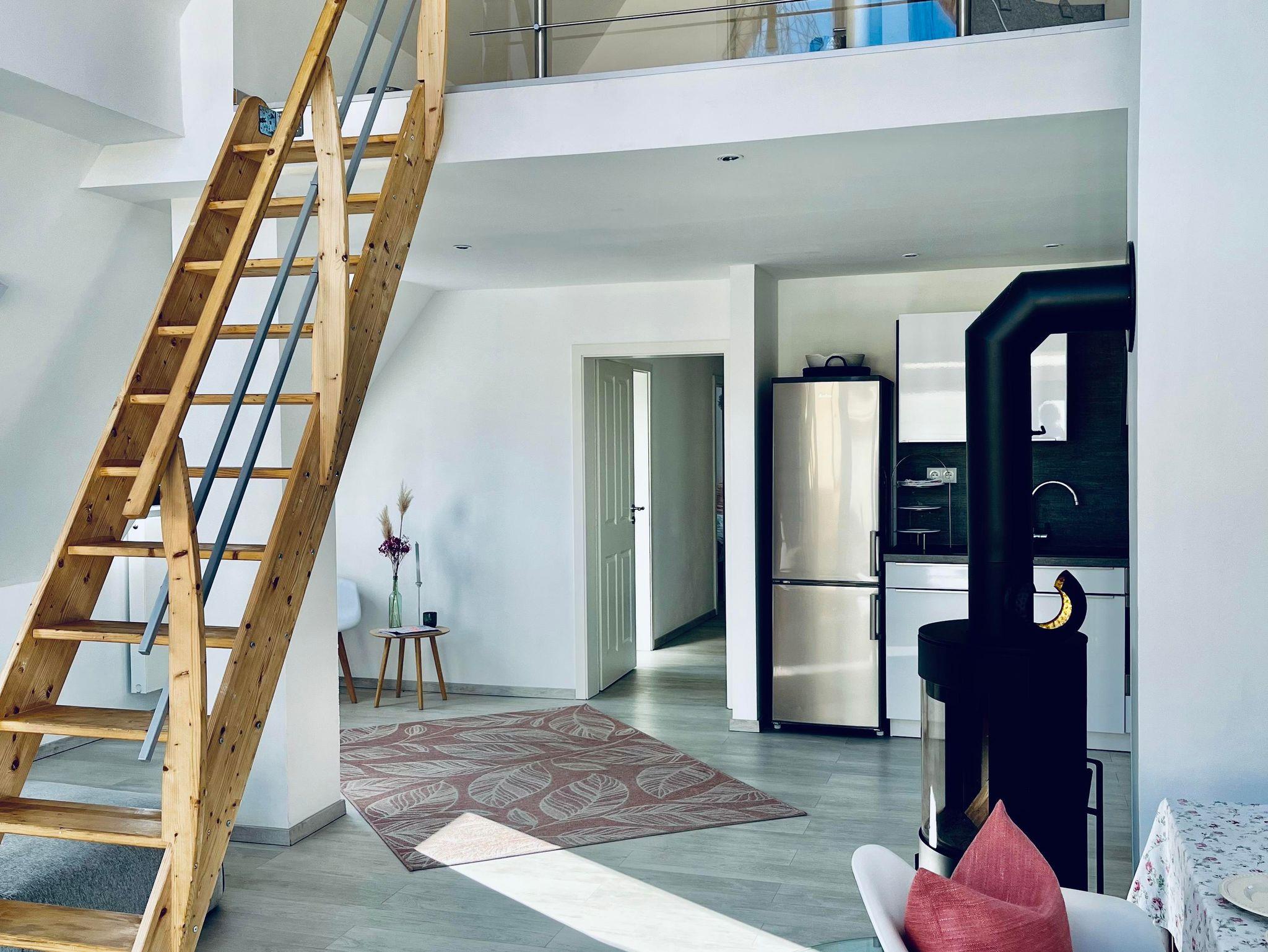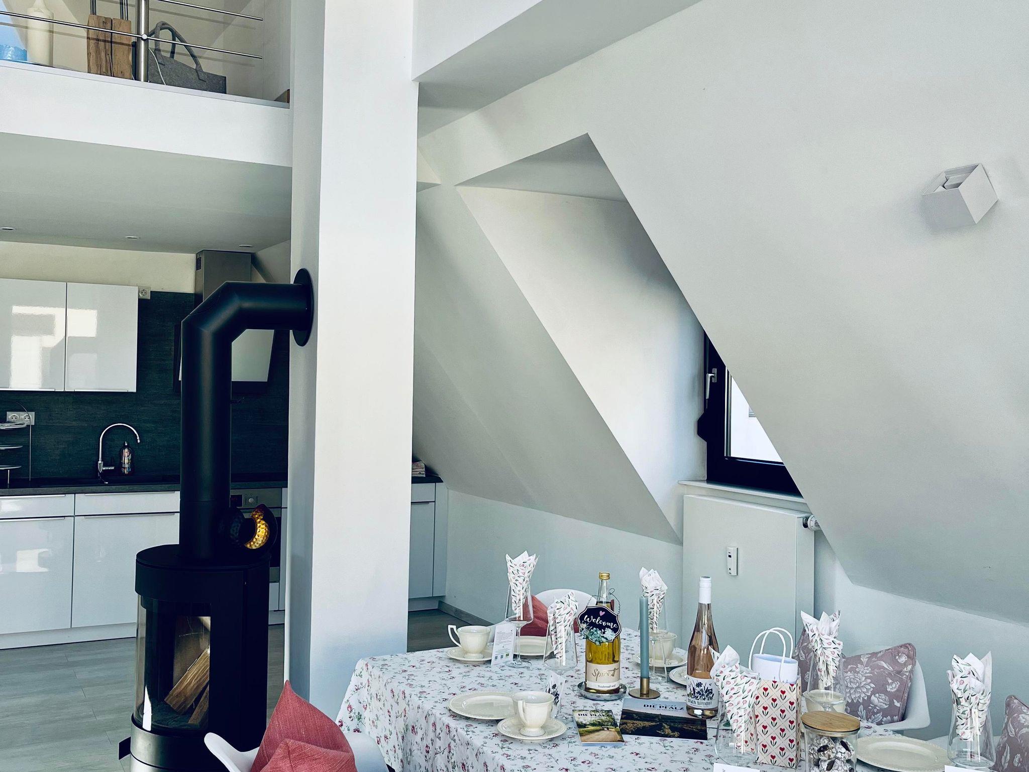 Unsere Ferienwohnung ist für 6 Personen vollumfänglich ausgestattet. Von TV und WLAN, über Waschmaschine, Geschirrspüler und Badewanne bis Ofen und Sauna genießen Sie alle Annehmlichkeiten. Im Sommer genießen Sie die Terrasse mit Lounge-Möbeln, Sonnenschirm, Hängematte und einem Weber-Gasgrill auf der Dachterrase, im Winter machen Sie es sich vor dem Ofen oder im Sauna Haus auf der Dachterrasse gemütlich. Bettwäsche und Handtücher sind selbstverständlich inbegriffen, sowie die Unterbringung Ihrer Fahrräder in der angrenzenden Scheune. Dort können Sie auch E-Bikes unkompliziert aufladen. Eine Wallbox steht zu Ihrer Verfügung. In Ihrem Kühlschrank finden Sie eine Erstaustattung an Getränken, wie Wasser und Milch vor. Eine Nespressomaschine inklusive Kapseln steht für Sie parat. Auf Wunsch stellen wir Ihnen selbstverständlich auch gerne eine Filter-Kaffeemaschine zur Verfügung. Den Toaster finden Sie im Küchenschrank. In unserer wunderbaren Dorfbäckerei können Sie nicht nur frisches Brot und Brötchen erwerben, sondern auch alle anderen Dinge des täglichen Bedarfs. Im Nachbarort finden Sie einen wunderschönen Hofladen für frisches regionales Obst und Gemüse. Im Willkommensschreiben finden Sie eine Übersicht von meinen persönlichen Empfehlungen und ich stehe Ihnen mit meiner ganzen Familie jederzeit gerne zur Verfügung und helfe Ihnen sehr gerne weiter!