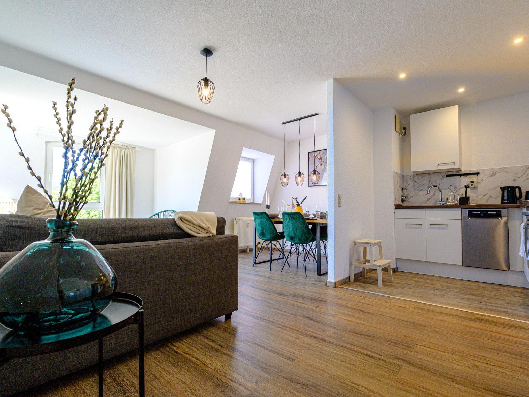 Diese stilvolle Wohnung im Dachgeschoss bietet mit einem Schlafzimmer und einem großzügigen Wohnbereich viel Platz für Familien, Paare oder Geschäftsreisende. Ruhig, aber dennoch nur 10 Min. zu Fuß in die Altstadt – perfekt für Kurz- & Langzeitaufenthalte!