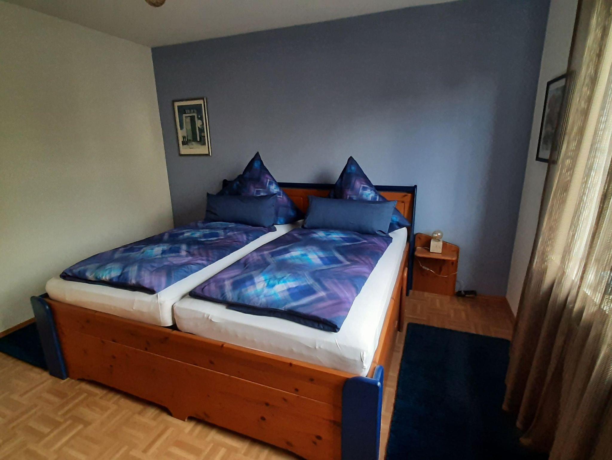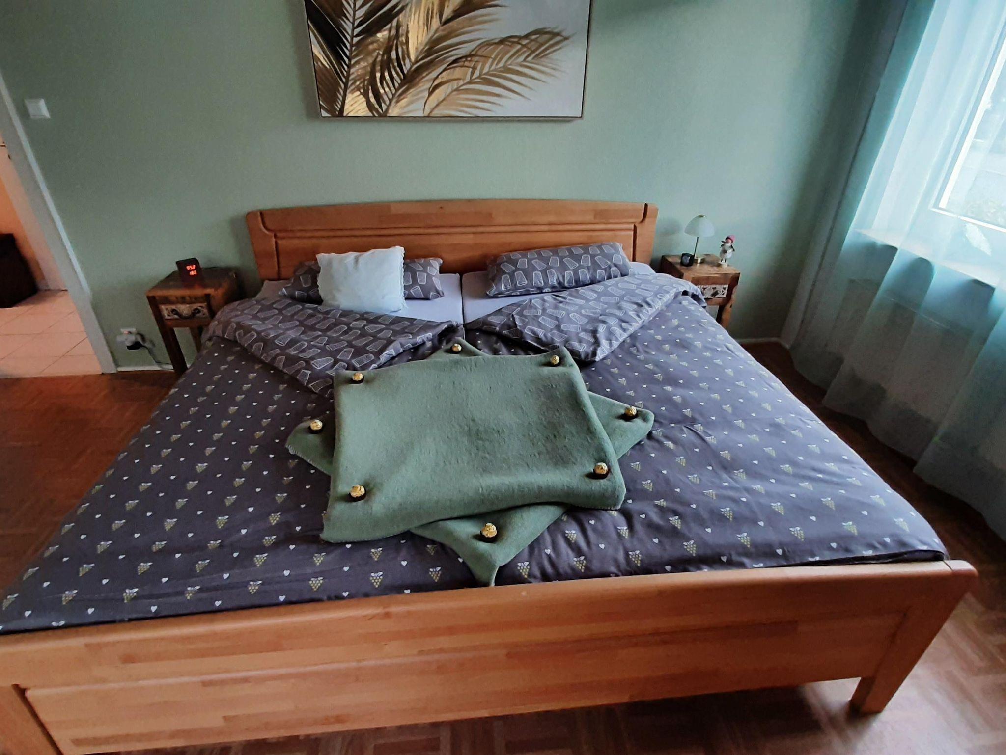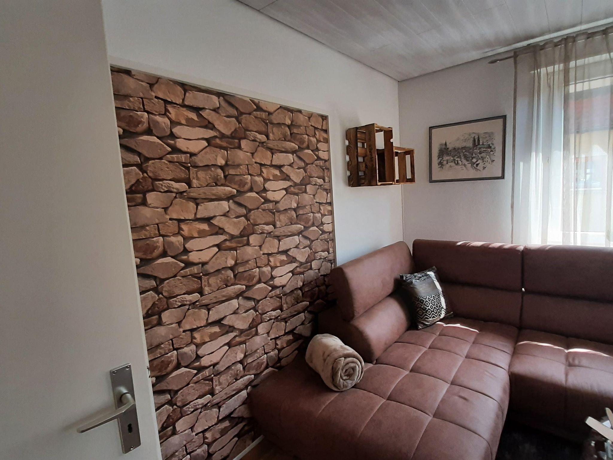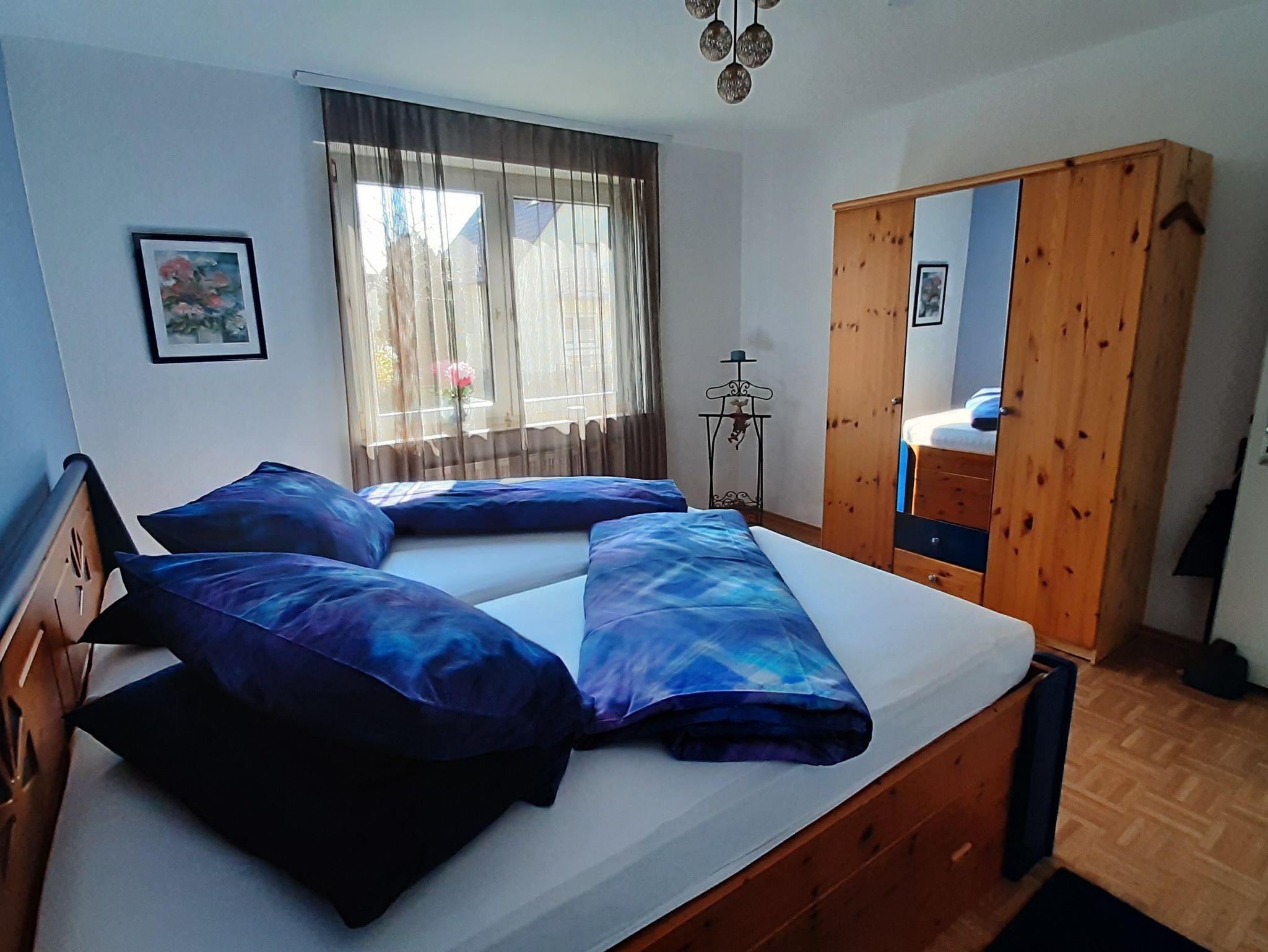 Die Wohnung bietet ihnen zwei schöne geräumige Schlafzimmer mit jeweils einem Doppelbett 2x2 Meter. Das Ambiente der gesamten Wohnung haben wir bewusst typisch pfälzisch ausgewählt, von der Bettwäsche bis zu den vielen Kleinigkeiten - sogar die Garderobe. Das Wohnzimmer verfügt über einen XXL-Fernseher mit Internet-Anschluss und eine Couch, auf der sie auch zu viert bequem Platz finden. Die Küche ist mit einer neuen Küchenzeile versehen inclusive Geschirrspüler, Kaffeemaschine, Toaster usw. Im Bad überrascht sie eine recht große Dusche. Auf dem der Straße abgewandeten Balkon können sie bei entsprechendem Wetter herrlich entspannen. Natürlich verfügt die Wohnung über kostenfreies WLAN.