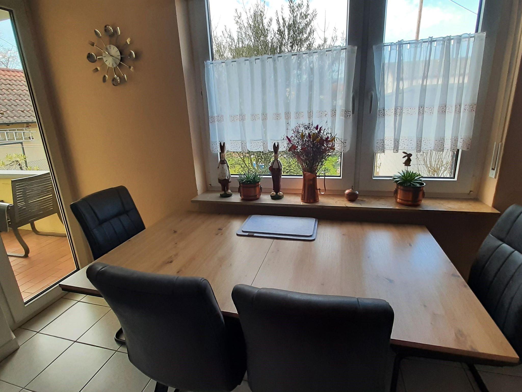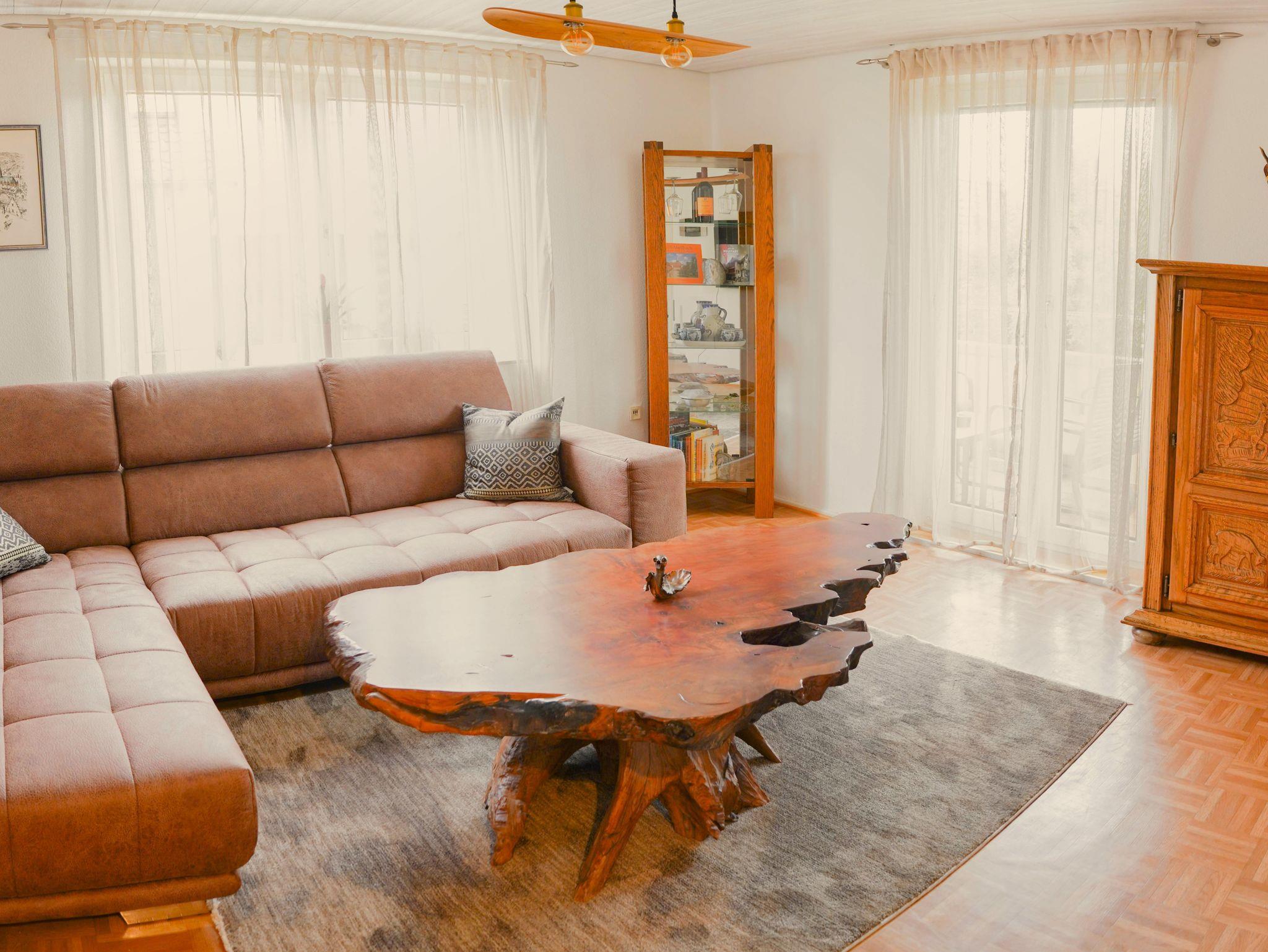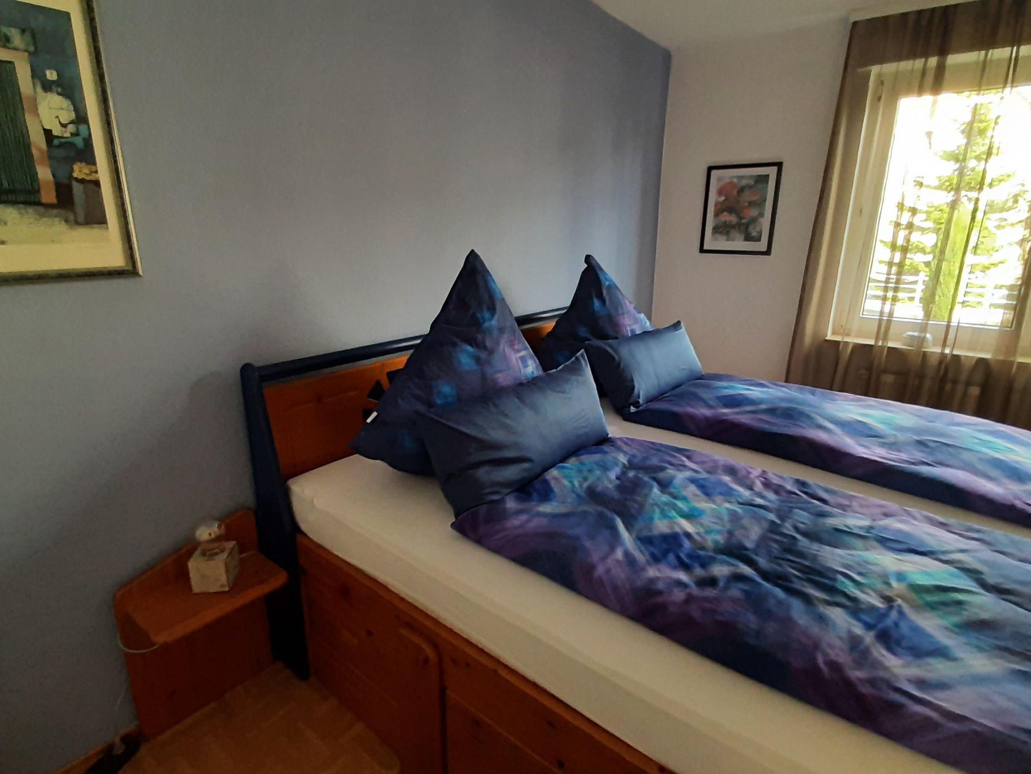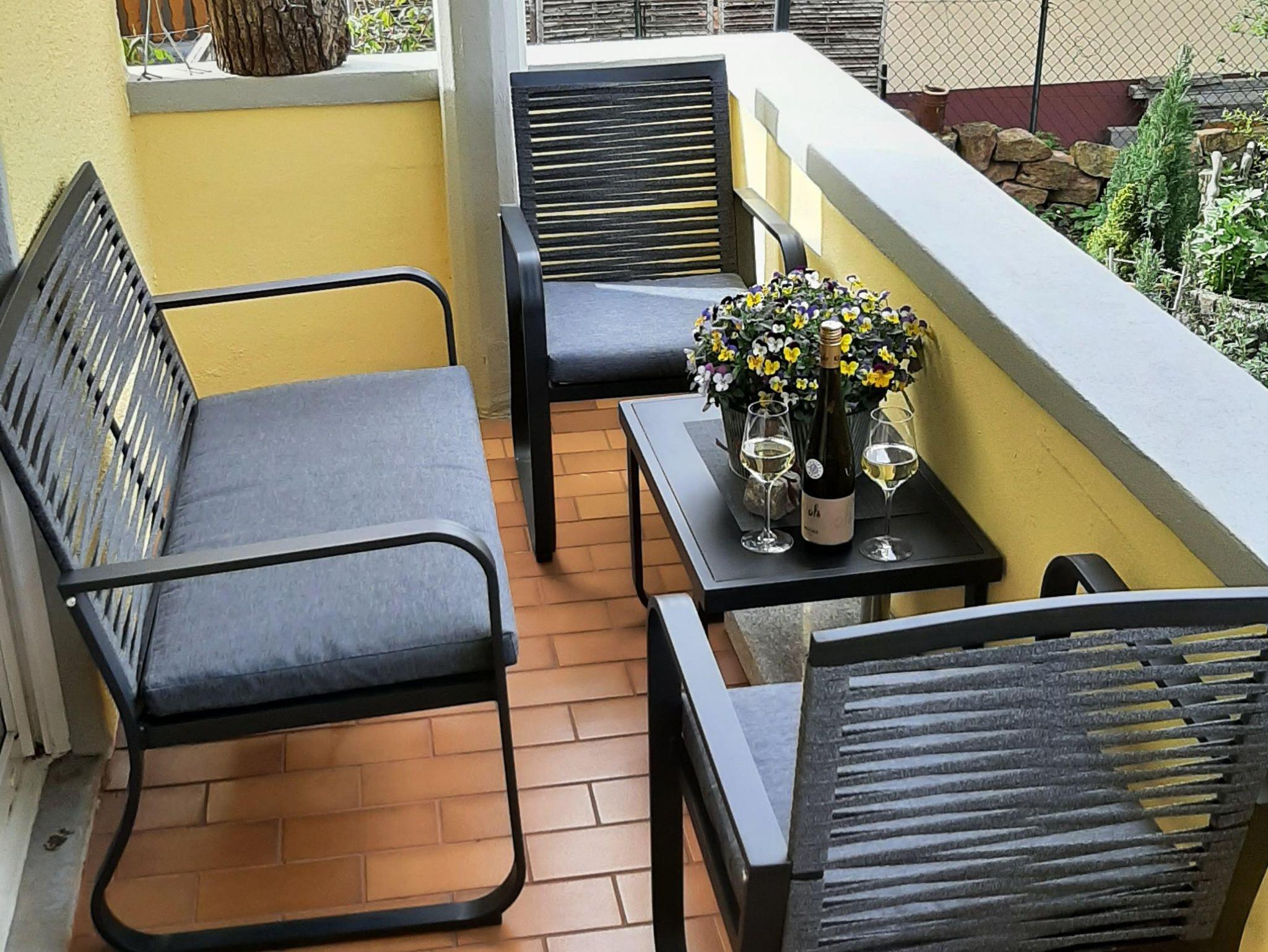 Die Wohnung bietet ihnen zwei schöne geräumige Schlafzimmer mit jeweils einem Doppelbett 2x2 Meter. Das Ambiente der gesamten Wohnung haben wir bewusst typisch pfälzisch ausgewählt, von der Bettwäsche bis zu den vielen Kleinigkeiten - sogar die Garderobe. Das Wohnzimmer verfügt über einen XXL-Fernseher mit Internet-Anschluss und eine Couch, auf der sie auch zu viert bequem Platz finden. Die Küche ist mit einer neuen Küchenzeile versehen inclusive Geschirrspüler, Kaffeemaschine, Toaster usw. Im Bad überrascht sie eine recht große Dusche. Auf dem der Straße abgewandeten Balkon können sie bei entsprechendem Wetter herrlich entspannen. Natürlich verfügt die Wohnung über kostenfreies WLAN.