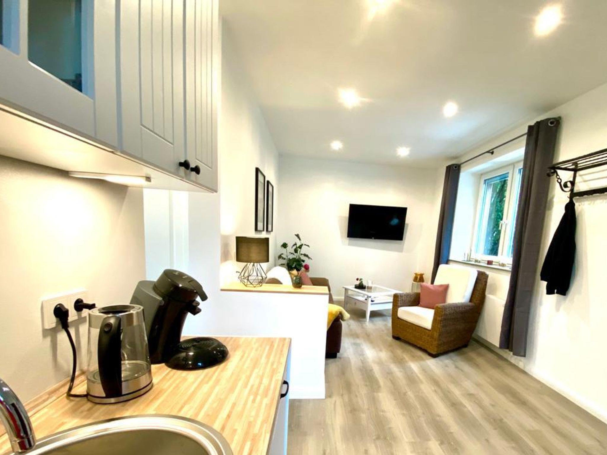 Die Unterkunft ist als Einliegerwohnung an ein 120 Jahre altes Stadthaus angegliedert und liegt in unmittelbarer Nähe zum Bahnhof, der Stadt und zu Wander- und Radwegen.