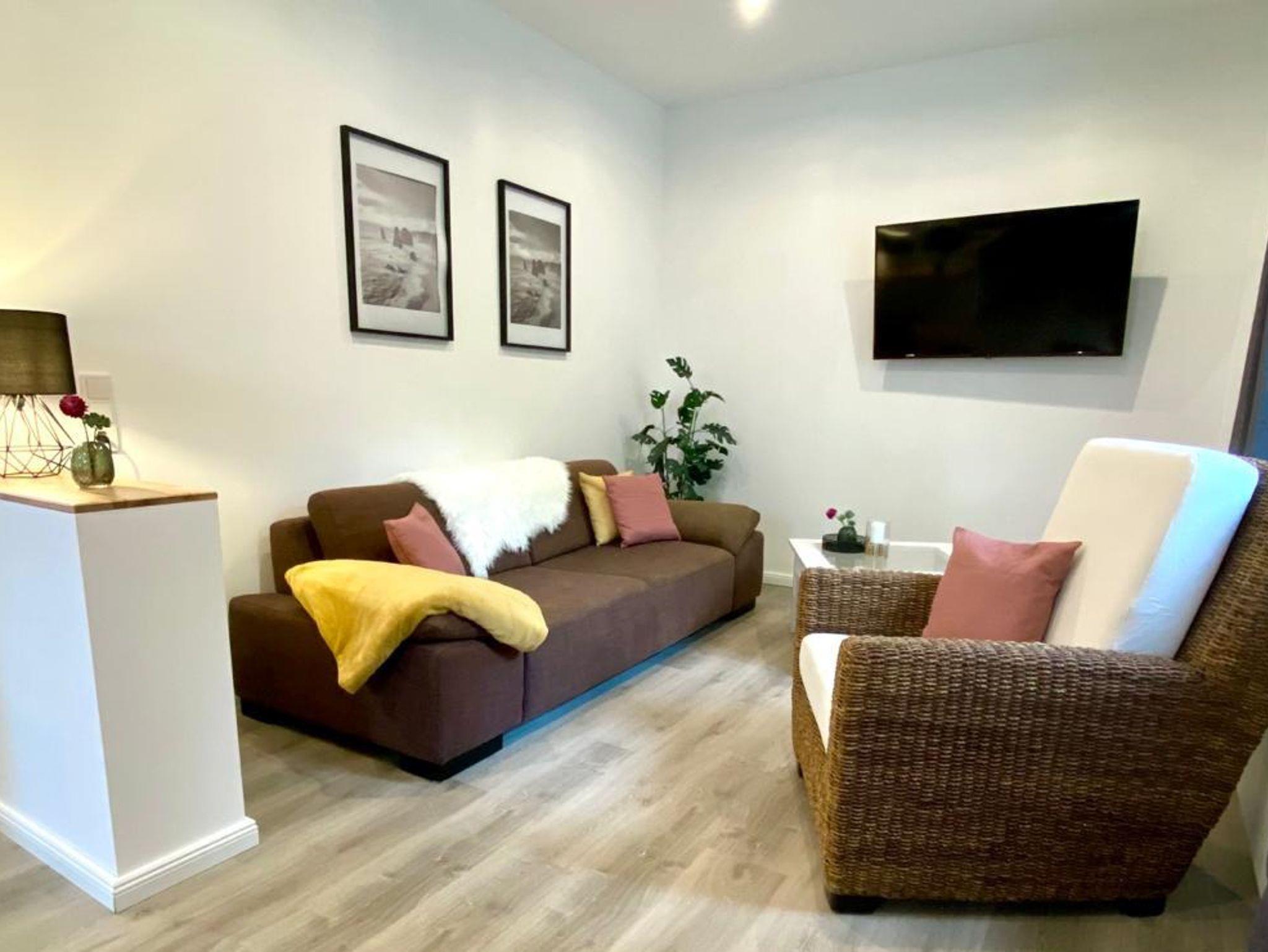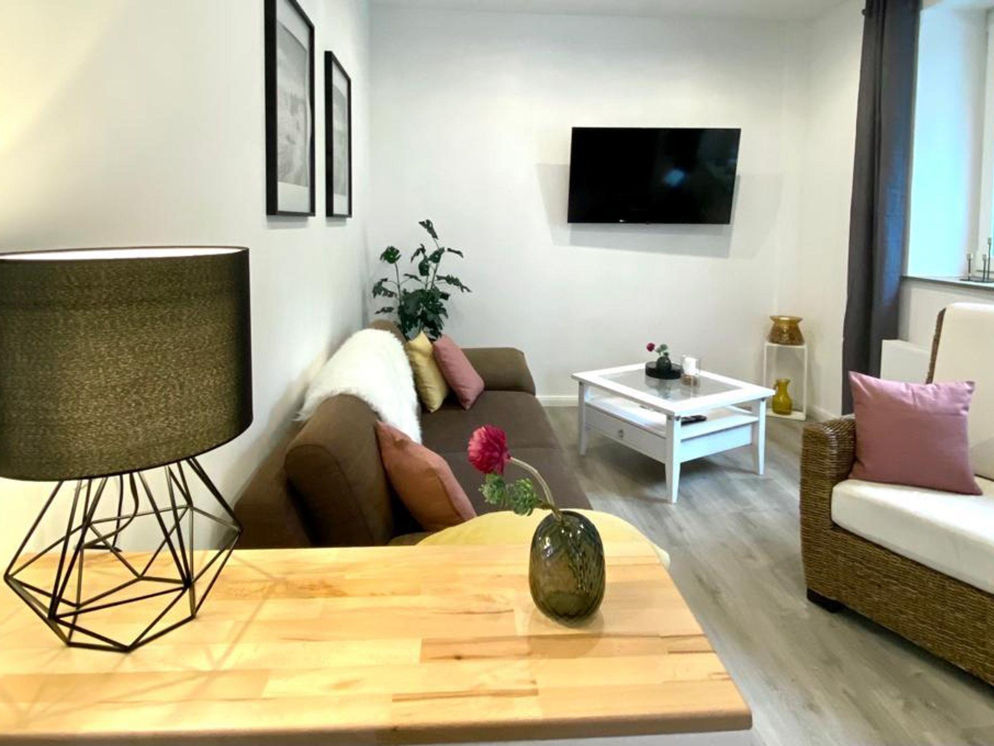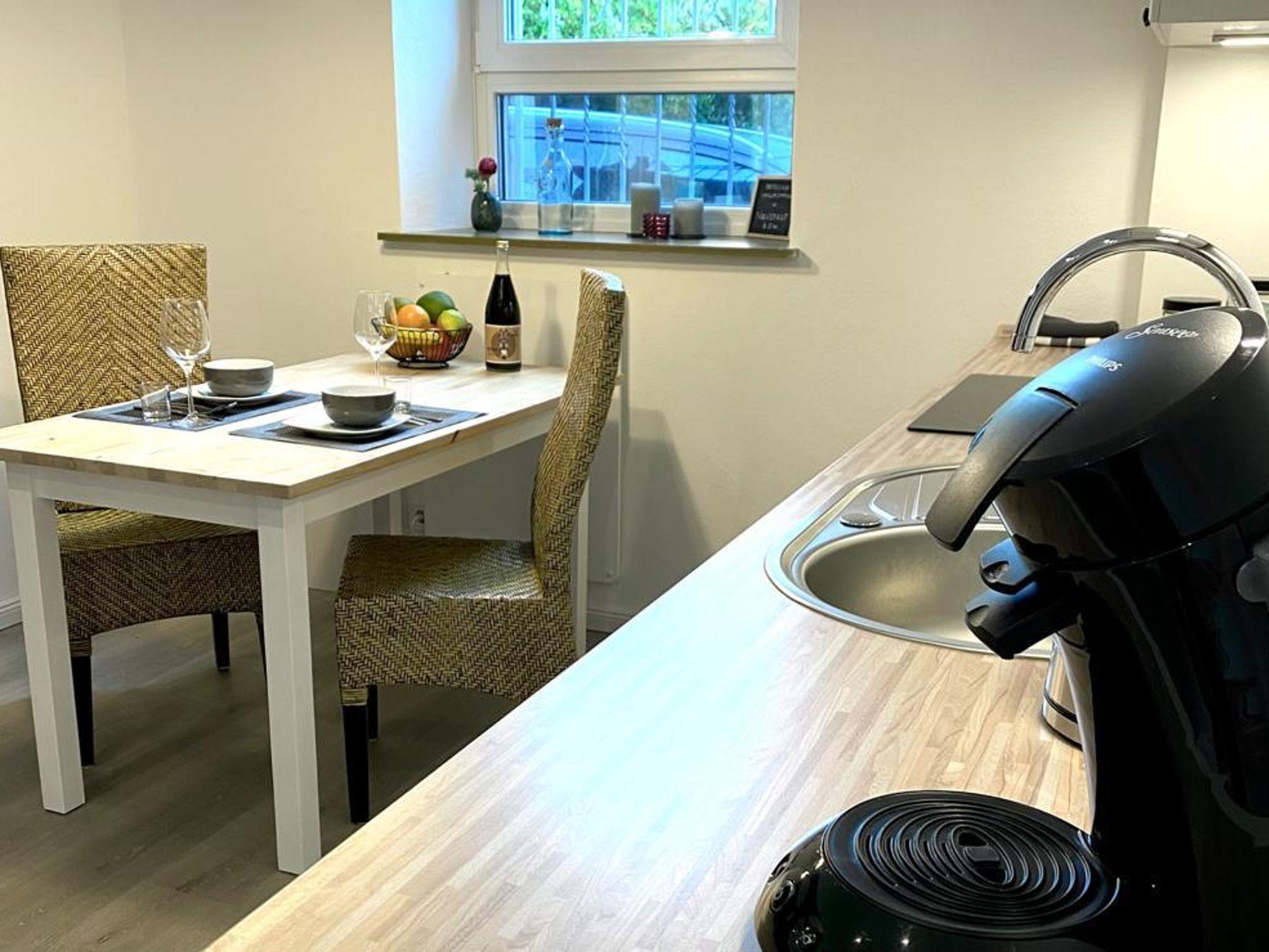Die Wohnung wurde 2021 saniert und besticht neben ihrer stilvollen Einrichtung durch ihre zentrale Lage. Ob mit der Bahn oder mit dem Auto, zu Fuß oder mit dem Fahrrad, die Wege sind kurz und versch. Weinorte, wie auch Wander- und Fahrradrouten gut erreichbar. Die Wohnung besteht aus Wohnzimmer, Schlafzimmer, Bad mit Dusche sowie voll ausgestatter Küche mit Essbereich. Auf Wunsch stehen ein Babybett sowie ein Hochstuhl kostenfrei zur Verfügung. Kostenfreies Parken in unmittelbarer Nähe.