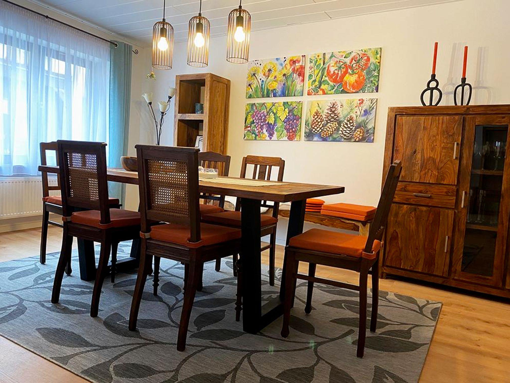 Bei unserem Ferienhaus handelt es sich um ein altes Fachwerkhaus aus dem 18. Jahrhundert, das wir mit viel Liebe in den letzten Jahren renoviert haben. Das ehemalige Bauernhof-Anwesen ist mit einem Hoftor zur Straße hin begrenzt. Über einen großzügigen Hof gelangt man ins Haus Kommod. Im hinteren Bereich des Hofes stehen die ehemaligen Stall- und Scheunengebäude, die von uns bewohnt werden. Durch das hintere Gebäude (ehemals Scheune) gelangt man in einen großen Garten.