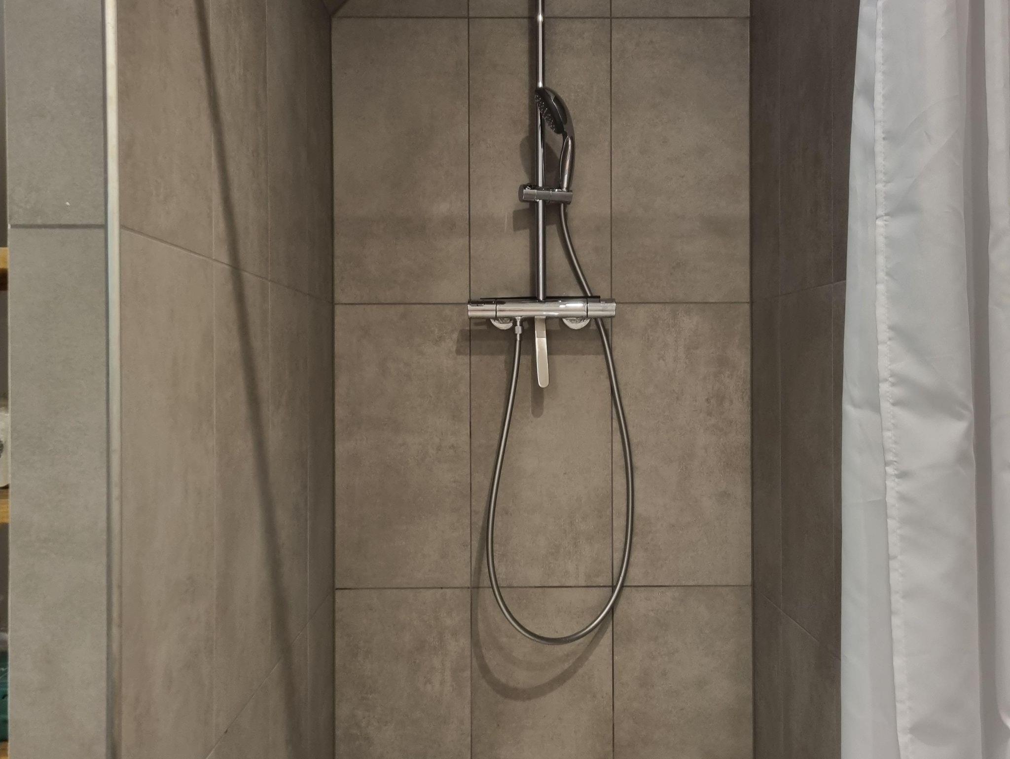• Bad mit Fußbodenheizung und Regendusche, Waschmaschine und Trockner