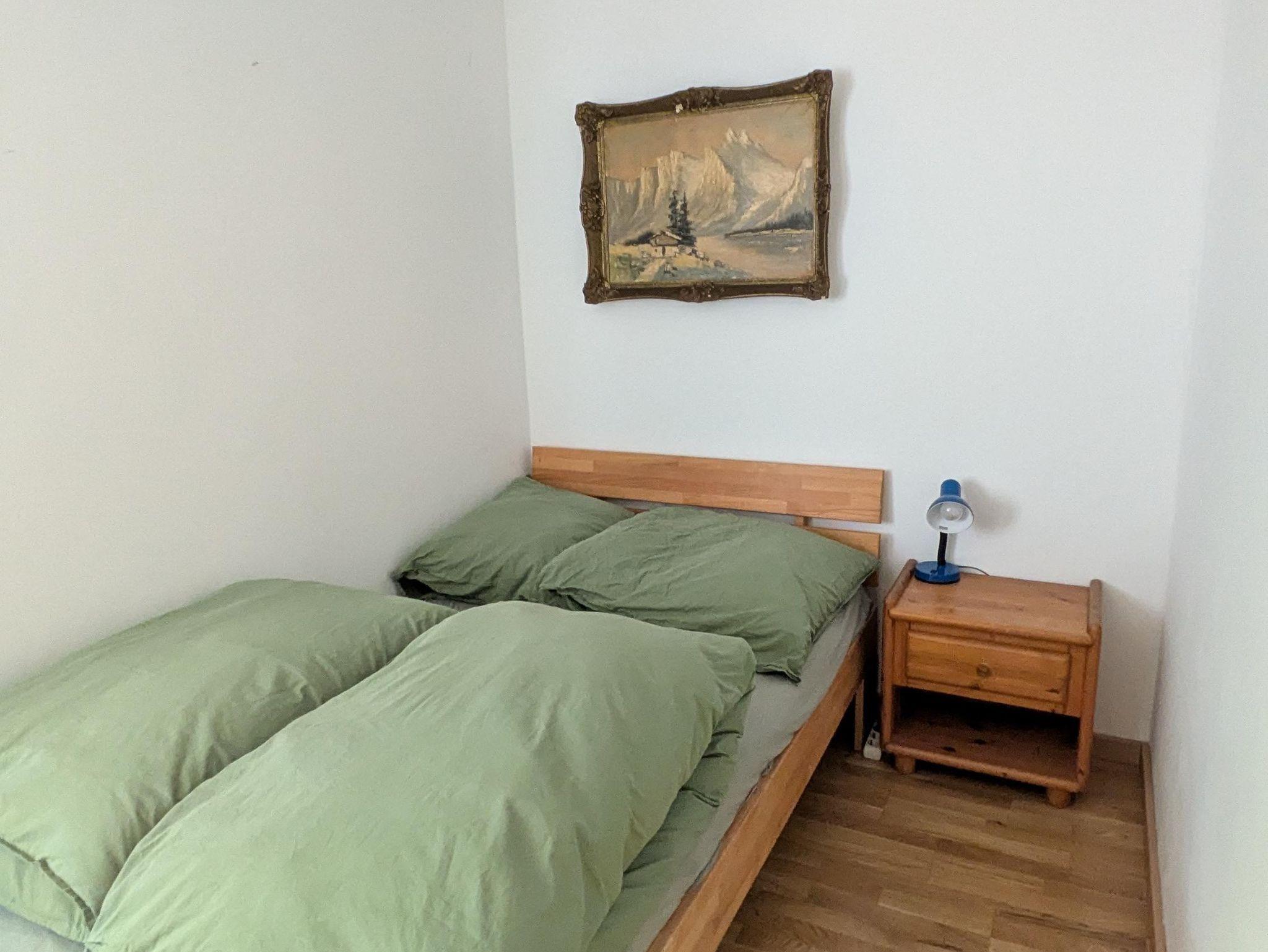 • 1 Schlafzimmer mit französischem Bett (1,20 m Breite)