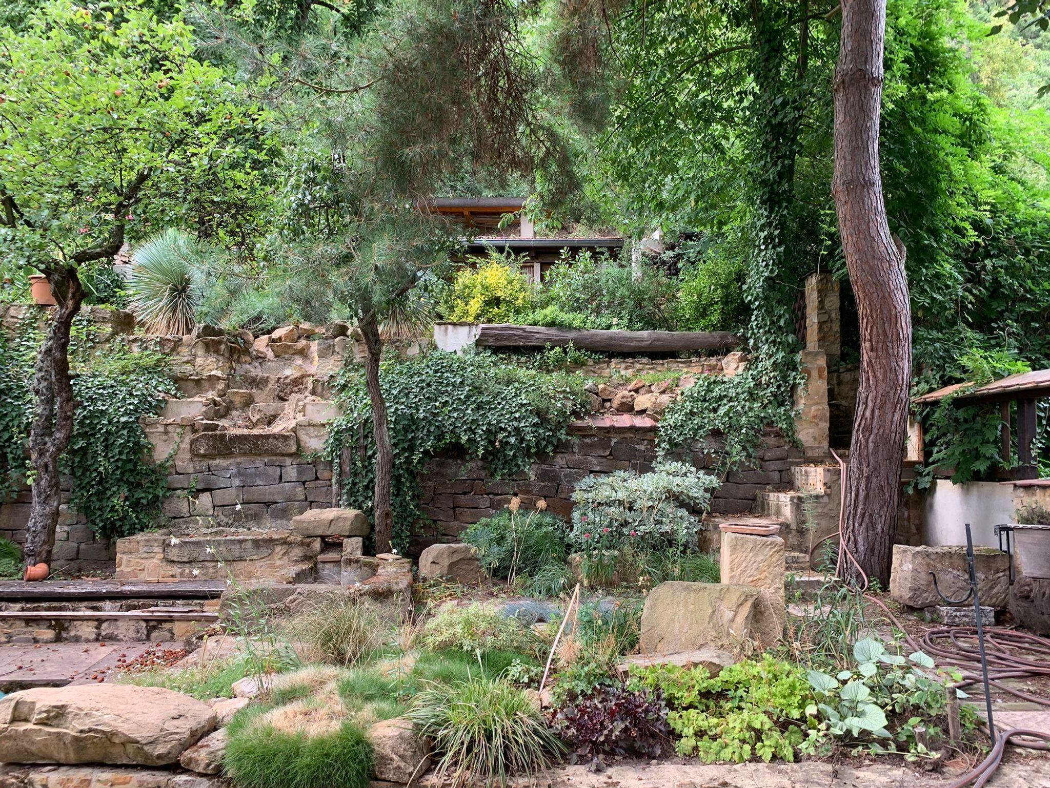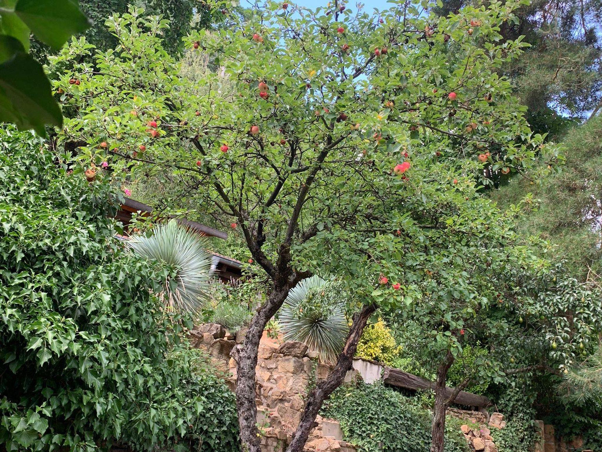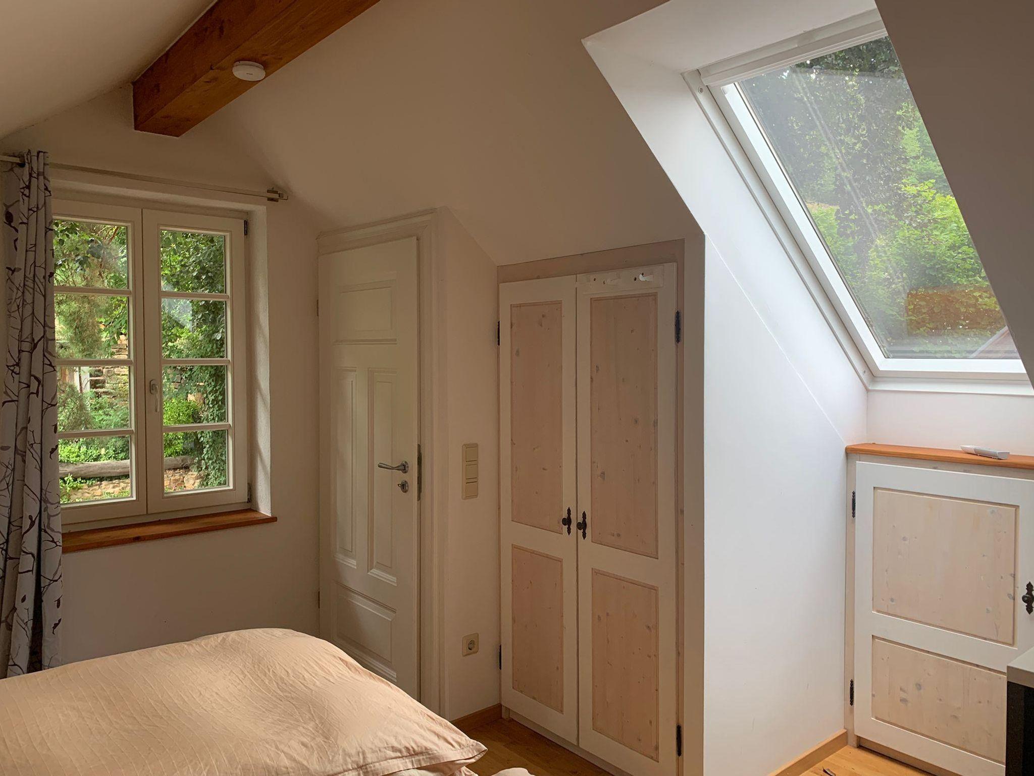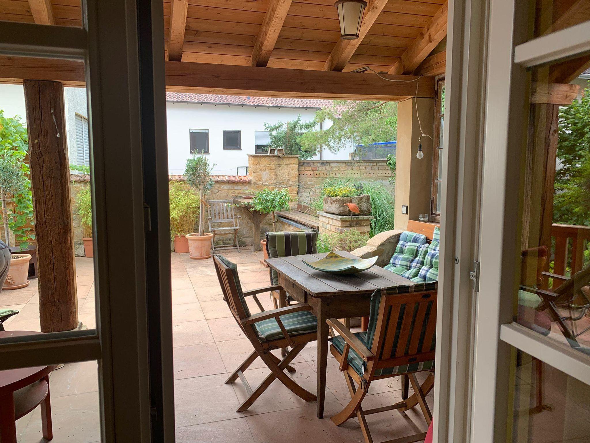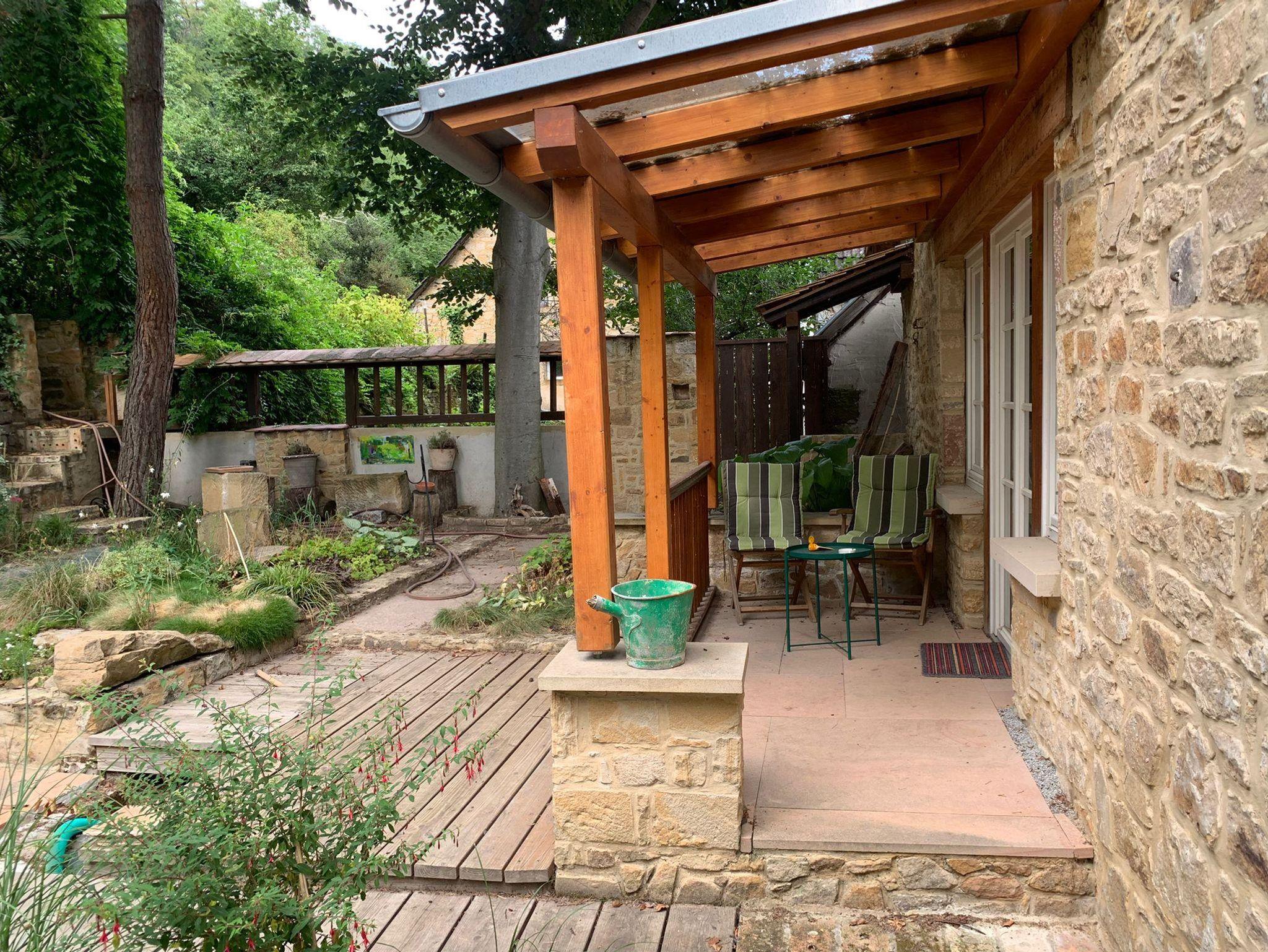 Willkommen in der Ferienwohnung Steinhauser im alten Winzerhaus. Begleiten Sie uns vom Hof (mit Parkmöglichkeit) nach oben auf die große, teilweise überdachte Terrasse, die einen tollen Blick auf den Übergang vom Garten zum Wald bietet. Genießen Sie hier einen entspannten Abend bei einem schönen Glas Pfälzer Wein. Von der Terrasse gelangen Sie in das großzügige Wohnzimmer, gestaltet in einer Kombination aus Alt und Neu, ein Konzept, das sich mehrfach wiederholt. Die großzügige Eckcouch lädt zum entspannten Beieinandersitzen oder auch zum Fernsehen ein. Vom Wohnzimmer mit Ausgang zu der zweiten, kleineren, überdachten Terrasse an der Westseite, mit Blick über den Garten in den sich daran anschließenden Wald, gelangen Sie über die geschwungene Treppe in das Schlafzimmer mit Doppelbett (auch getrennt stellbar, offene Fussteile) im Obergeschoss. Hier haben Sie aus 2 Fenstern einen schönen Ausblick auf den Pfälzerwald. Wieder zurück im Wohnzimmer, geht es weiter in die Wohnküche. Hier finden Sie neben der üblichen Küchenzeile einen Esstisch für 4 Personen und eine bequeme Couch zum gemütlichen Fernsehen. Dann geht es weiter in das Tageslichtbad mit Badewanne, Waschbecken und WC. Daneben befindet sich das 2. Schlafzimmer mit 2 Betten (auch hier offene Fussteile) und großem Einbauschrank. Bei einem kleinen Rundgang können Sie vom auf verschiedenen Ebenen angelegten Garten weite Ausblicke über die schöne Pfalz genießen.