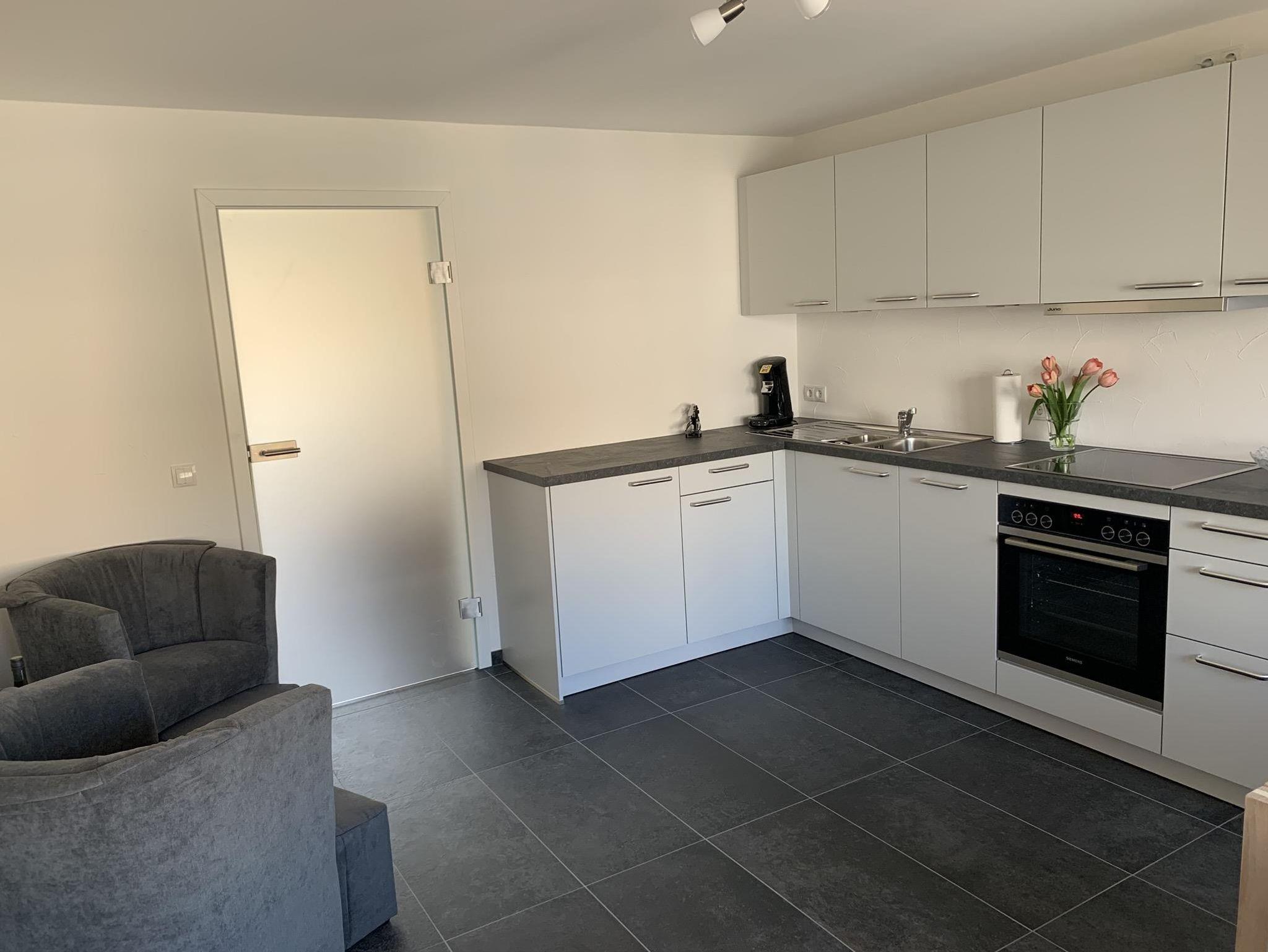 Unsere Ferienwohnung liegt im ersten OG des Hauses und hat eine Größe von 45qm. Sie besitzt ein separates, ruhiges Schlafzimmer mit Doppelbett sowie ein Bad mit Dusche. Die moderne Küche ist komplett ausgestattet. Die Wohnung hat einen direkten Zugang zur eigenen Terrasse, die zum Verweilen einlädt.