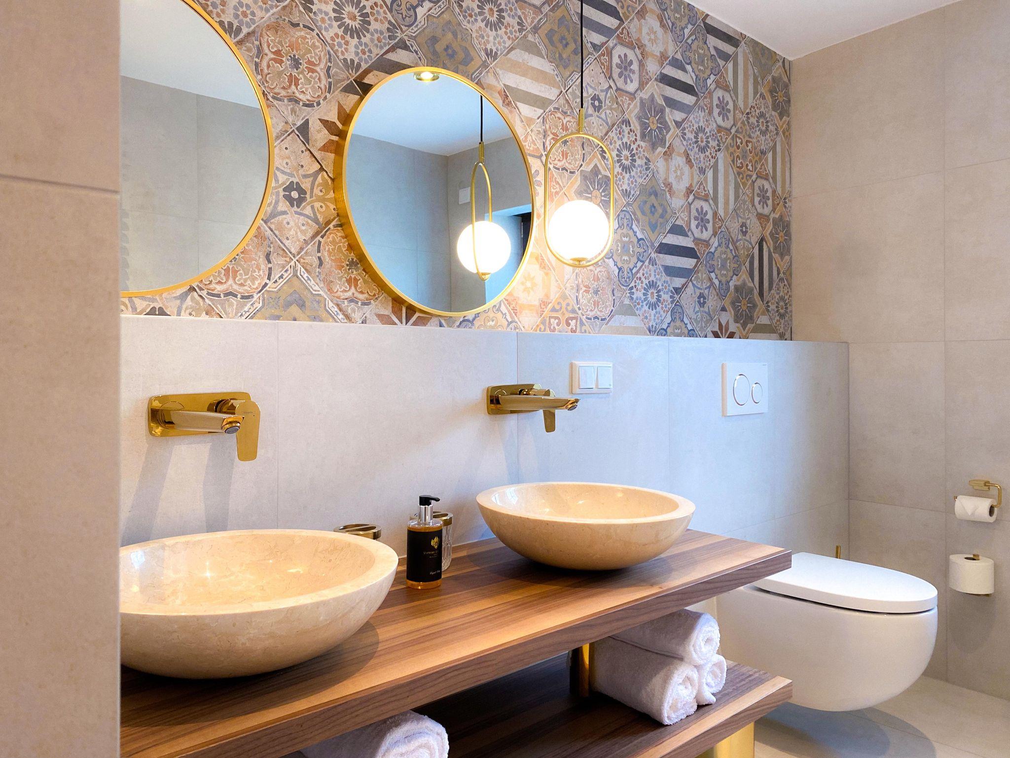 Beginnen Sie dann gut ausgeschlafen Ihren Tag bei einer erfrischenden Regendusche in einem großzügigen und mediterranen Bad, ausgestattet mit Fliesen aus dem Süden. Wir freuen uns auf Ihren Besuch!