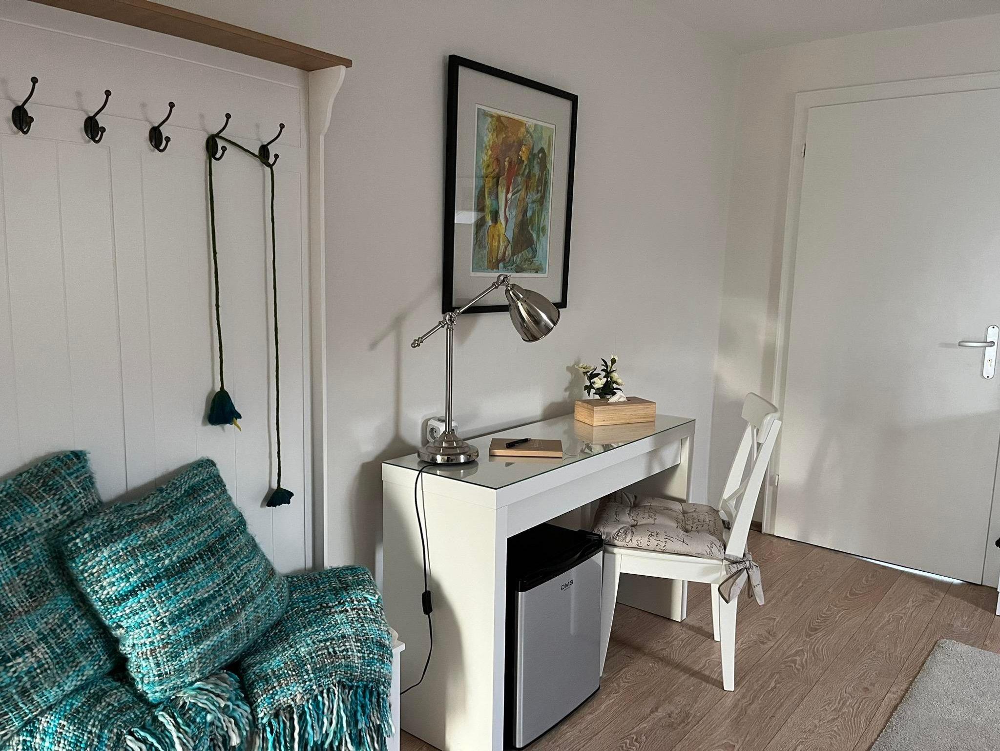 Unser B&B Nova Civitas besteht aus eine Minisuite mit separaten Sitzecke mit Satellit Fernseher, kleiner Kühlschrank, kleiner Schreibtisch und ein Schlafbereich mit King Size Bed und zusätzliche Sitzecke. Das on suite Badezimmer hat eine begehbare Douche und eine Toilette. Ohne Kuche!