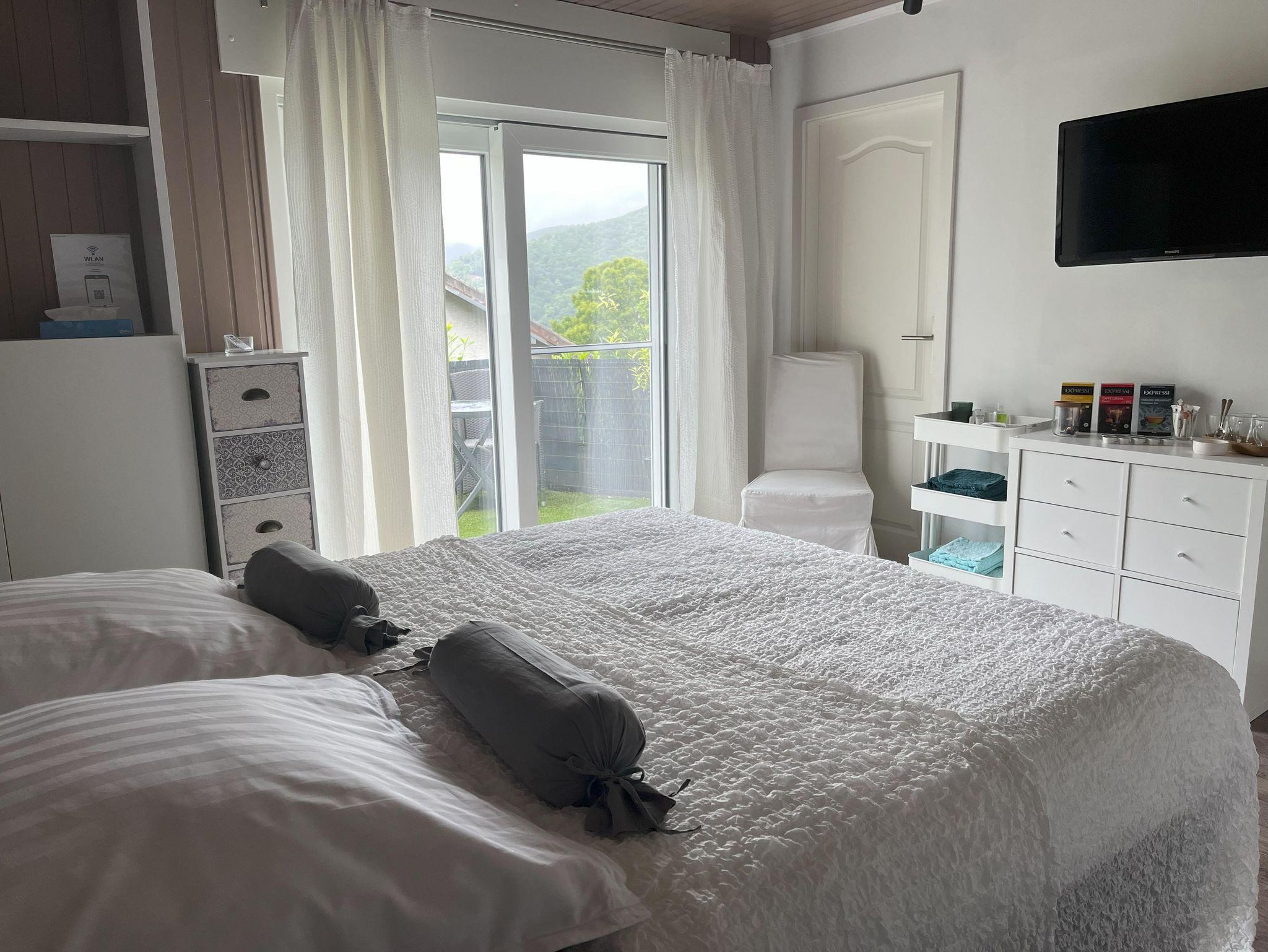 Ein extra Schlafzimmer (ohne eigenes Bad) kan damit gebucht werden. Diesen Schlafzimmer hat ein Queen Size bed, eigens Satellit Fernseher und ein Balkon.