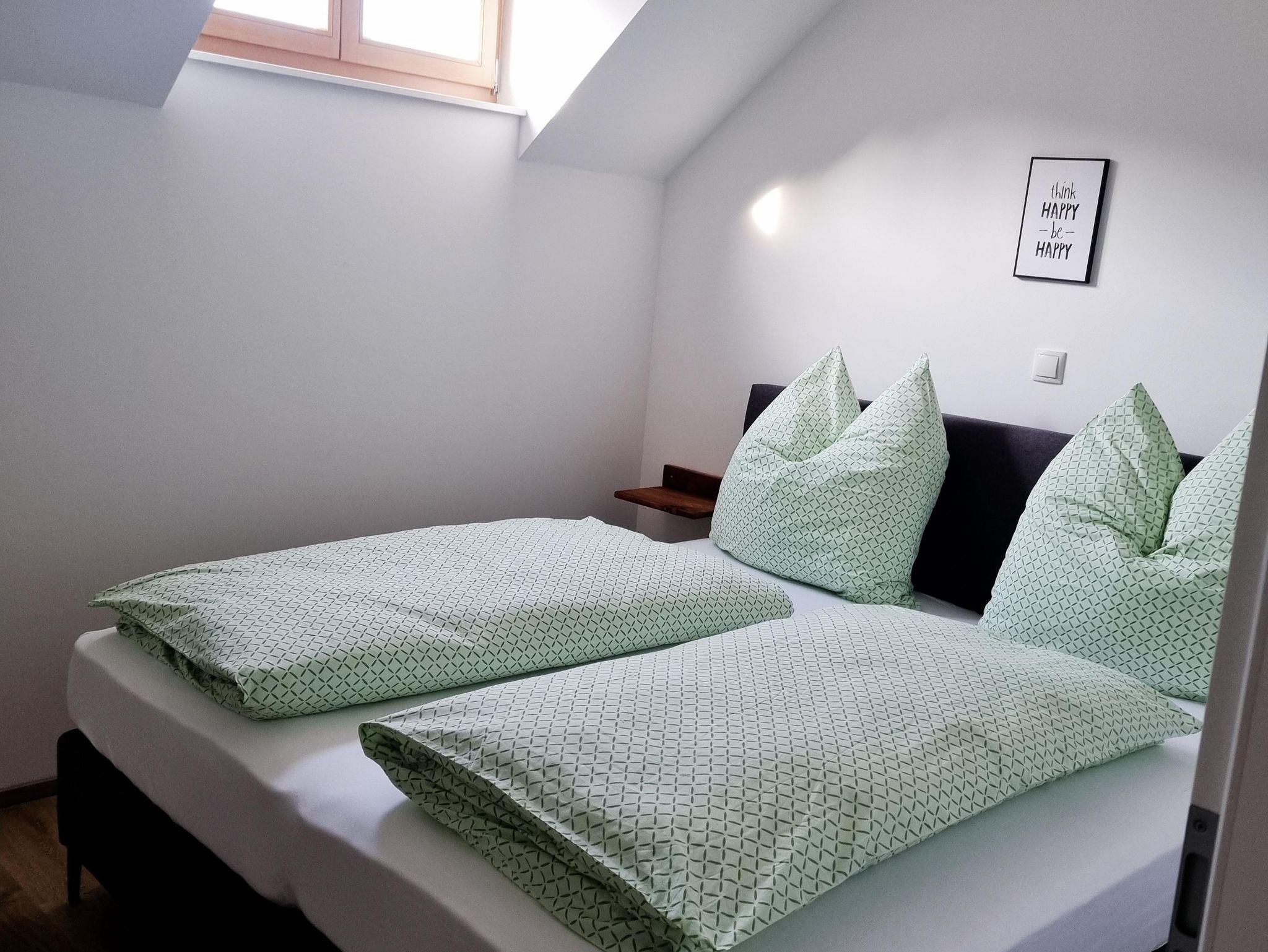 Unsere neu ausgebaute (2022) Fewo mit 2 SZ befindet sich im DG des Hauses. Die SZ sind mit Boxspringbetten ausgestattet (Betten sind bezogen.