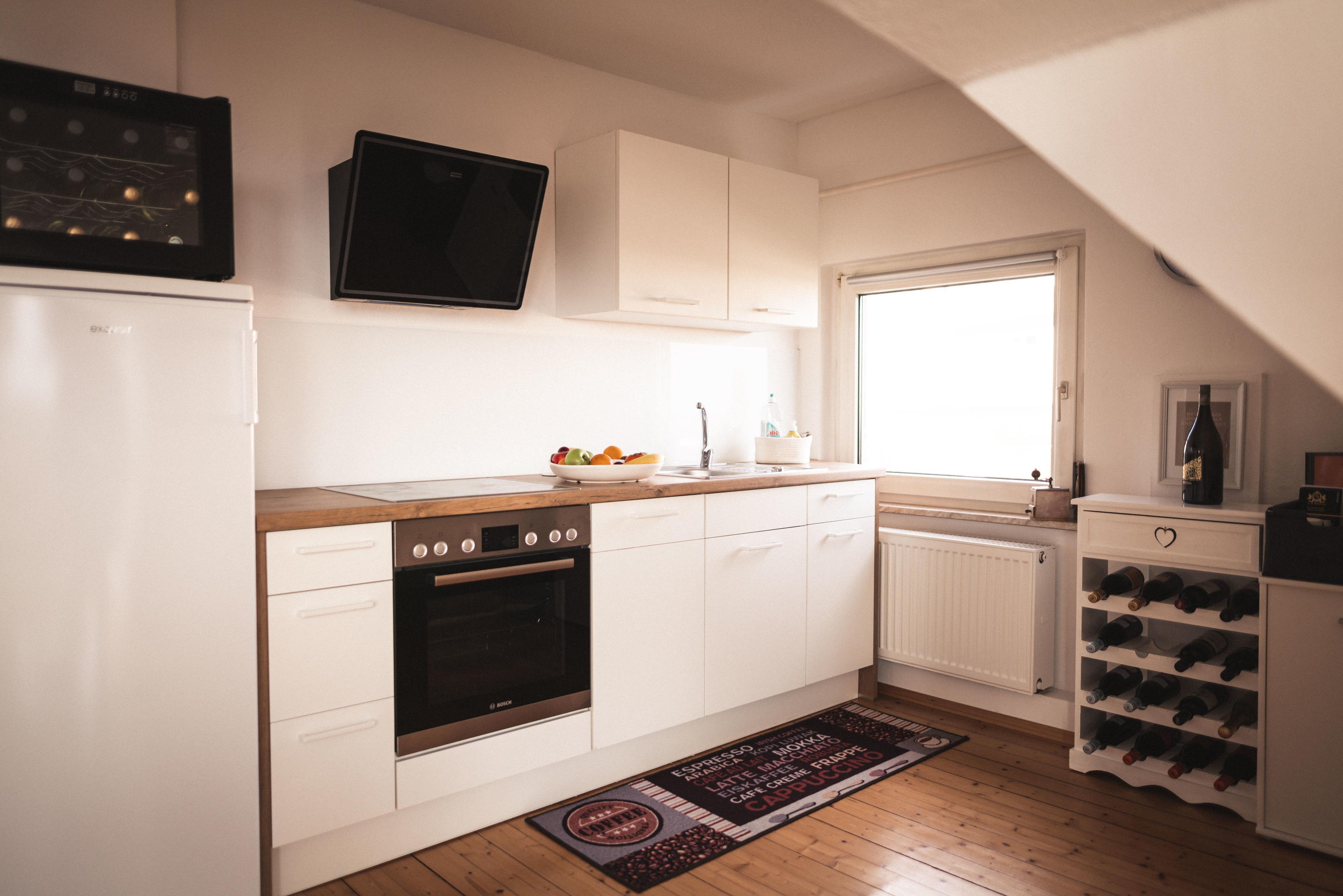 Im DG lädt eine voll ausgestattete Küche mit Spülmaschine, Herd mit Cerankochfeld, ein Wohnzimmer mit Flach-TV, eine Ess- und Leseecke zum Verweilen ein.