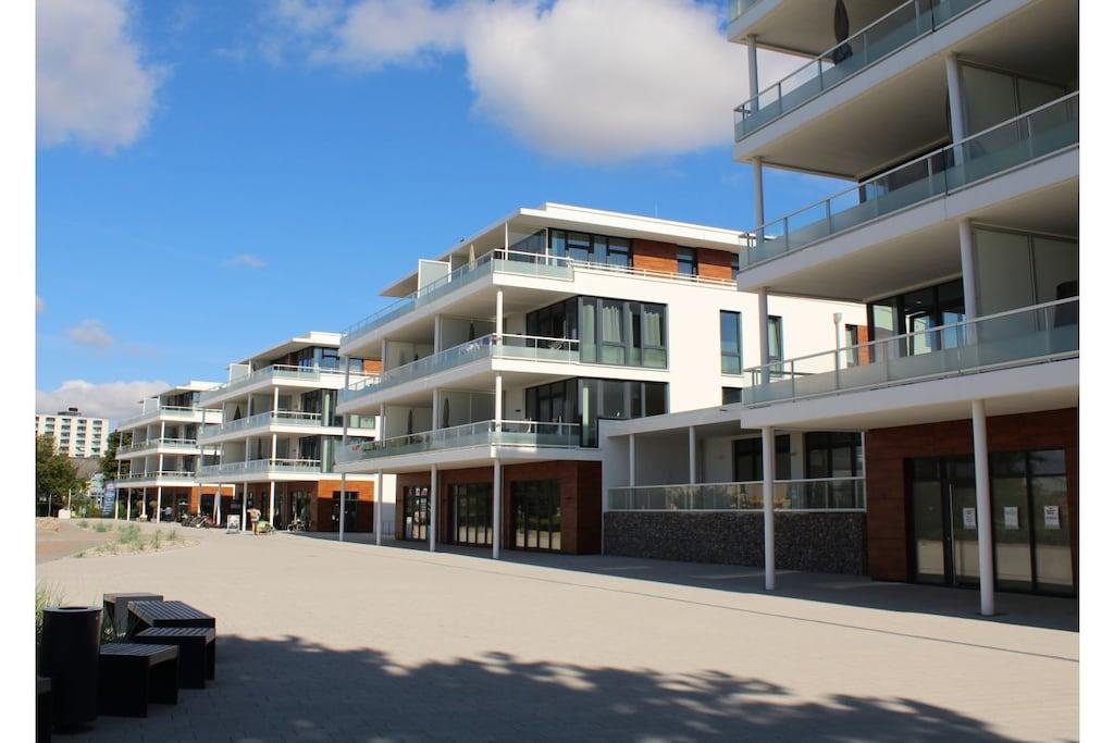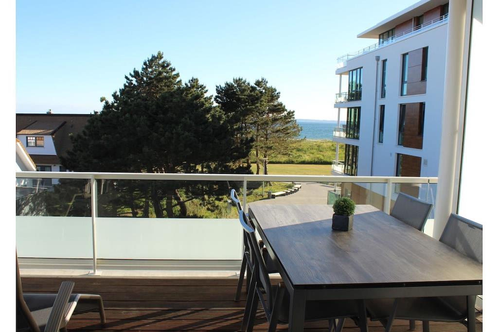 Die Ferienwohnungsanlage liegt direkt am Südstrand und hat dadurch eine ganz besondere Lage an der deutschen Ostseeküste. Die Wohnung liegt in der zweiten Reihe, im 2. OG. Durch die versetzte Bauweise haben Sie einen fantastischen Blick direkt auf die Ostsee. Die Wohnung ist mit allem erdenklichen Komfort ausgestattet. Beide Schlafzimmer verfügen über ein eigenes Bad. Ein Bad ist mit einer Dusche, das andere mit einer Badewanne ausgestattet. Der zur Wohnung gehörende Parkplatz befindet sich direkt in der verbindenden Garage. Von dort erreichen Sie auf kürzesten Weg den Aufzug, der Sie direkt in die Wohnung bringt. Ein Raum für Ihre mitgebrachten Fahrräder ist selbstverständlich auch vorhanden.