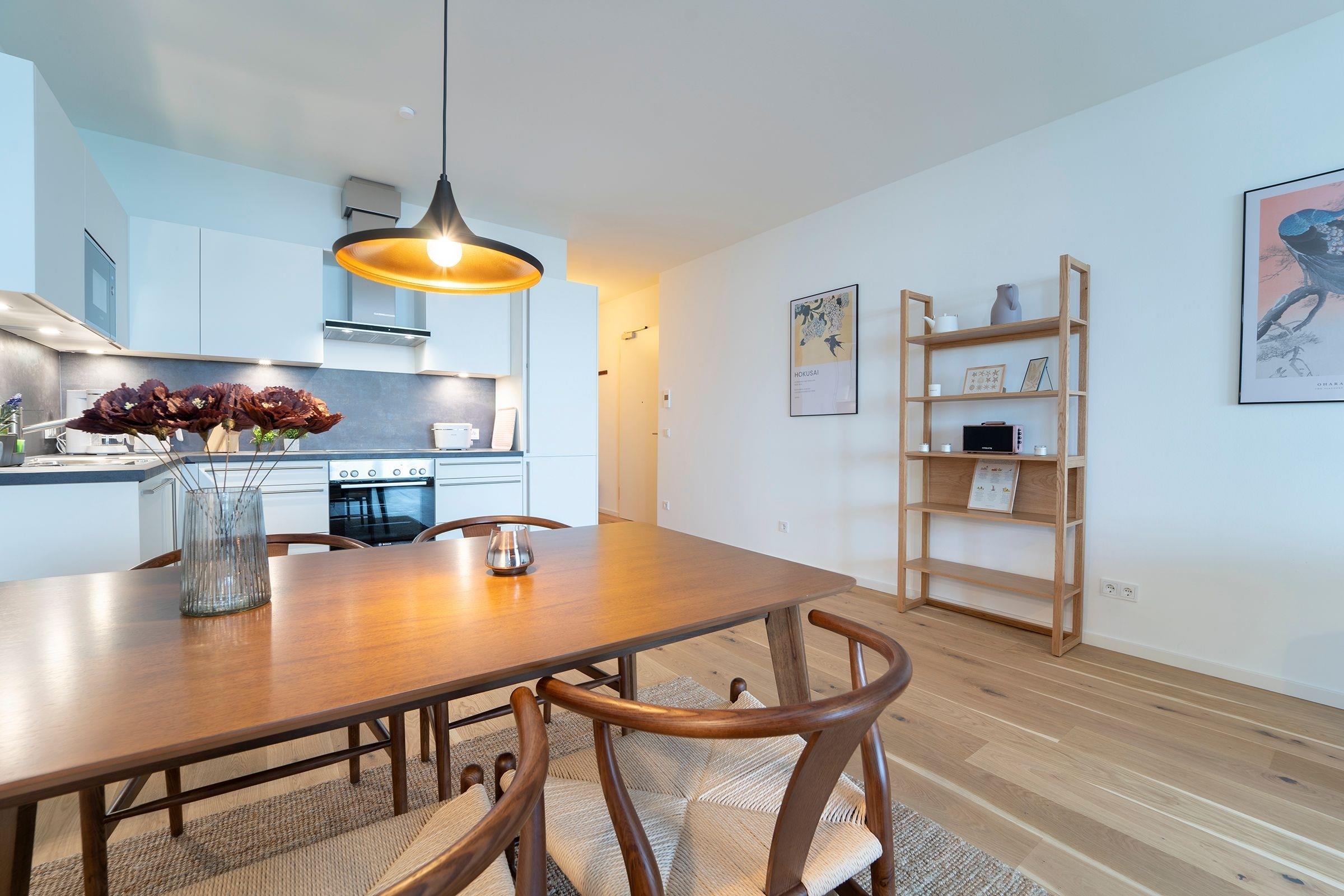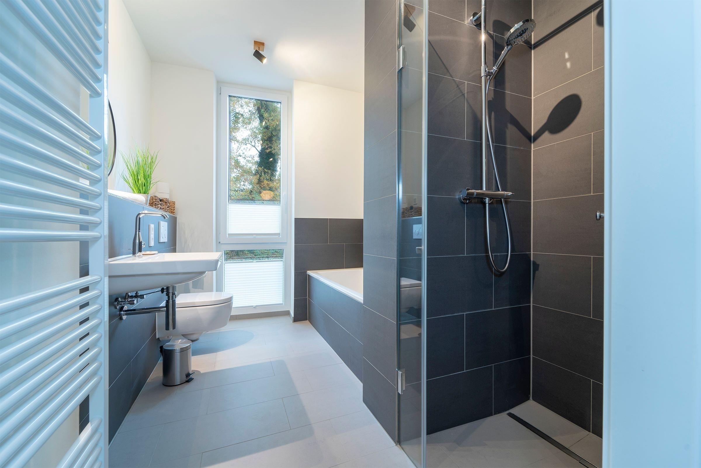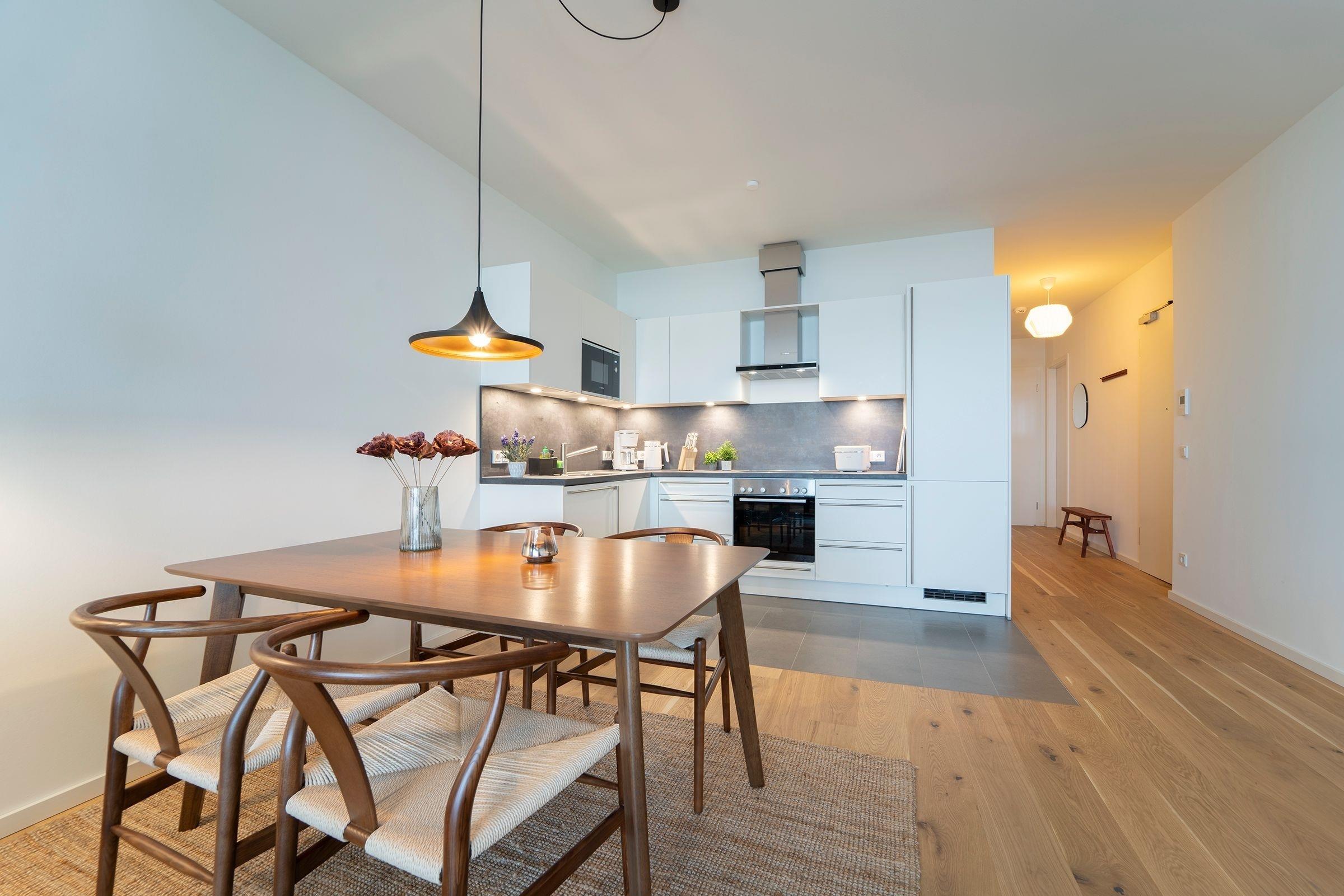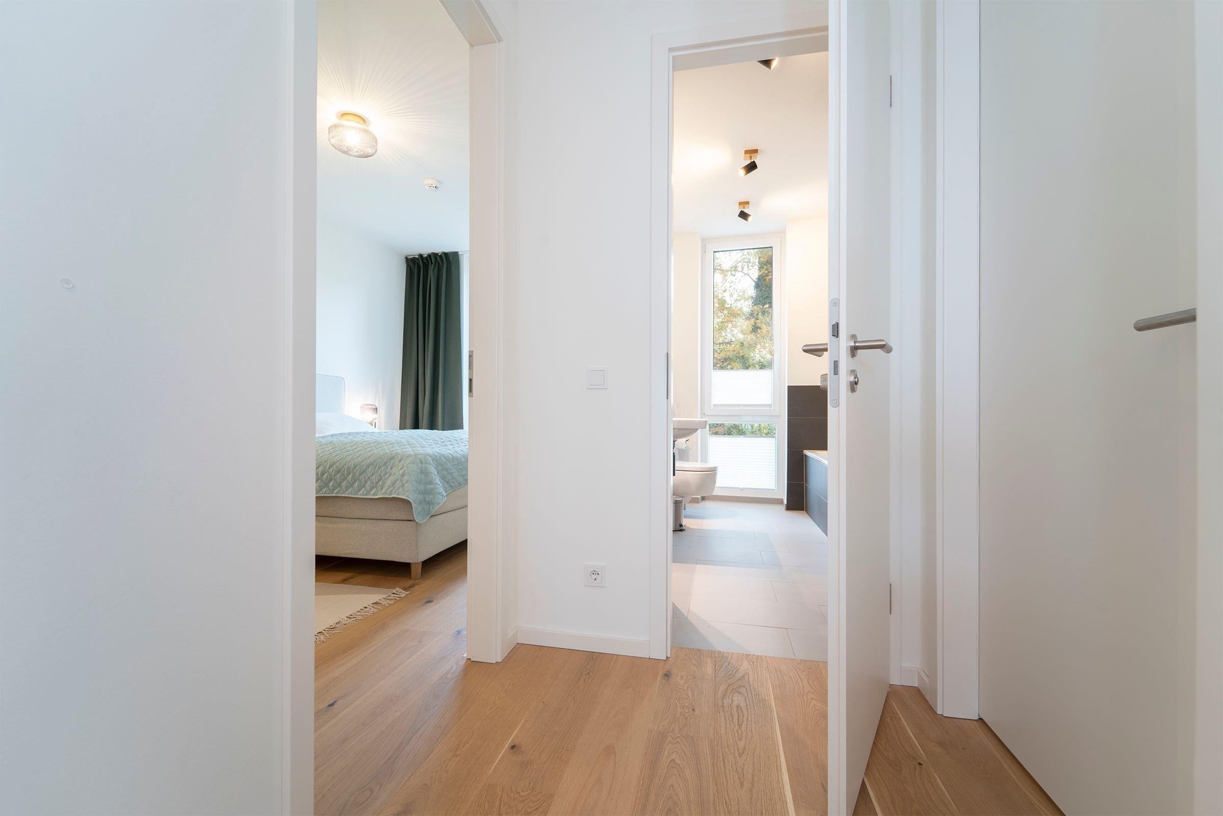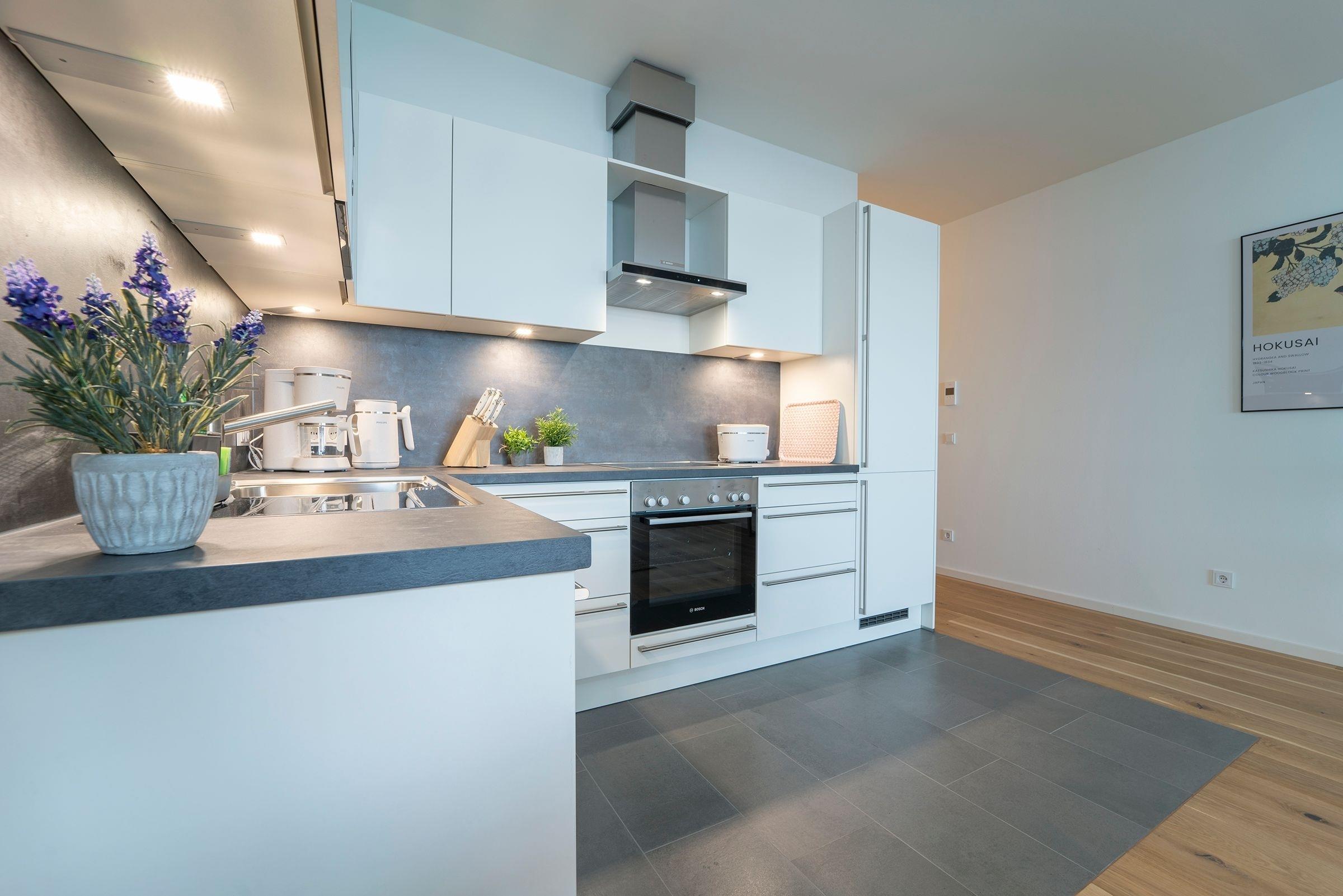 Hier werden Sie sich wohlfühlen! Modern und hell begrüßt Sie das Herzstück der Wohnung - der große, offene Wohnraum mit integrierter, voll ausgestatteter Küche lädt Sie zu einer Auszeit ein. Vom überdachten, möblierten Balkon in Südausrichtung haben Sie freie Sicht auf die Ostsee. Schlafen und entspannen Sie sich im separaten Schlafzimmer mit bequemem Boxspringbett (2x 90x200cm) und Kleiderschrank. Ein zweites Schlafzimmer mit zwei Einzelbetten (je 90x200 cm) sorgt ebenfalls für ruhige Nächte. Außerdem sorgen gleich zwei hochwertig ausgestattete Badezimmer mit bodengleicher Dusche für Entschleunigung am Morgen - eines davon sogar mit Badewanne.