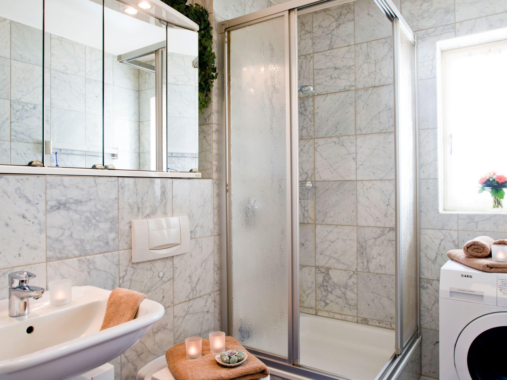 The attic apartment of around 50m² has a light living and dining room with a generous sofa, a coffee table, a smart TV with a satellite receiver and DVBT connection, as well as a dining table. The dining corner also has a stereo system and a CD player. The adjoining, high-quality built-in kitchen is separated from the living and dining room by an archway and is equipped with an oven, a ceramic hob, a fridge and freezer, a dishwasher, filter coffee machine, microwave, toaster and kettle, therefore providing everything you need. The marble bathroom is fitted with a shower, a toilet, a washbasin, a hairdryer and a window. The bedroom is furnished with a large double bed (180cm wide) and a cupboard wall with plenty of storage space. The combined washing machine and dryer in the shower room can be used free of charge, along with the wireless Internet connection. The heating can be regulated conveniently and easily for individual rooms, with a display.