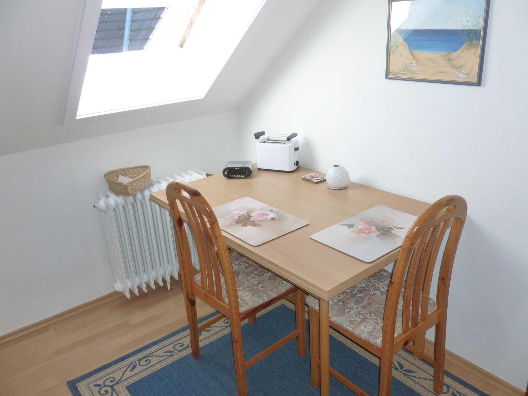 Unsere Ferienwohnung im Obergeschoss ist mit Liebe zum Detail eingerichtet. Das Appartement ist geeignet für zwei Erwachsene mit einem Kind oder für drei Erwachsene.