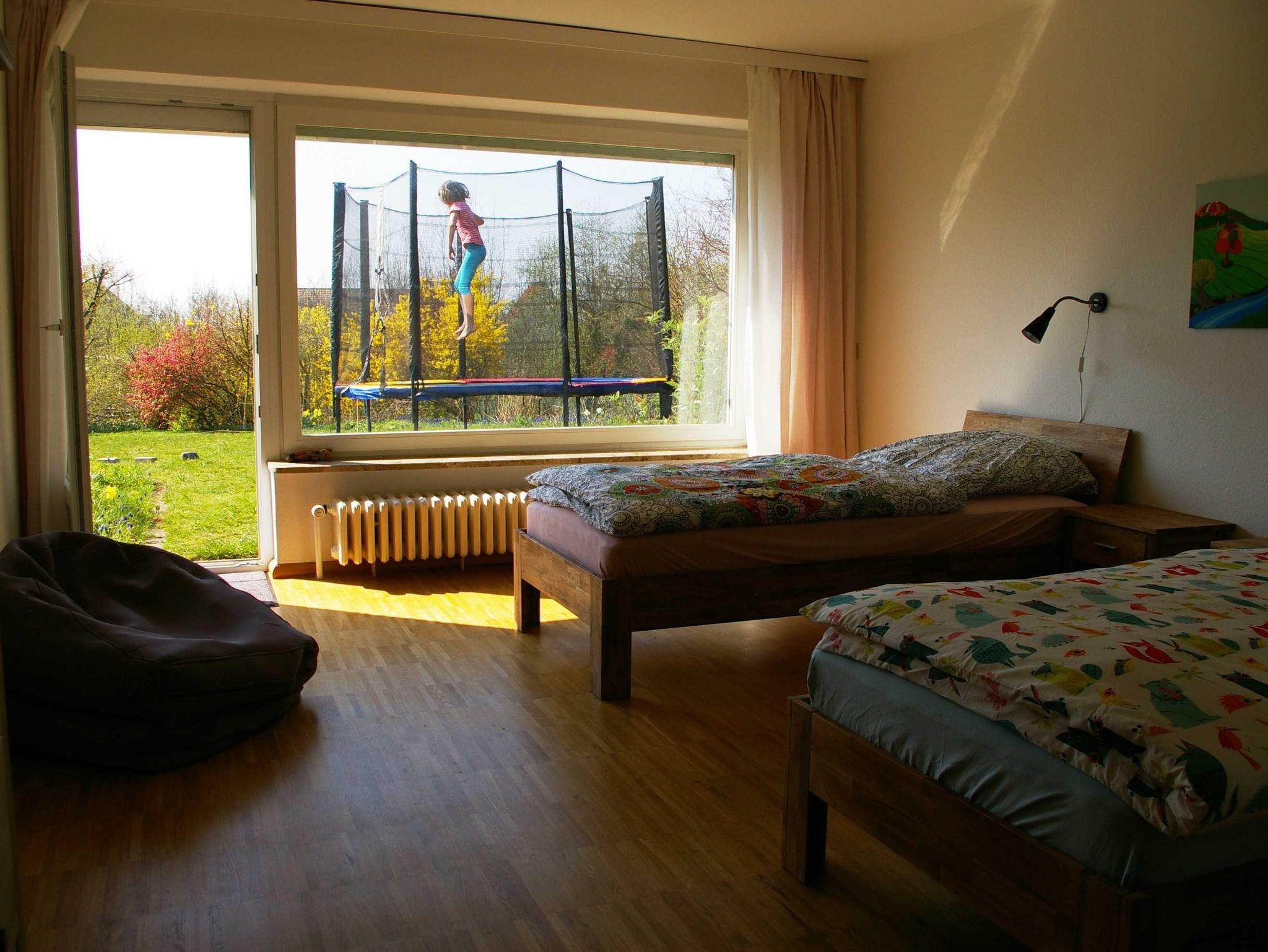 Unsere Gäste wohnen in einer großzügigen, hellen (Südlage) Einliegerwohnung in einem Einfamilienhaus in ruhiger Sackgassenlage. Der große Garten lädt zum Toben, Spielen, Trampolin springen, auf Bäume klettern oder einfach nur zum Entspannen ein. Den 100 m entfernten, nicht überfüllten Strand erreicht man bequem ohne Straßenüberquerung durch unsere Gartenpforte. Ein Spaziergang am Segler- und Fischereihafen entlang, führt nach ca. 2 km in das belebte Stadtzentrum von Neustadt in Holstein.
