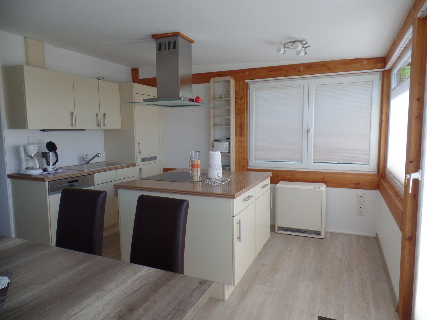Das 77 qm große, liebevoll eingerichtete Ferienhaus steht auf einem 500 qm großen, eingezäunten Grundstück. Hier sind 2 Parkmöglichkeiten vorhanden ( höhere Fahrzeuge müßen auf der Straße parken ). Es steht Ihnen ein Schlafraum mit Doppelbett (2 x 90 cm x 200 cm) und ein Wohnraum mit Schlafcouch (150 cm x 200 cm) und Kamin zur Verfügung. Die moderne Küche mit Kochinsel und Essbereich bietet eine gute Möglichkeit sich selbst und seine Lieben zu versorgen. Sommerliche Abende können Sie auf der Terrasse beim gemeinsamen Grillen genießen. Das moderne Duschbad rundet die sehr gute Ausstattung der Wohnung ab.