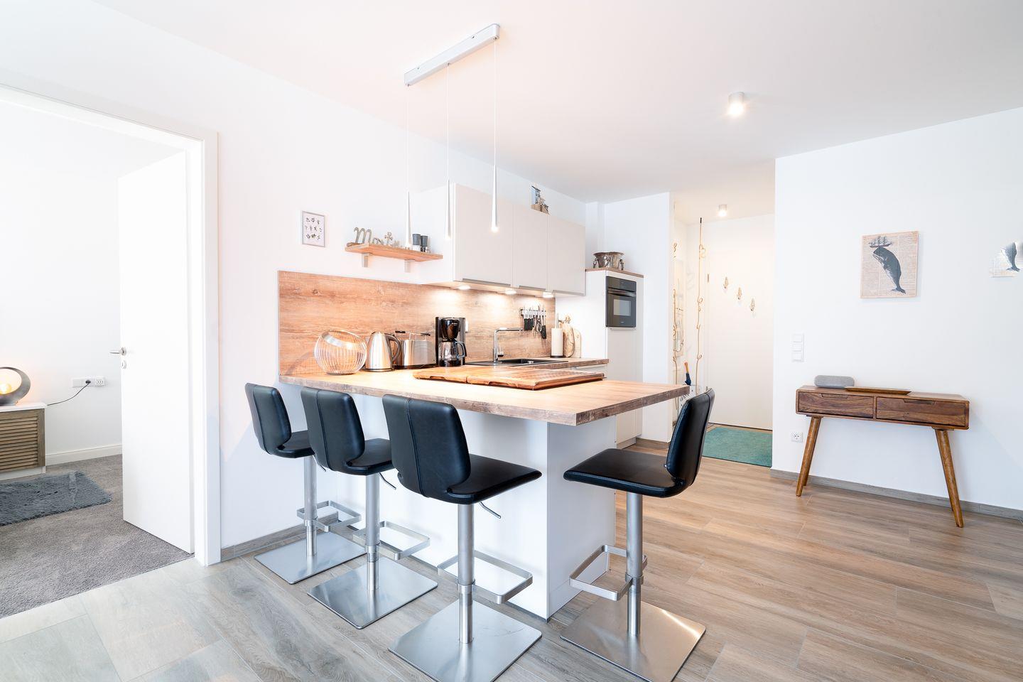 Herzlich Willkommen in der 3-Raum-Ferienwohnung „Paddel Nr. 5“ in exklusiver Lage von Neustadt in Holstein. Die ca. 67 m2 große, moderne Ferienwohnung liegt im EG eines in 2023 erbauten Mehrparteienhauses und ist in fußläufiger Entfernung zur „ancora Marina“, dem größten privaten Yachthafen an der Ostsee. Die hochwertig ausgestattete Wohnung verfügt über einen kombinierten Wohn- und Essbereich mit Zugang zum Balkon, sowie 2 Schlafräumen. Die mit Backofen, Herd und Geschirrspüler voll ausgestattete, moderne Küche ist in den gemütlichen kombinierten Wohn- und Essbereich integriert. Hier kann man den Tag bei einem Glas Wein oder gemeinsamen Spiele- oder TV-Abenden ausklingen lassen. Beide Schlafräume sind mit bequemen Doppelbetten eingerichtet, eines verfügt zudem noch über ein TV. Das hochwertige Bad ist mit einer begehbaren Dusche ausgestattet. Ein Parkplatz in der hauseigenen Tiefgarage ist inklusive. Stellplatz für Ihre E-Bikes auf Anfrage verfügbar.
